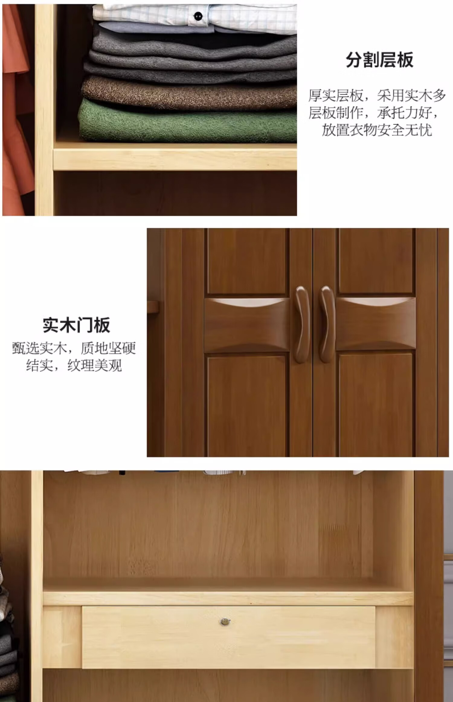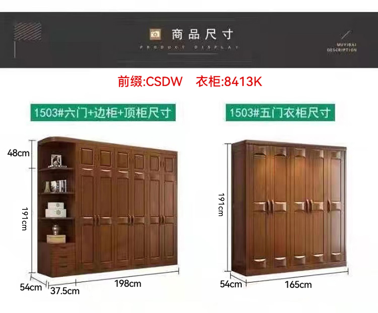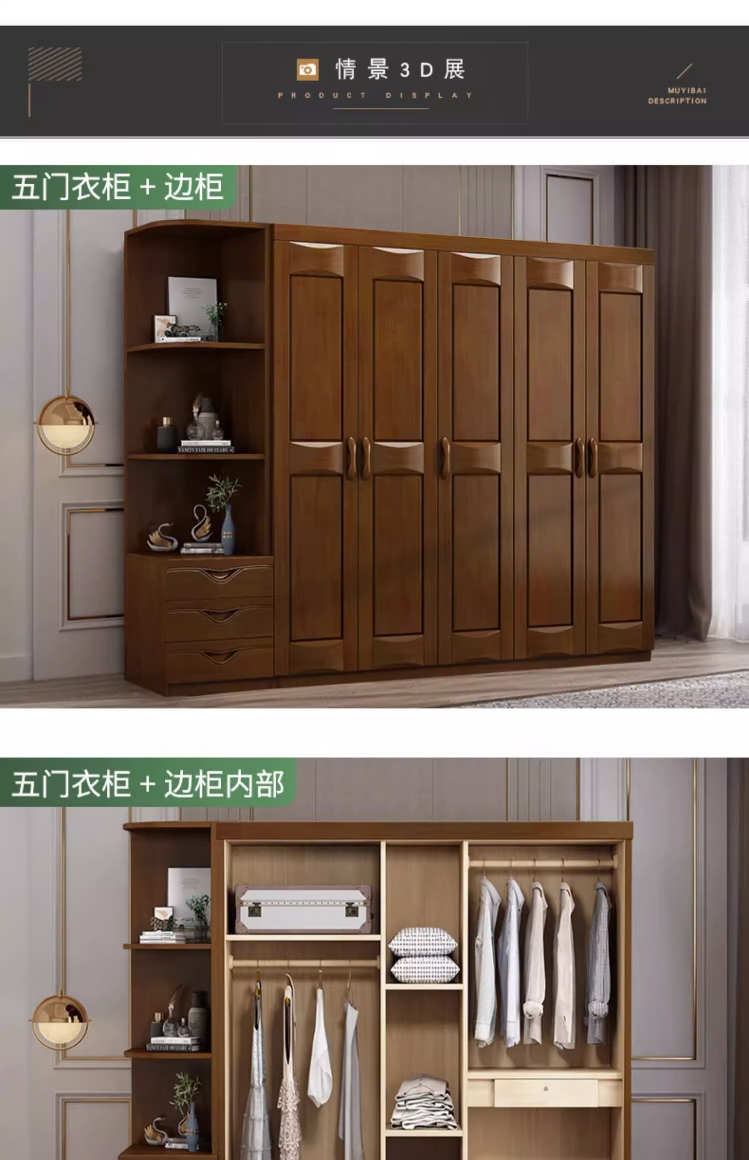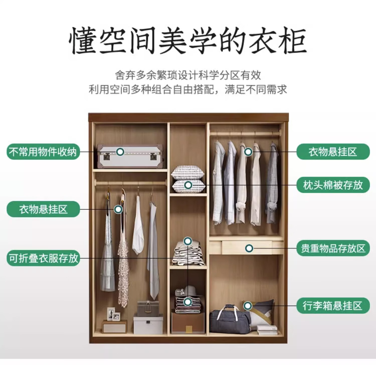 Jiangcheng walnut solid wood wardrobe double-door four-five-six-door modern Chinese-style bedroom can add a large wardrobe 8413K#