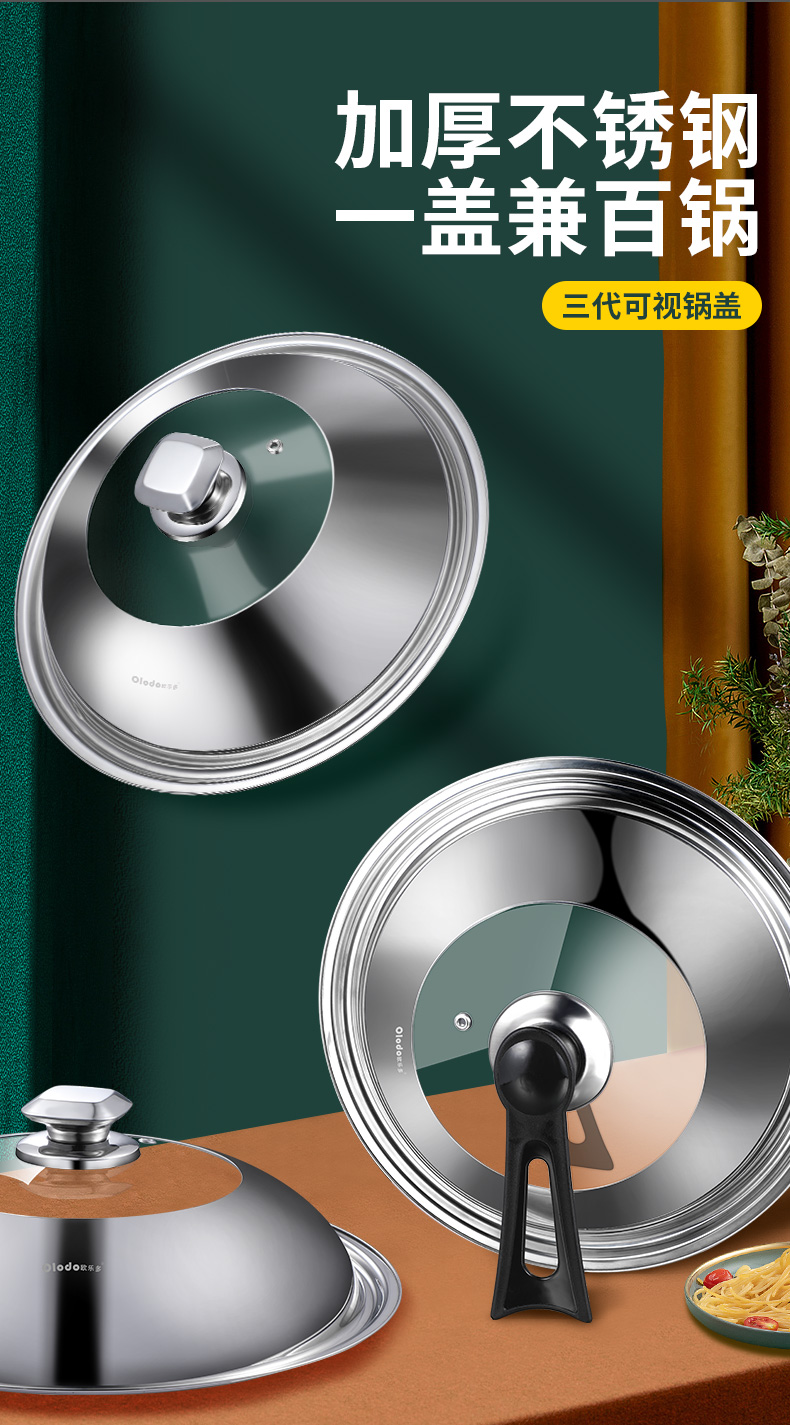 Oralduo pot cover, universal thickened stainless steel wok cover, can stand up, anti-overflow steamer cover, explosion-proof hot pot frying pan cover with handle, can stand up long handle pot lid 32cm