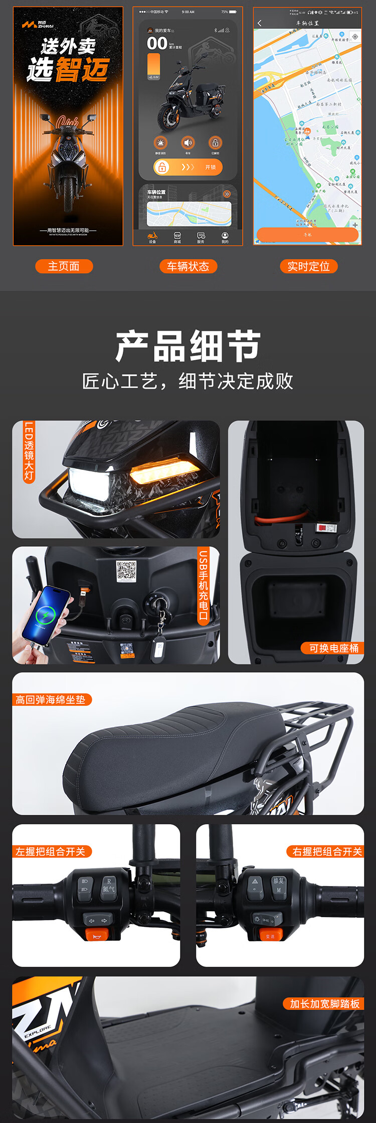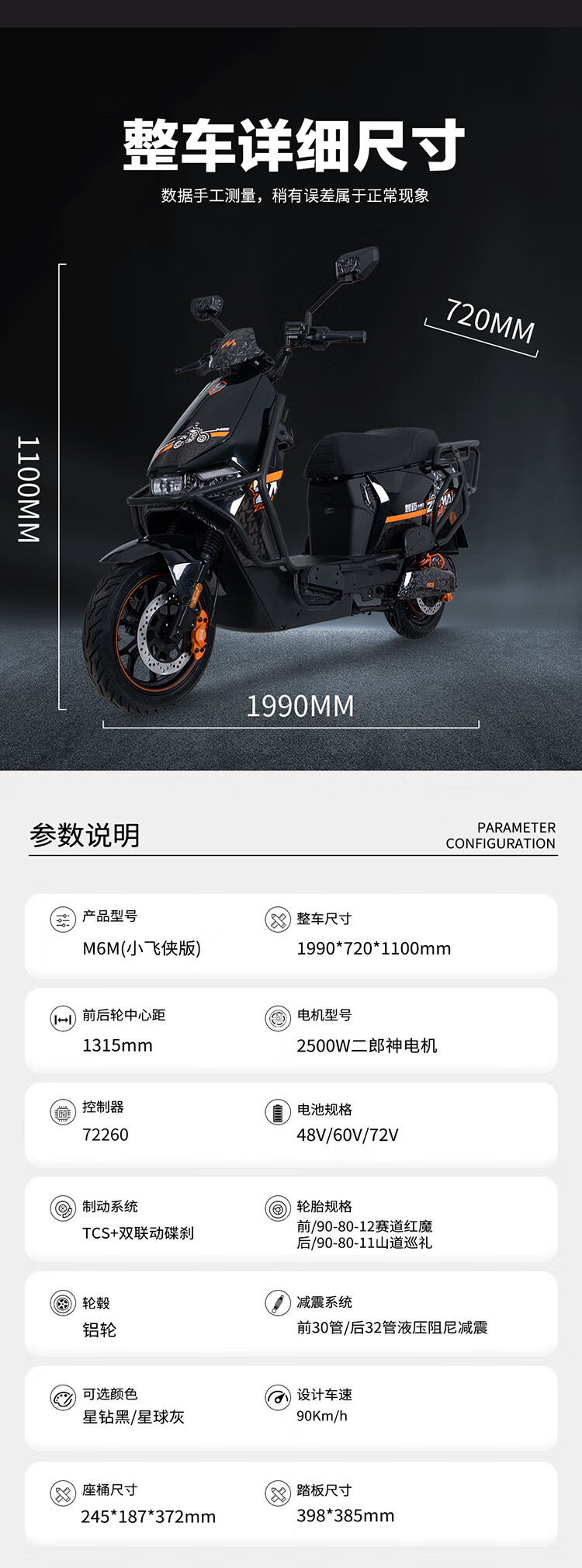 LEOSAM Zhimai Electric Motorcycle M6M Peter Pan Big Power 2500W Dual Disc Brakes 60V20Ah Long Endurance Hill Climbing Advanced Takeaway Car Crowdsourcing Big Sitting Bucket Planet Gray