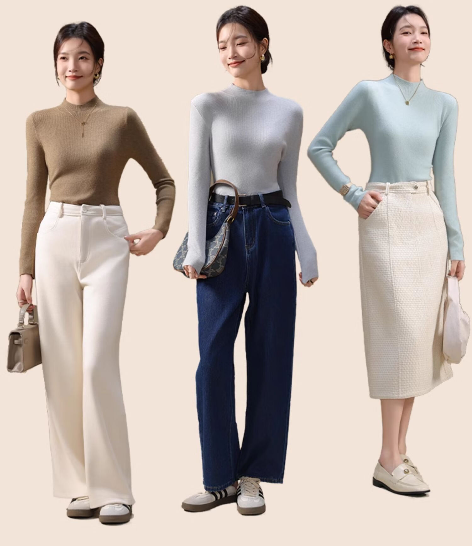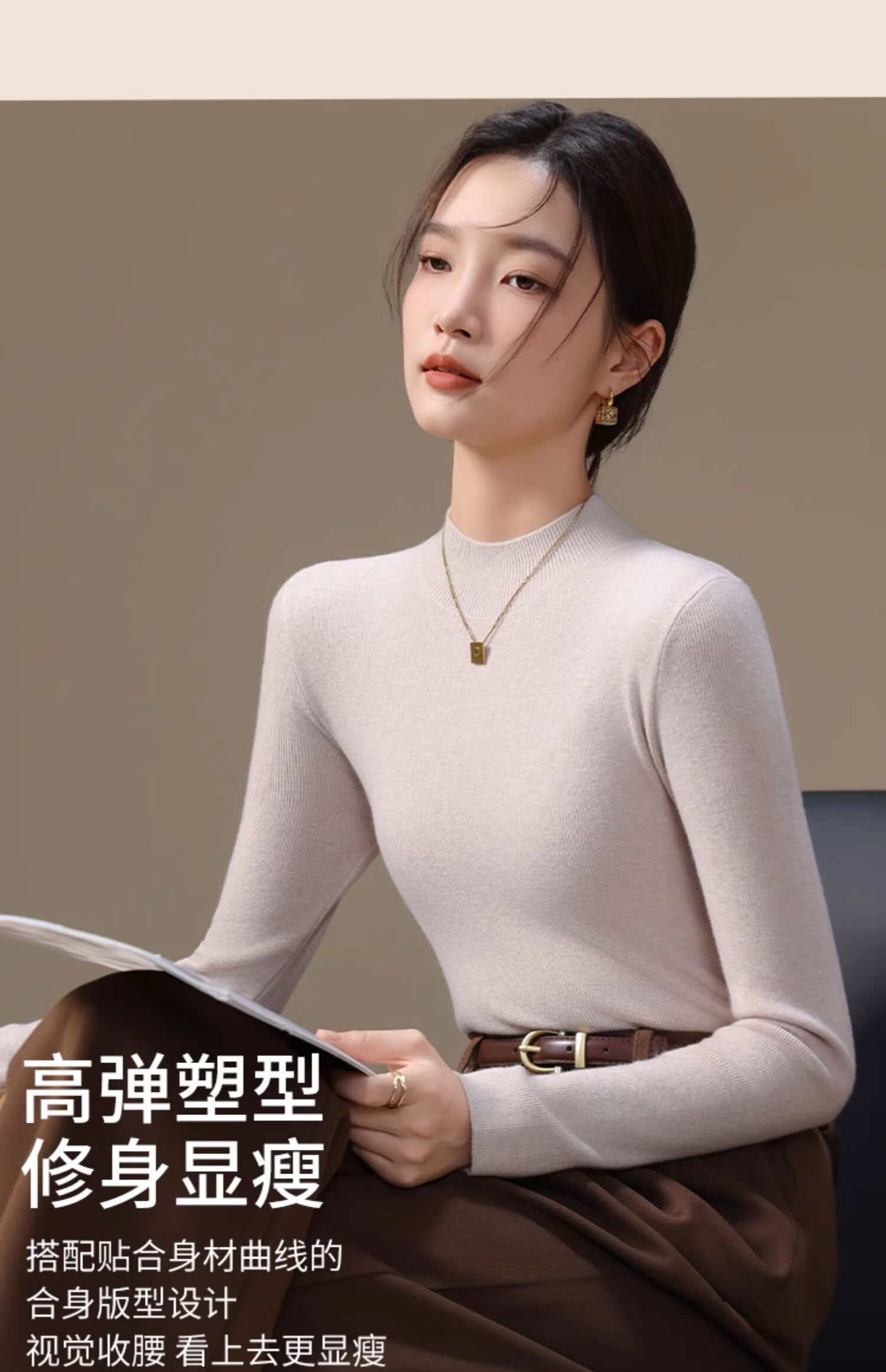 Urban beauty, foreign style inner wear 2025 new threaded half turtleneck bottoming shirt for women, autumn and winter sweater, sweater, slim warm top