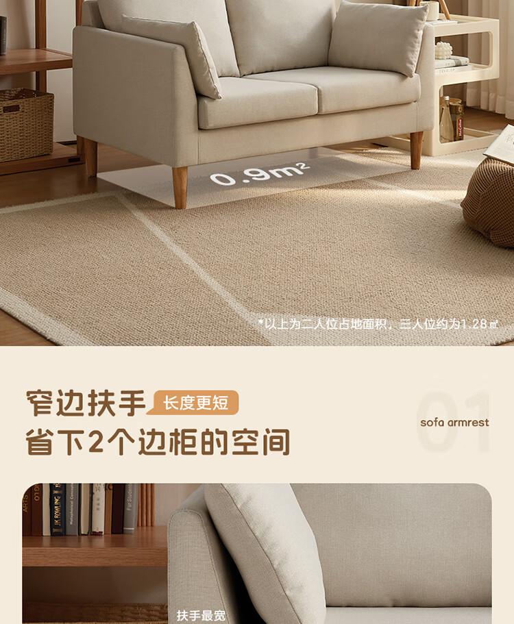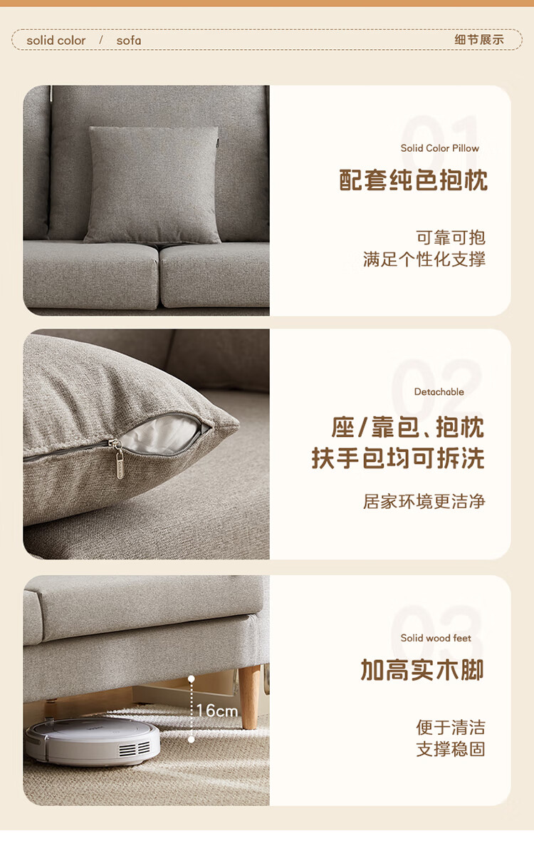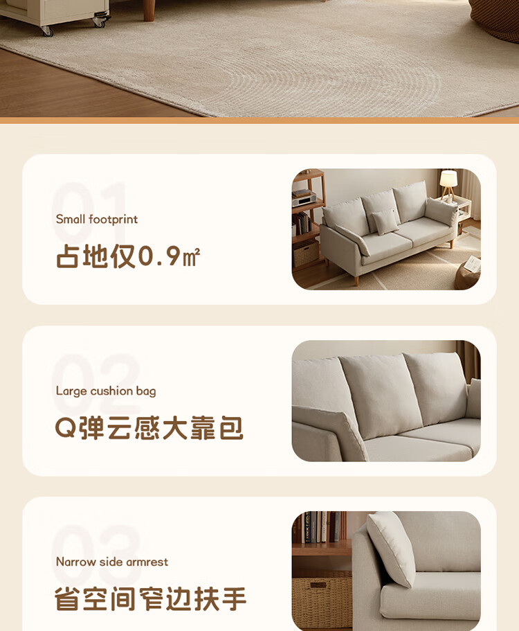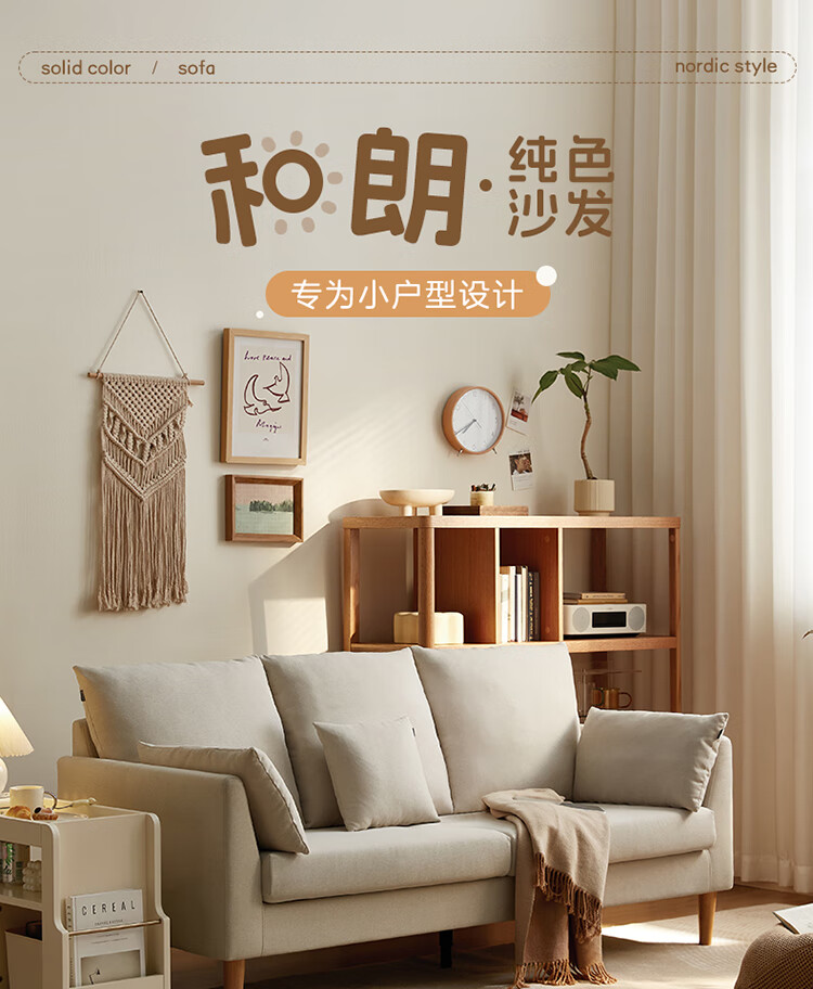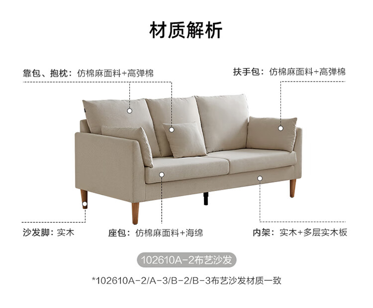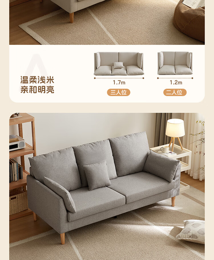 Quanyou Home Modern Simple Furniture Fabric Sofa Small Apartment Home Bedroom Living Room Solid Wood Leg Three-Seater Sofa
