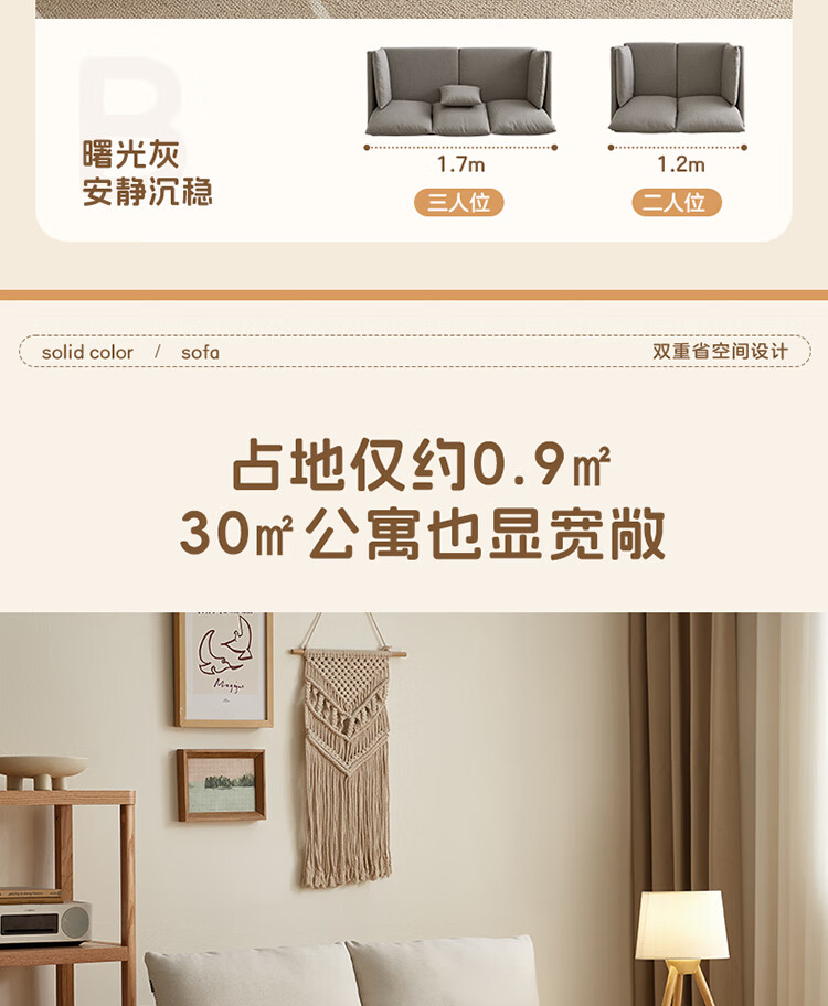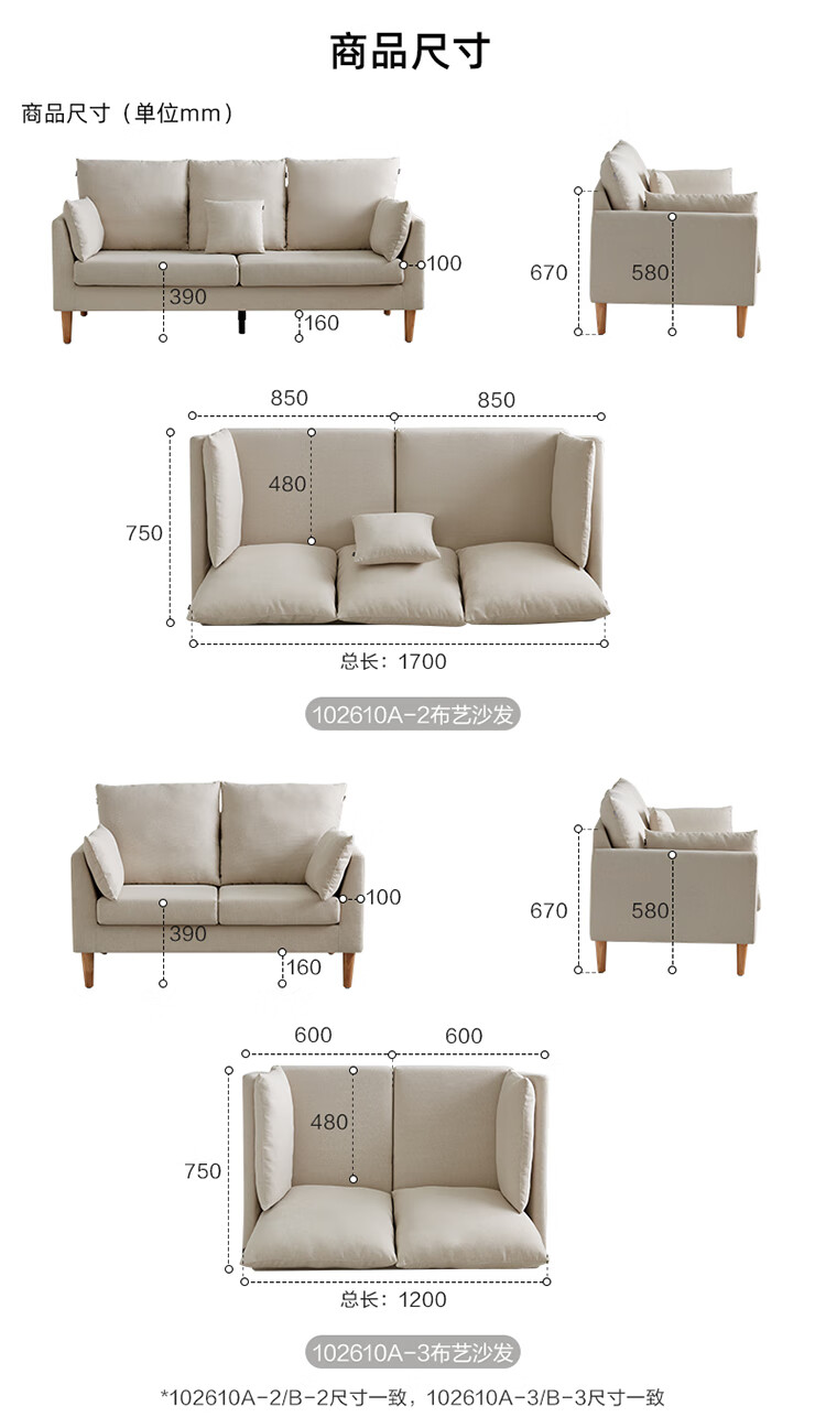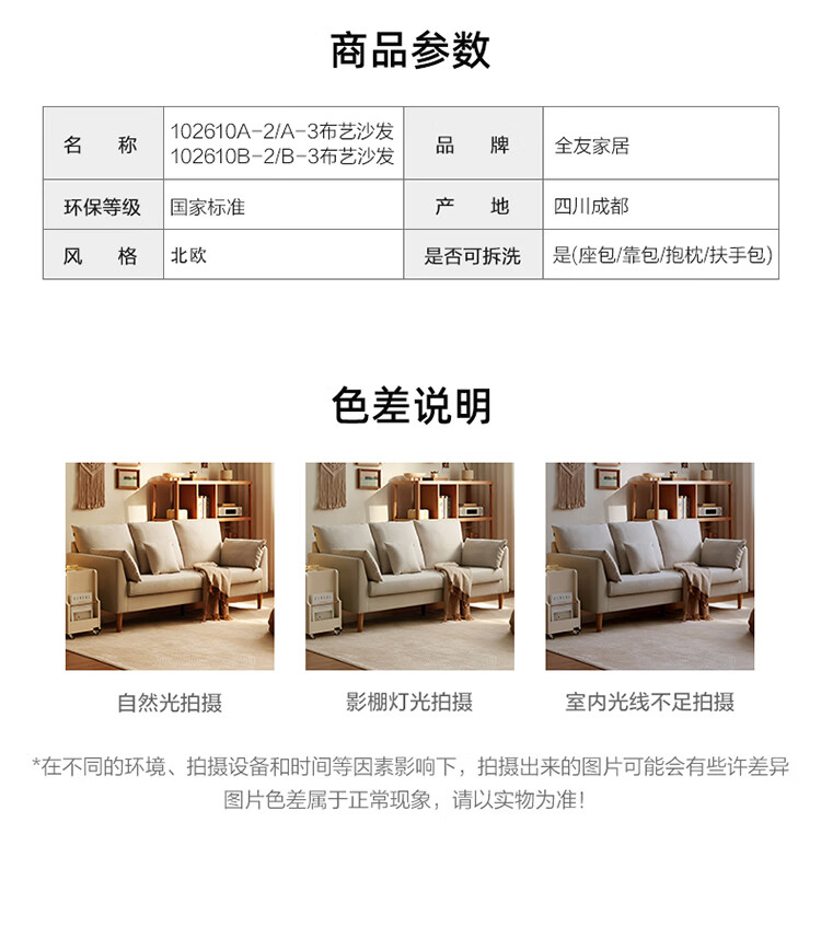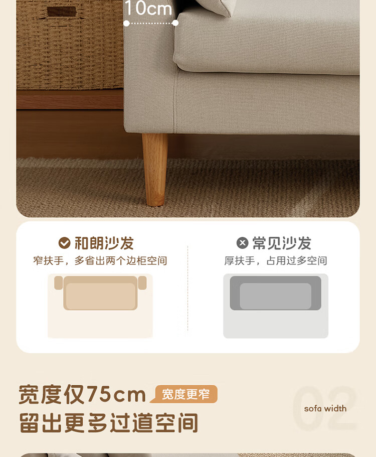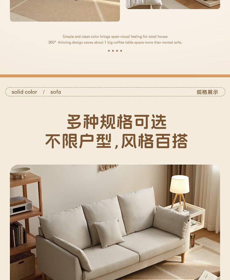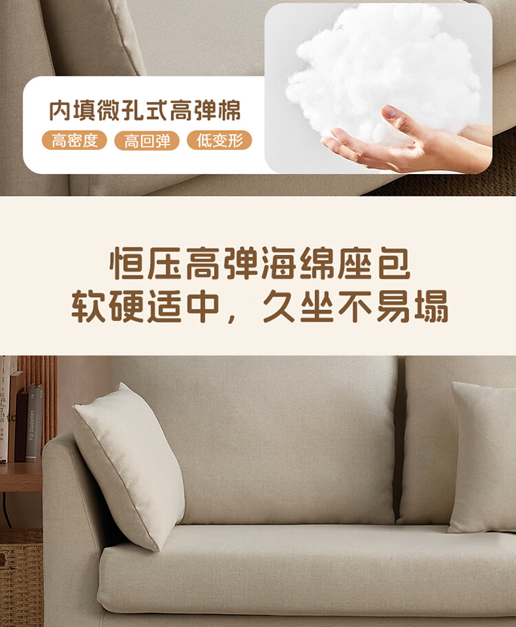 Quanyou Home Modern Simple Furniture Fabric Sofa Small Apartment Home Bedroom Living Room Solid Wood Leg Three-Seater Sofa
