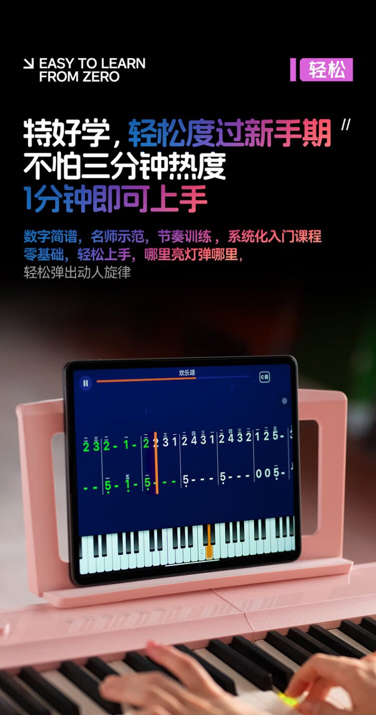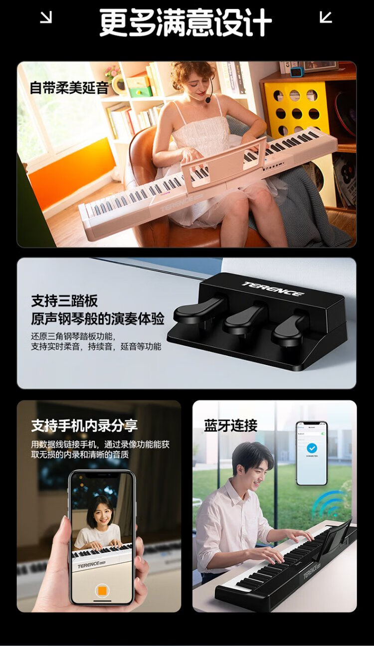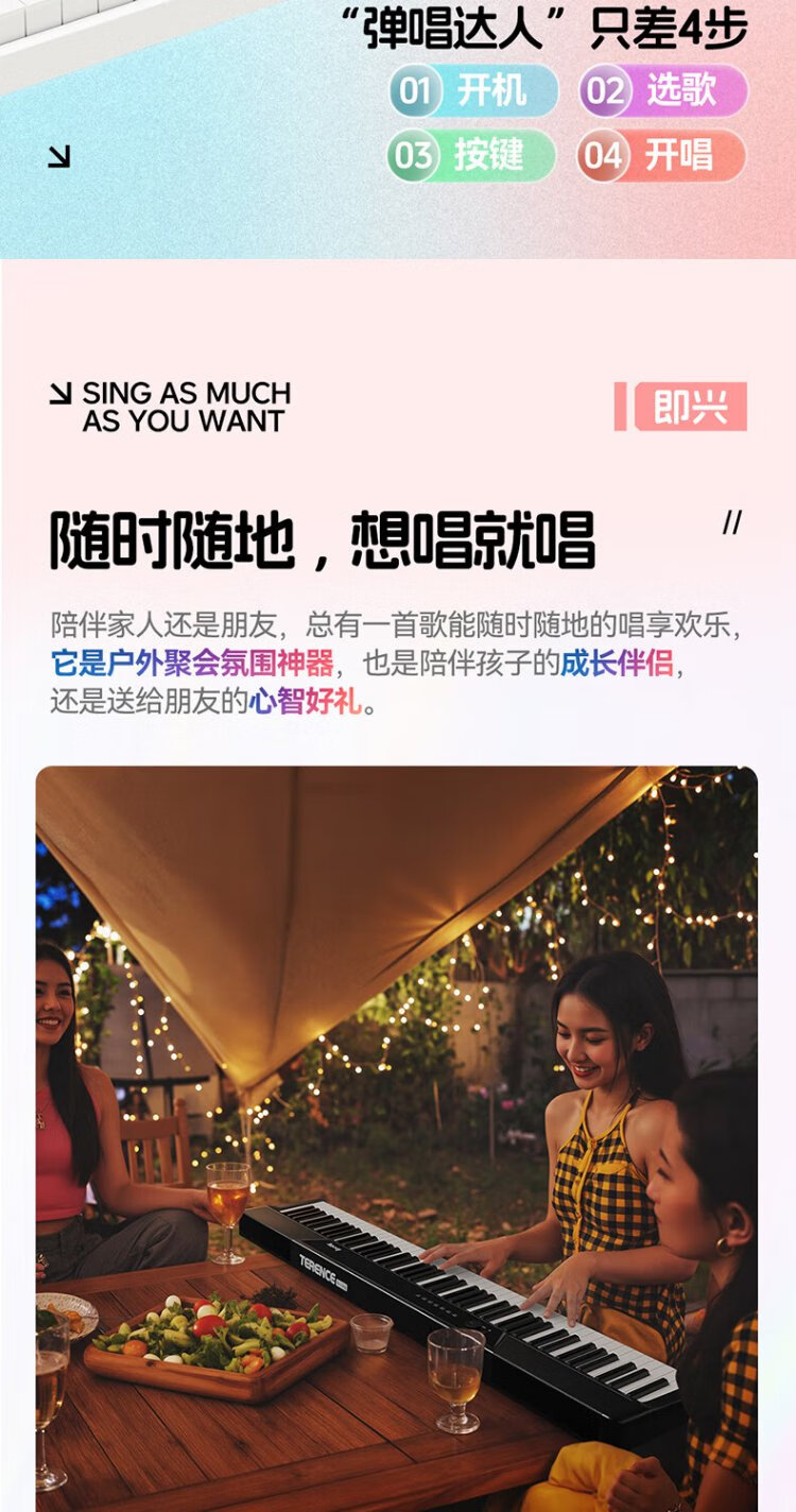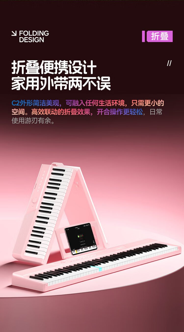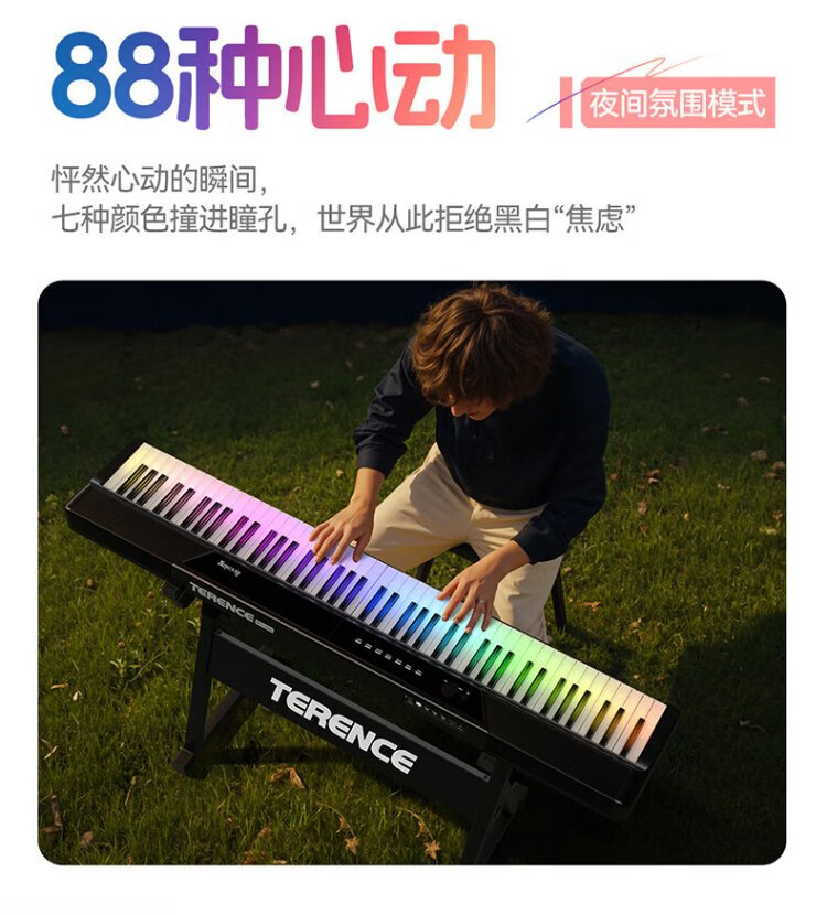 Terence C2 automatic piano for beginners, folding rainbow portable 88-key electric piano, smart electronic musical instrument