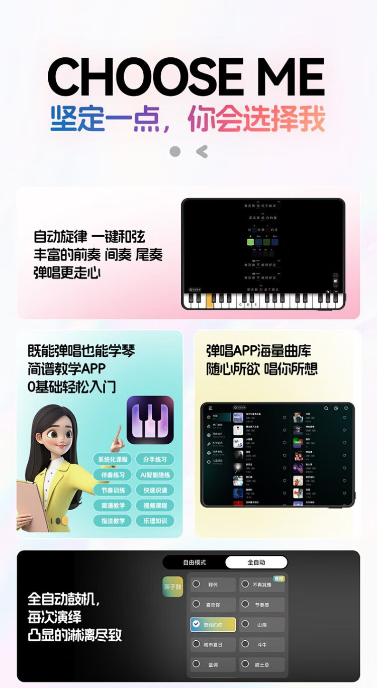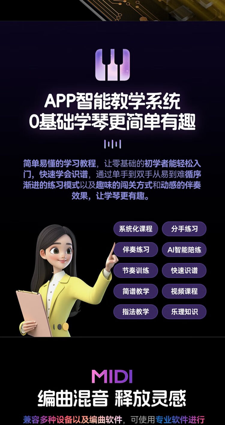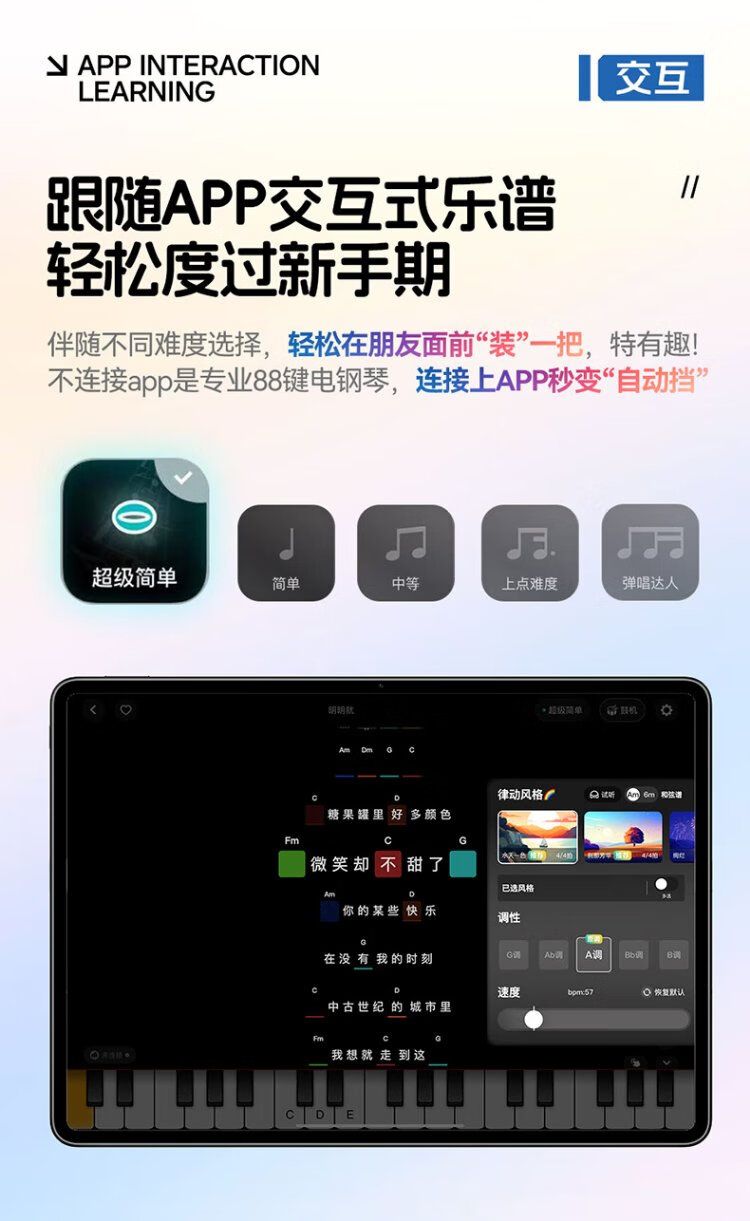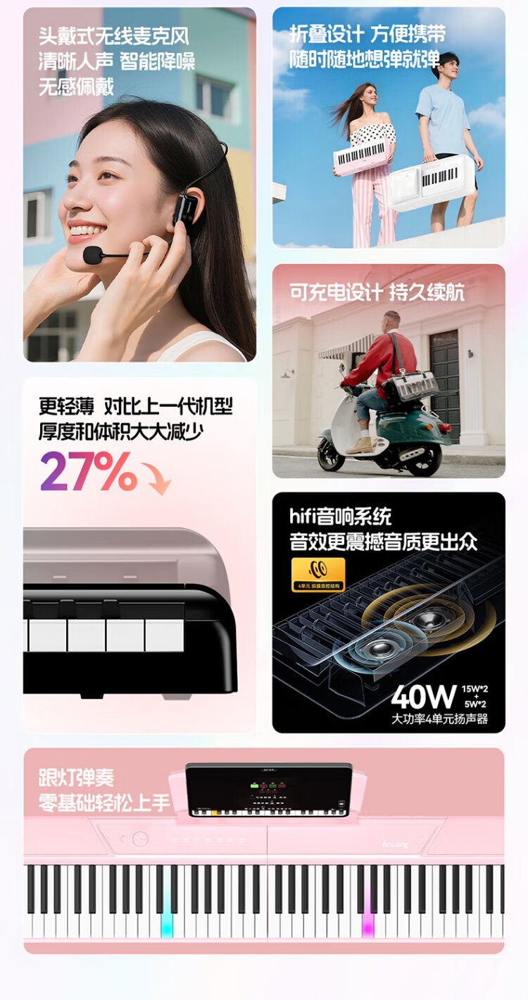 Terence C2 automatic piano for beginners, folding rainbow portable 88-key electric piano, smart electronic musical instrument