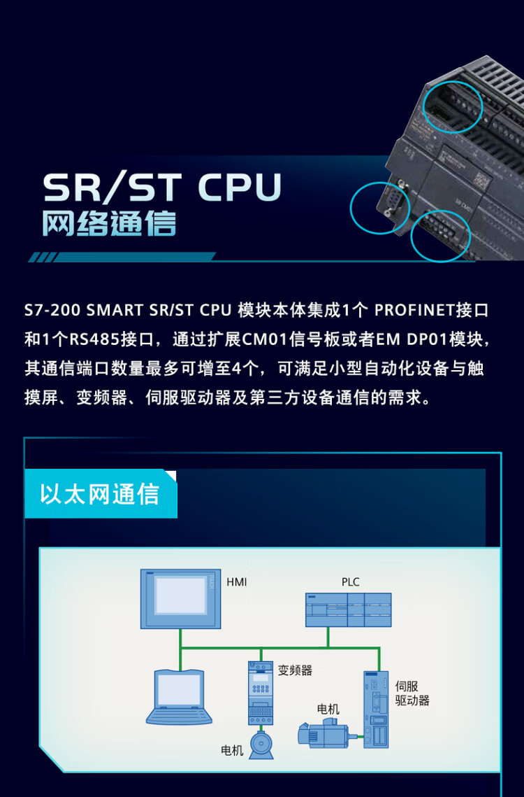 Siemens S7-200 SMART standard CPU module ST40 6ES7288-1ST40-0AA1,DC/DC/DC,24DI/16DO