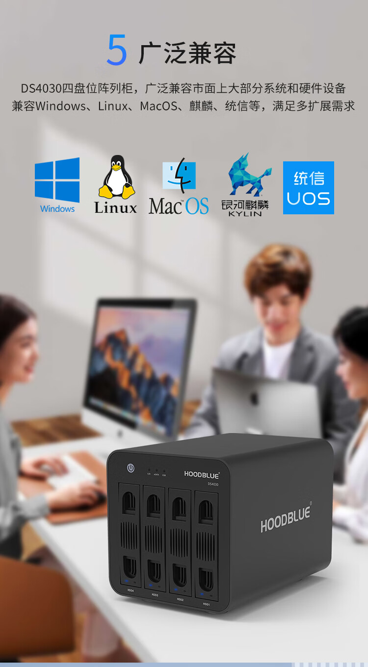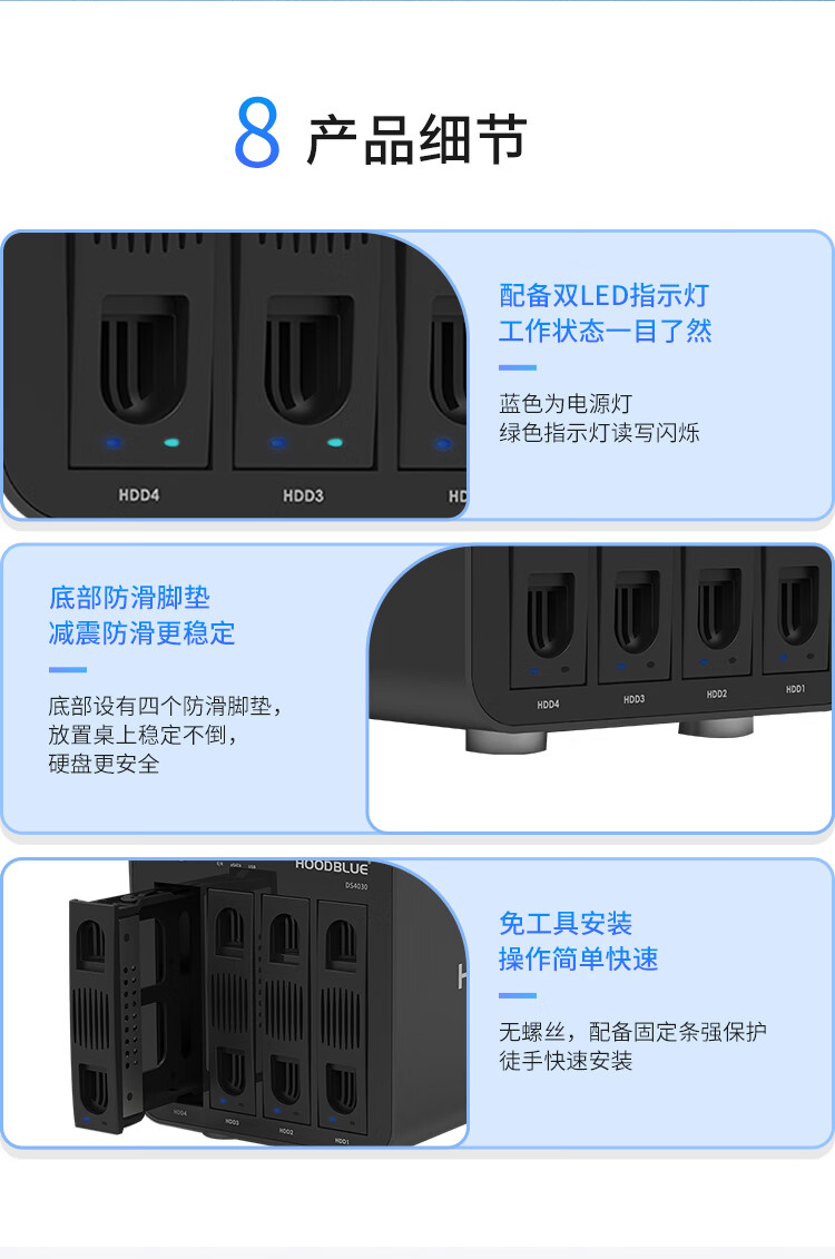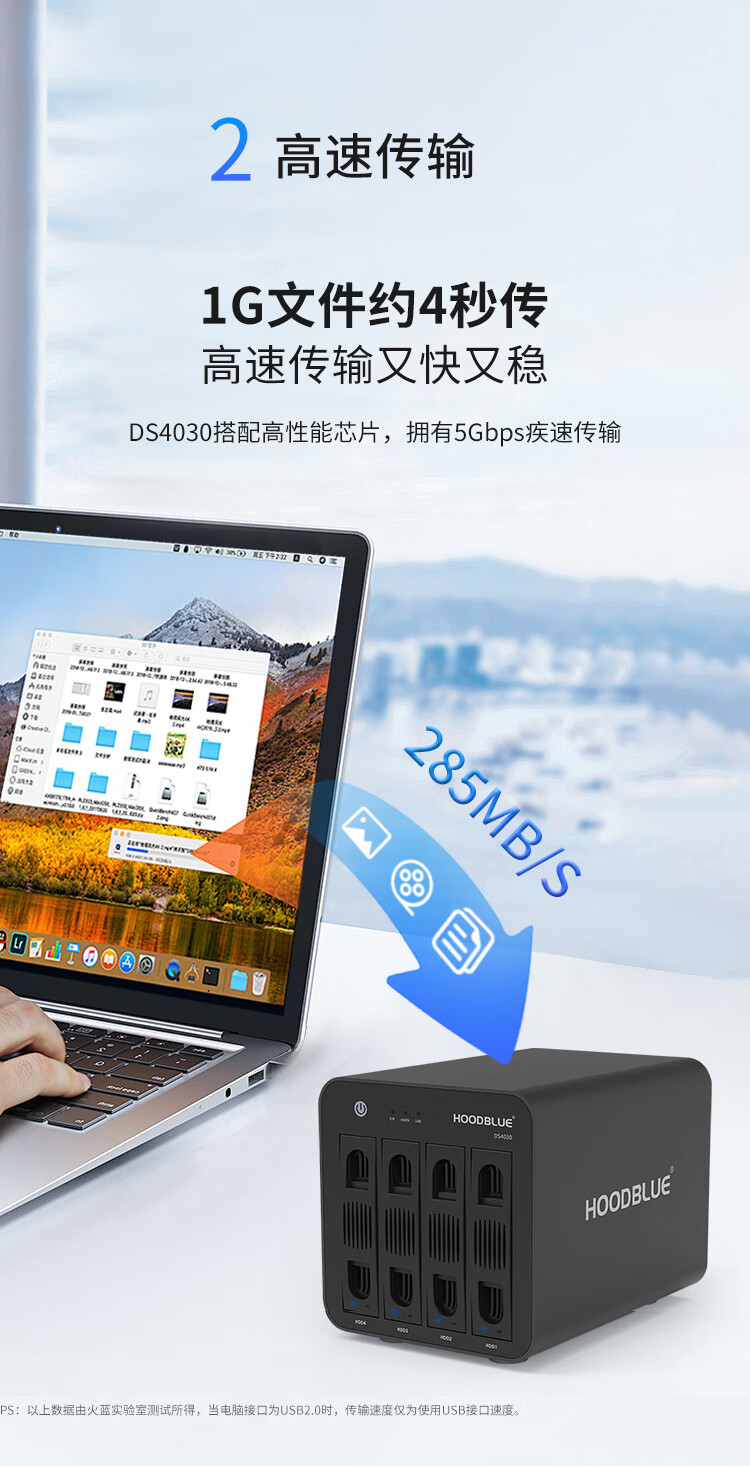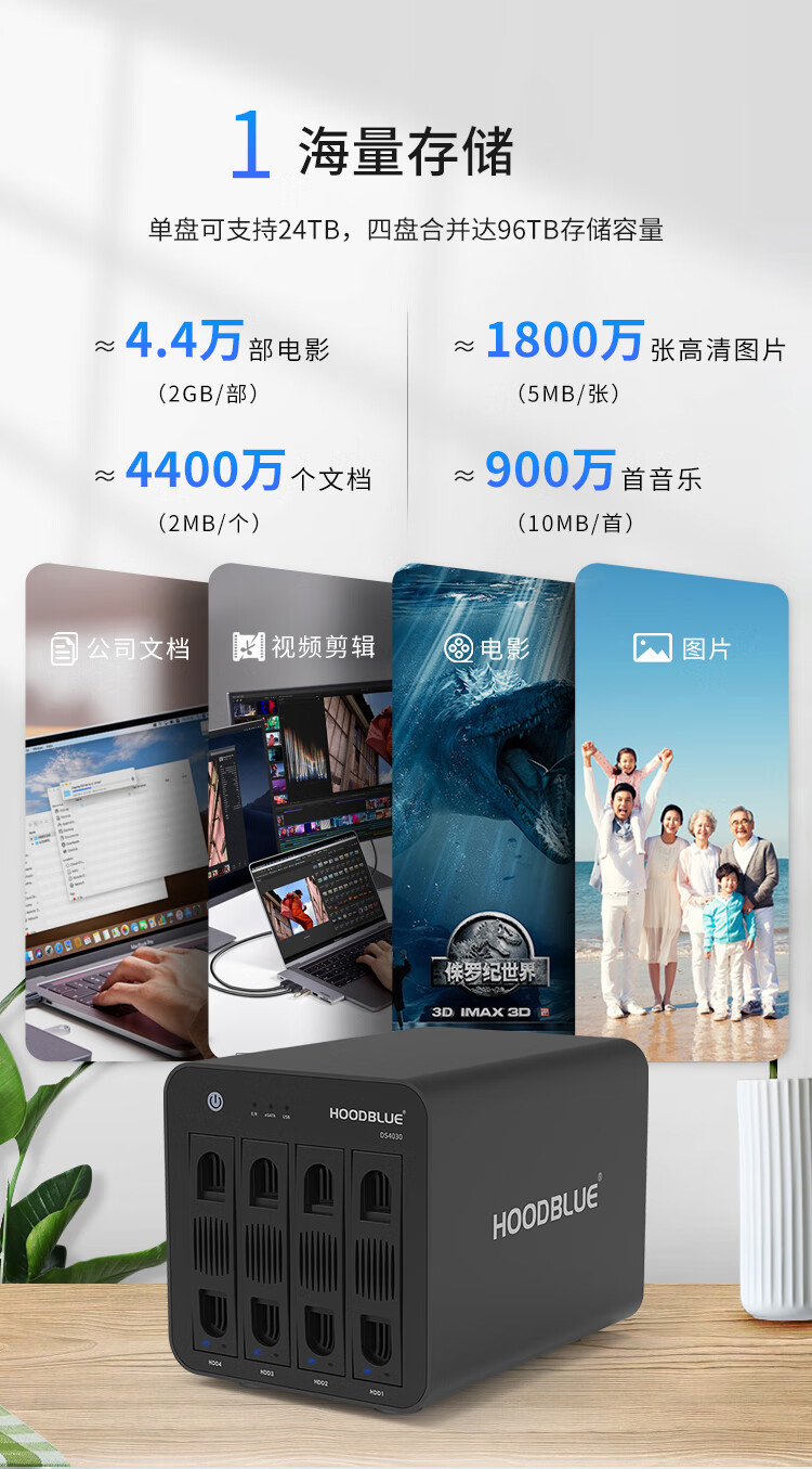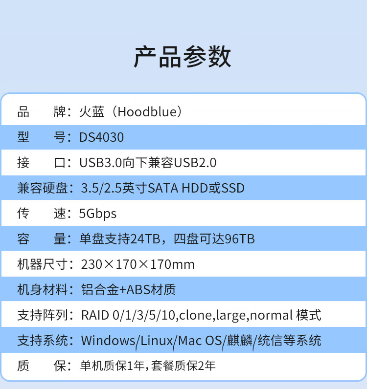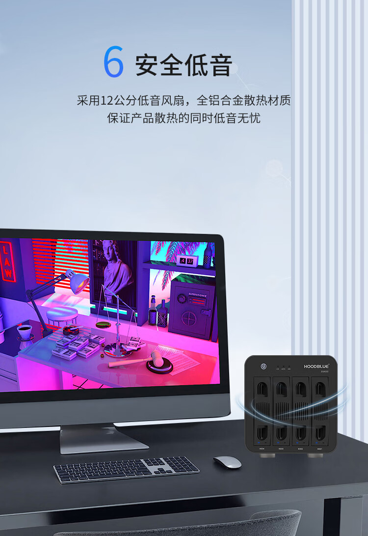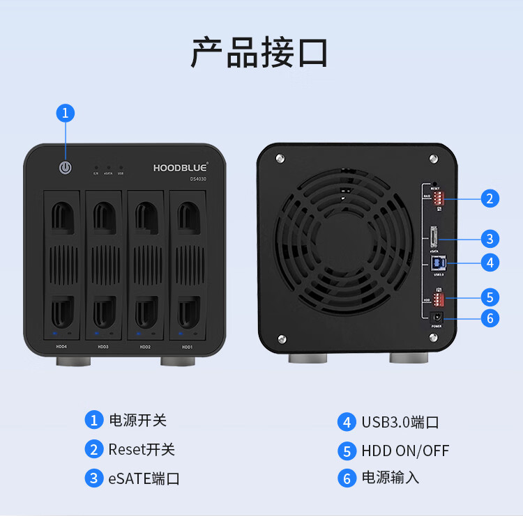 Hoodblue DS4030 four-bay disk array cabinet RAID hard drive box USB high-speed transmission universal 2.5/3.5-inch SATA serial port mechanical solid-state external hard drive box DS4030-72TB