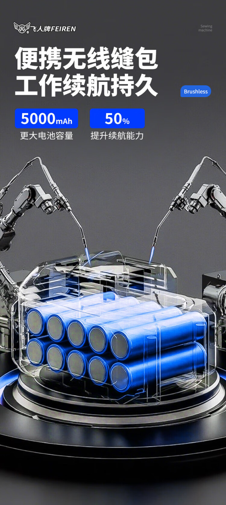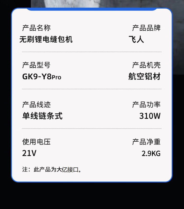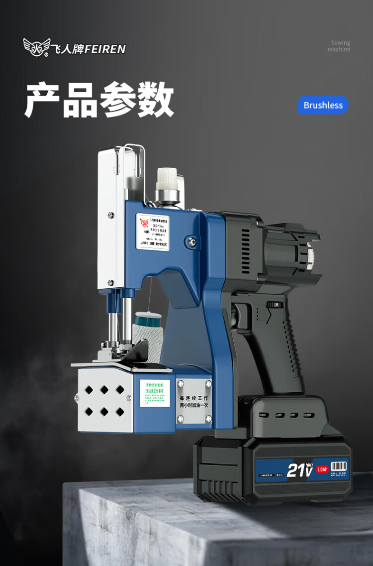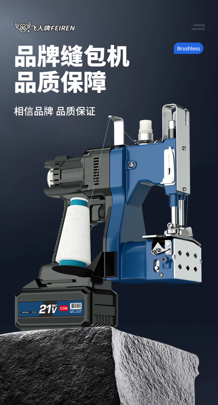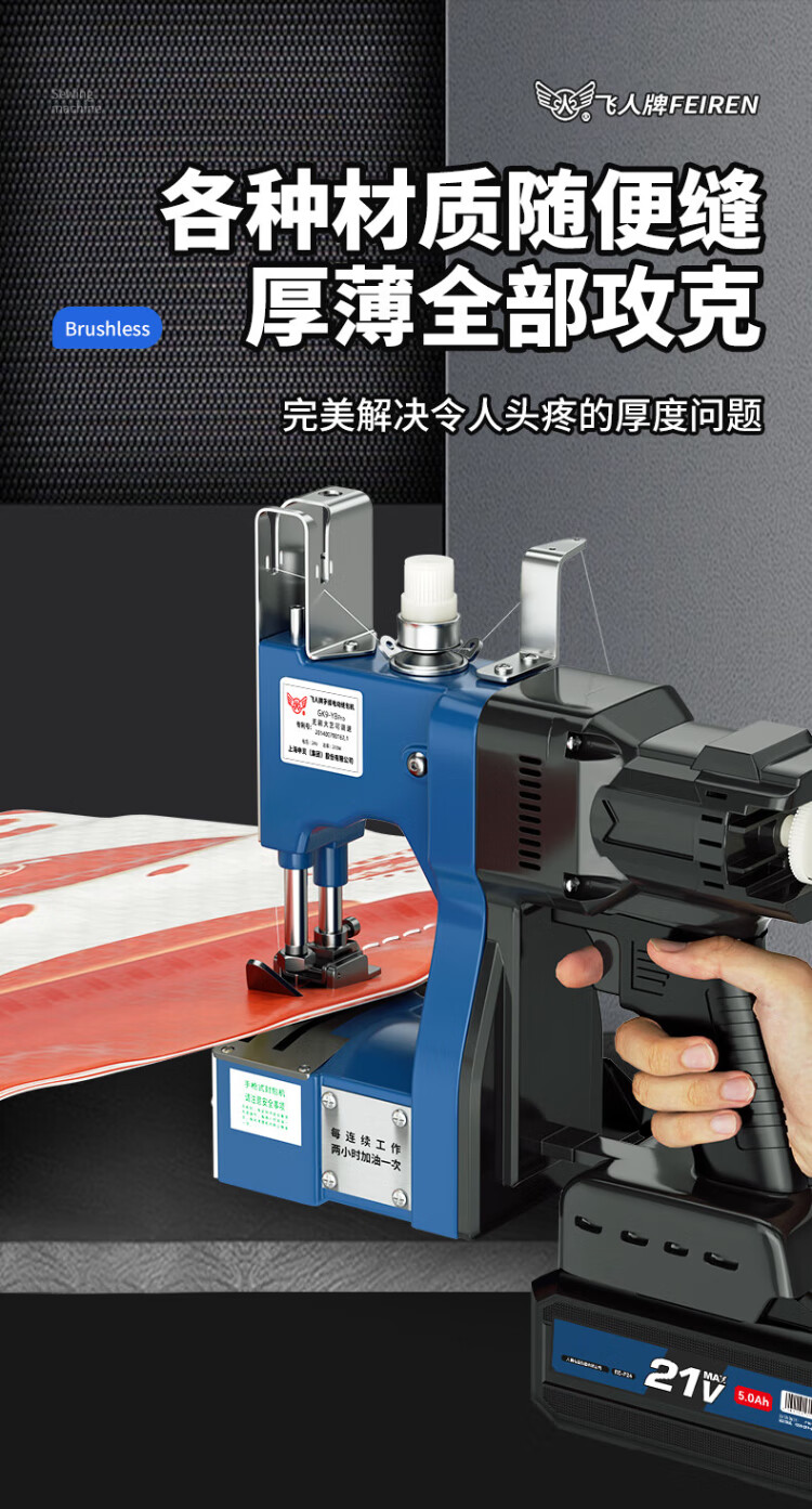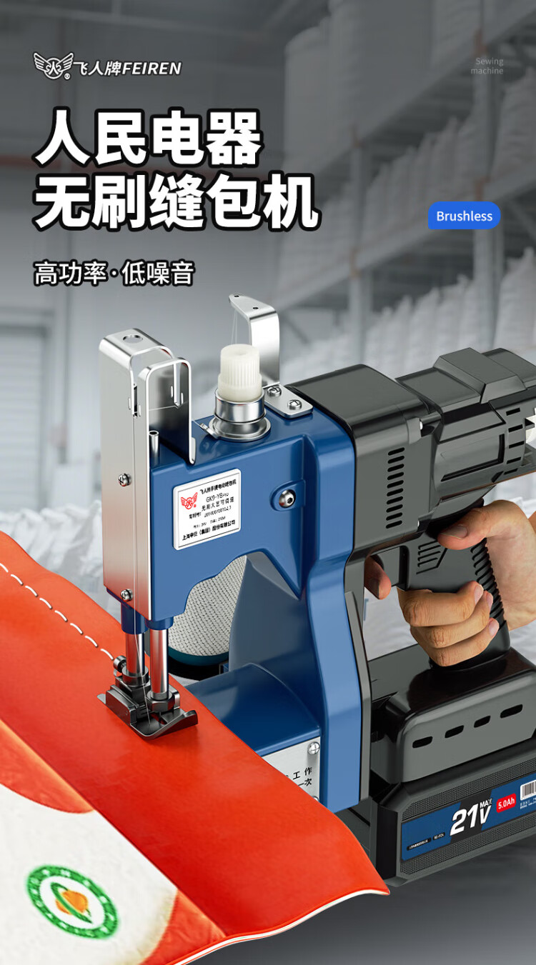 飞人 GK9-Y8pro无刷可调数充电型手提式电动缝包机 户外封包机 米袋编织袋封口机 打包机