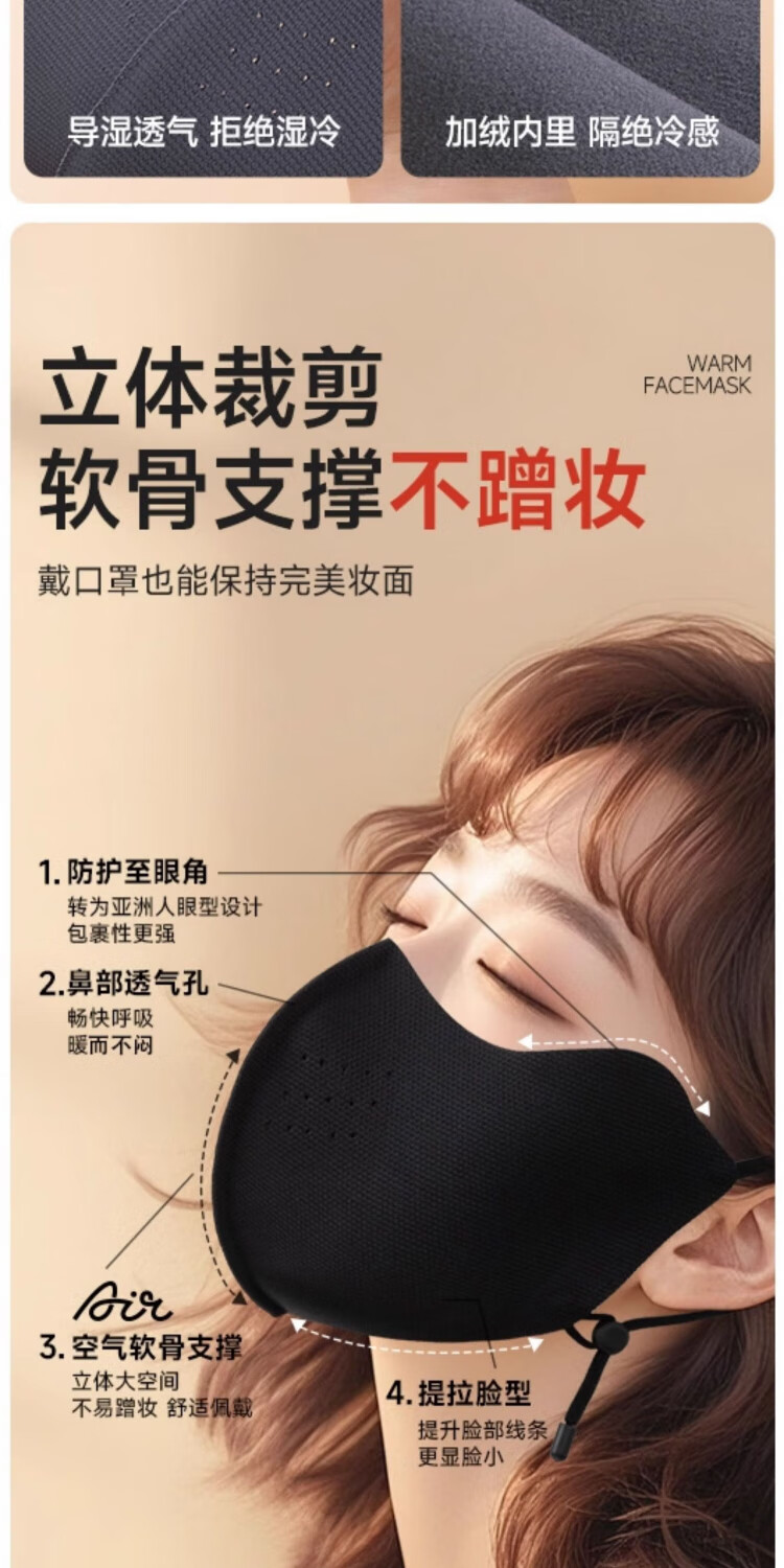 Iconi Warm Mask Autumn and Winter Adult 3D Breathable Non-stuffy Cycling Cycling Coldproof Windproof Dustproof Light Gray