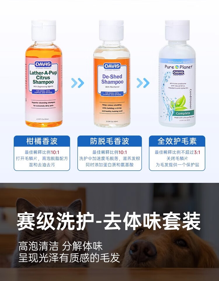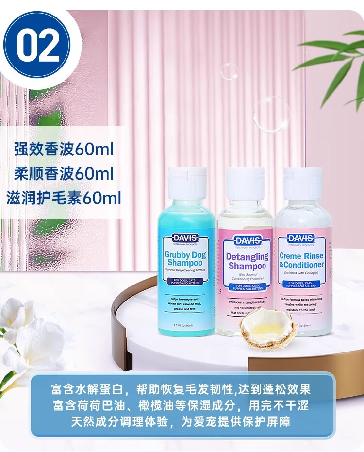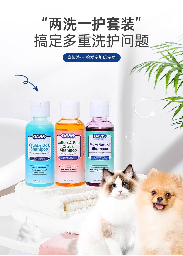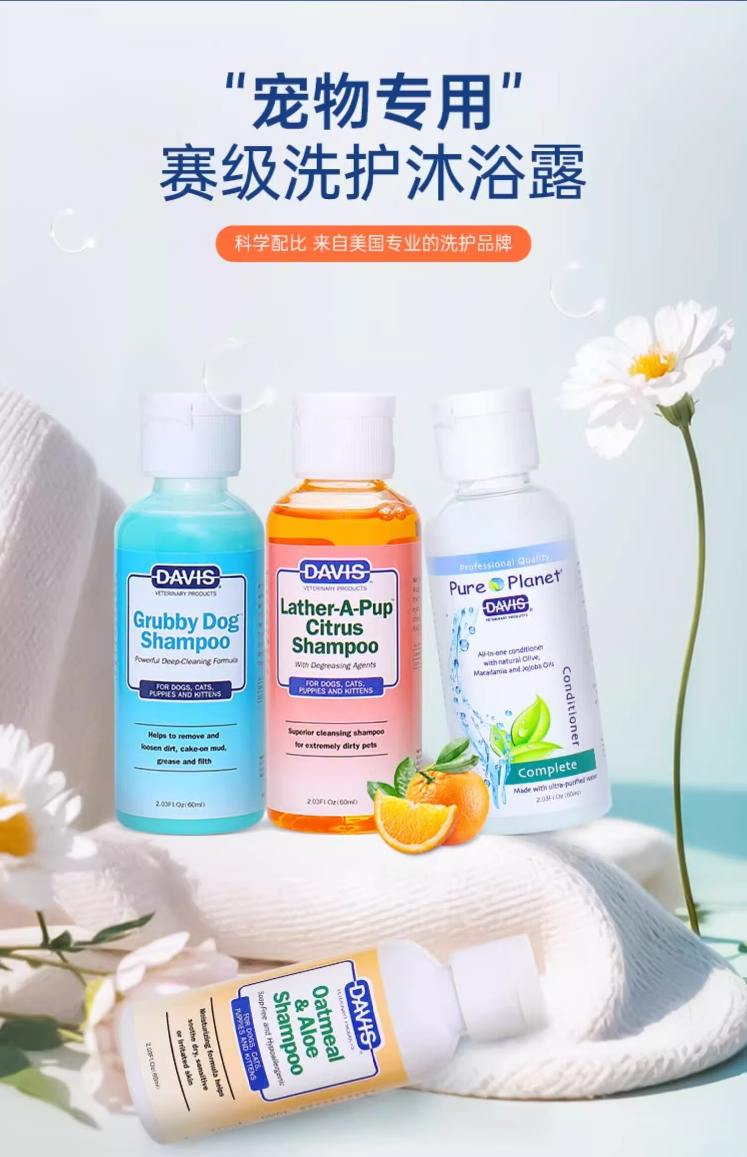 DAVIS Davis Pets decontamination fluffy travel size dog and cat shower gel conditioner bath set 2 bottles 60ml