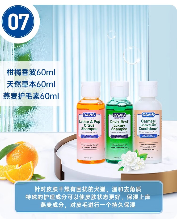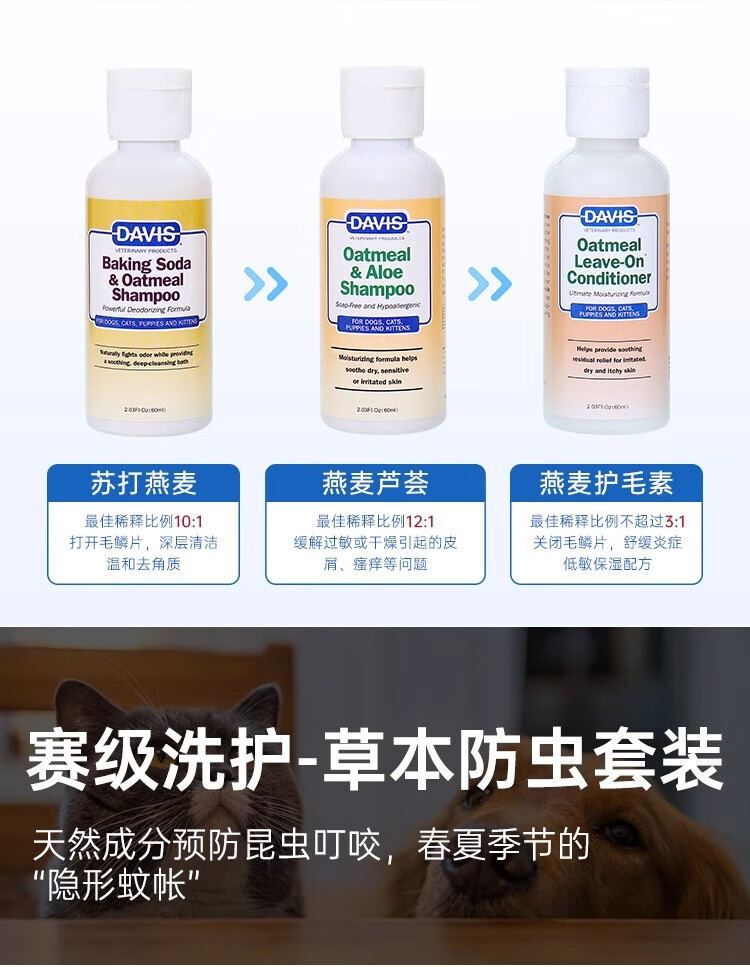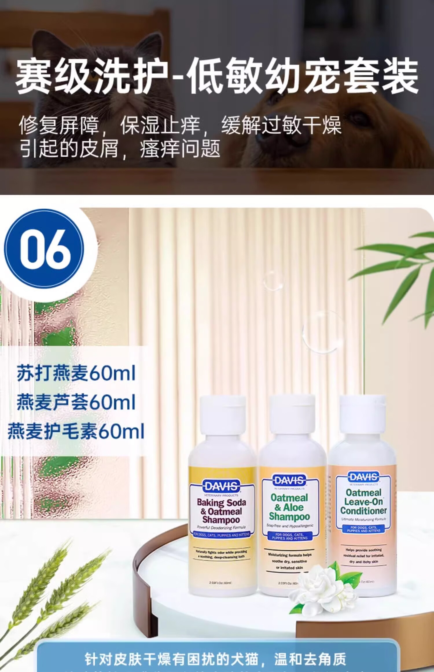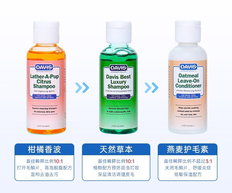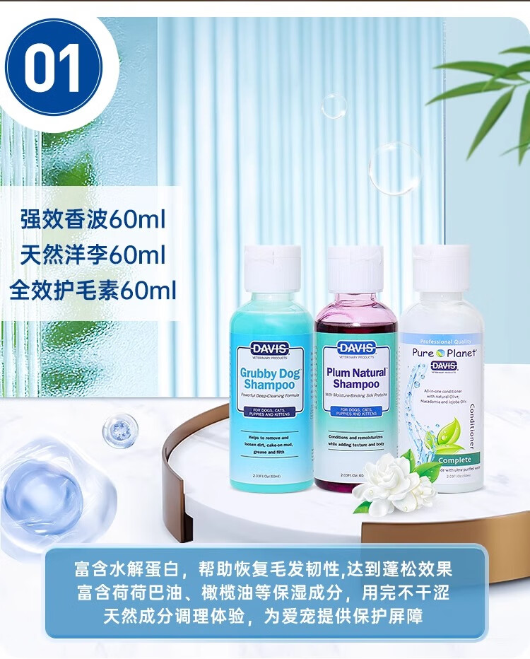 DAVIS Davis Pets decontamination fluffy travel size dog and cat shower gel conditioner bath set 2 bottles 60ml