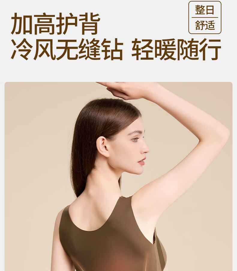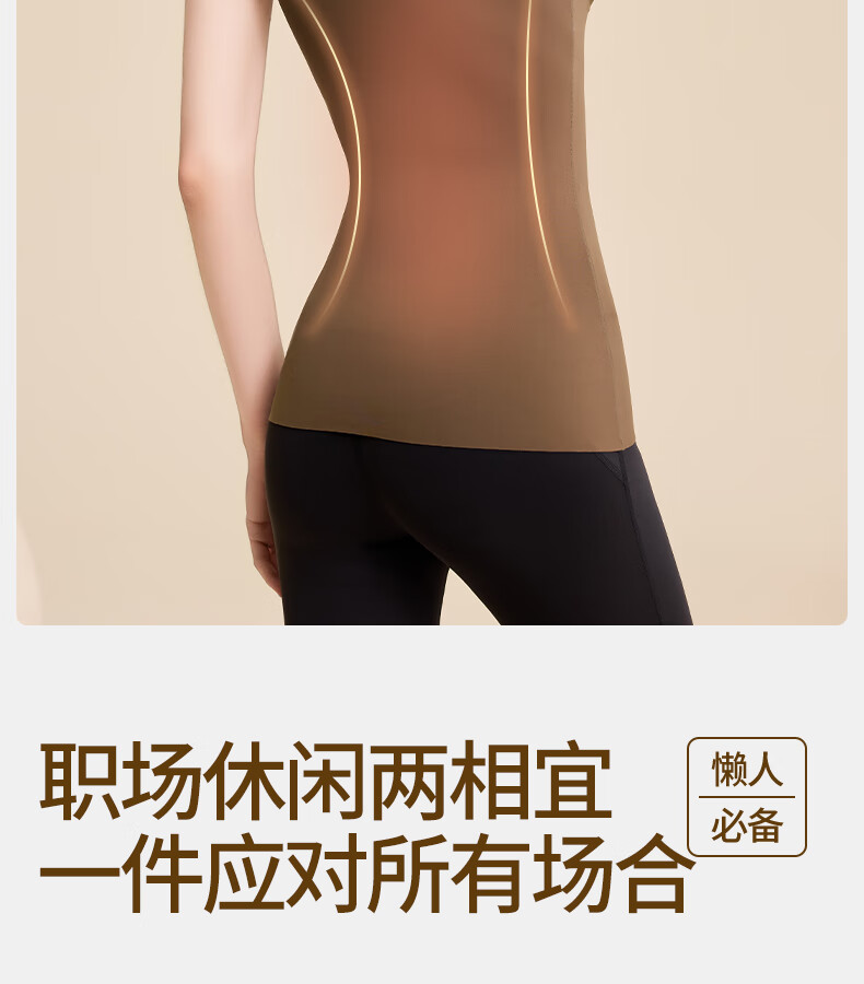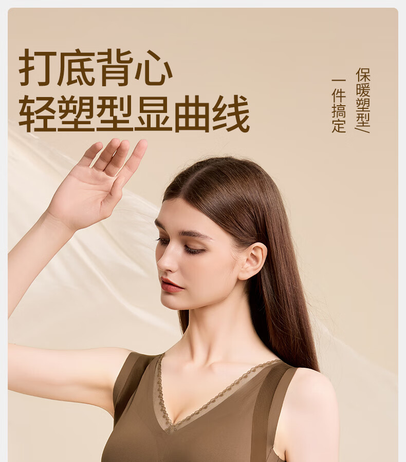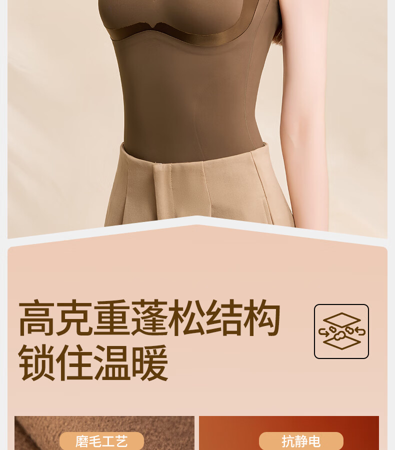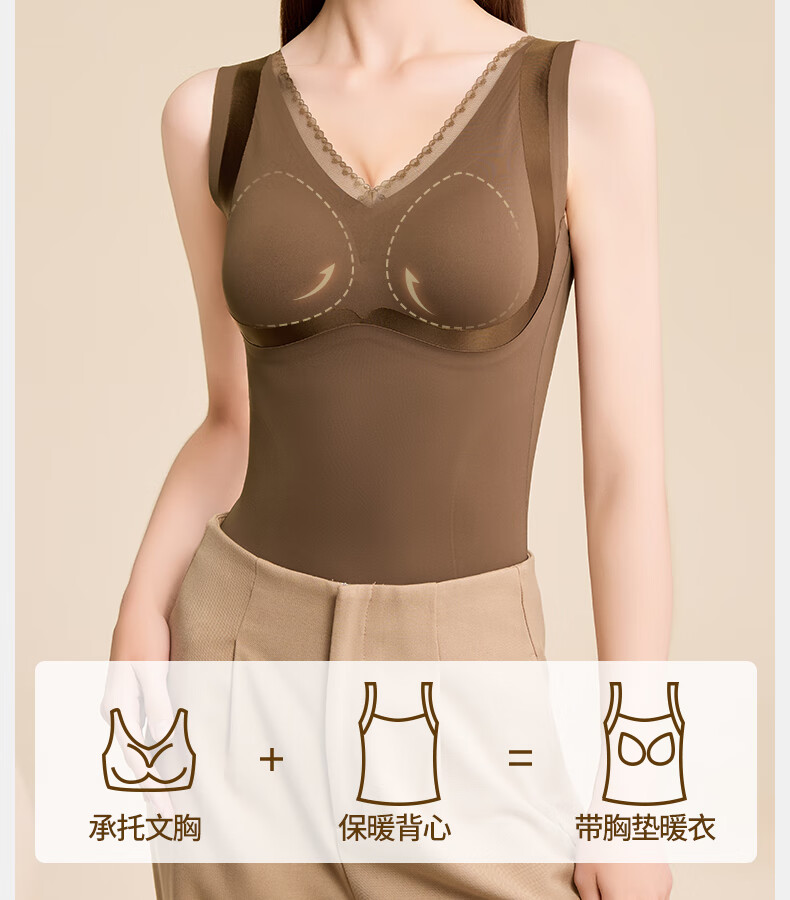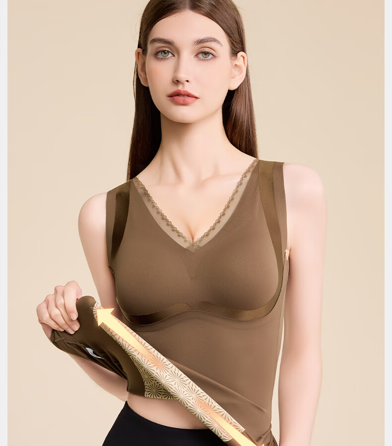 Tingmei (GRACWELL) warm shaping vest inner brushed bra-free bottoming shirt autumn and winter inner wear seamless back underwear Mocha Brown L