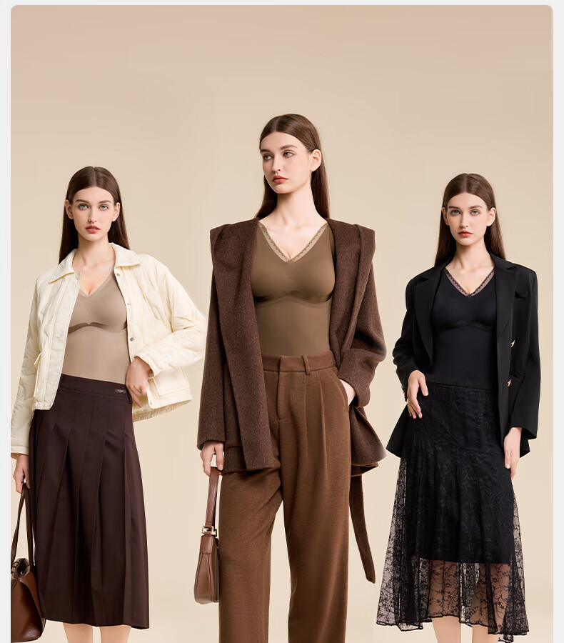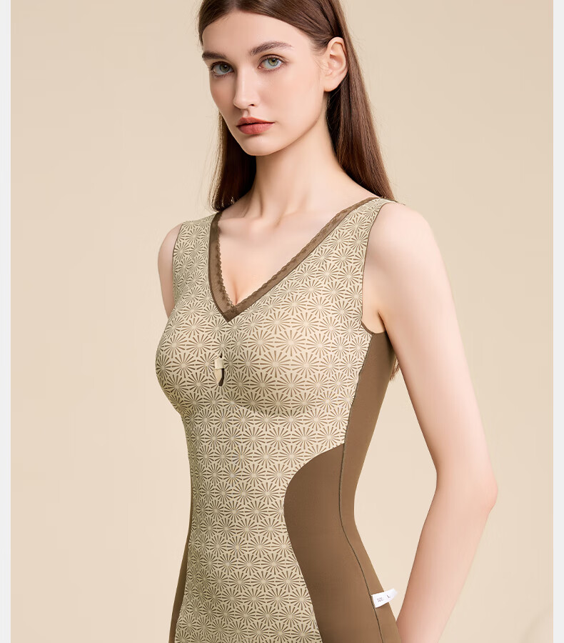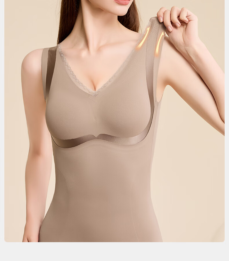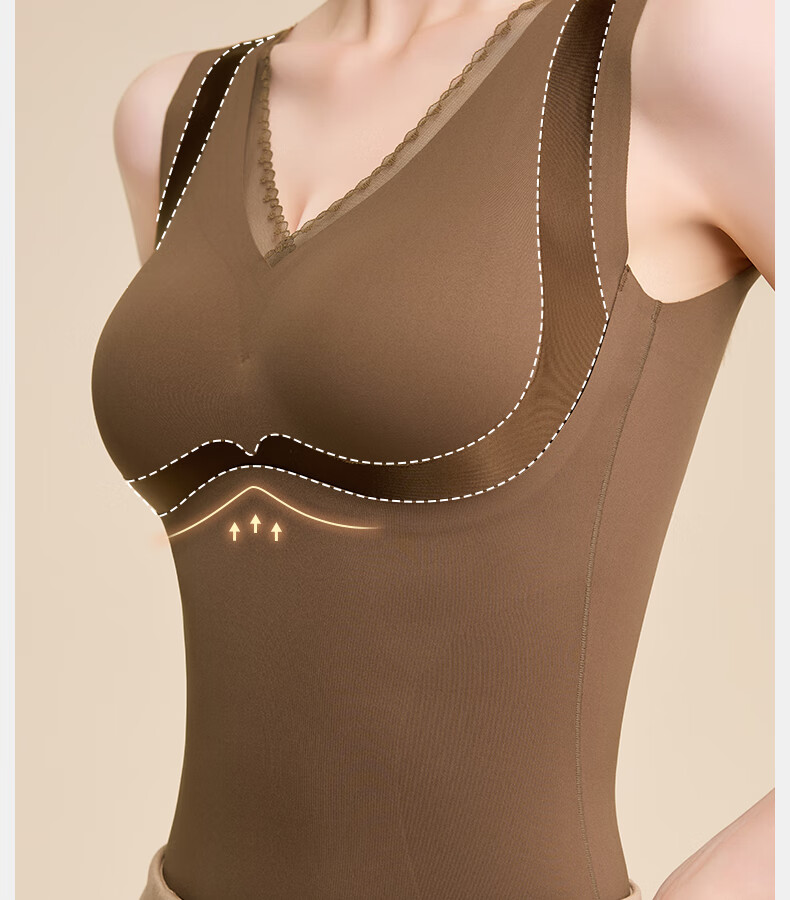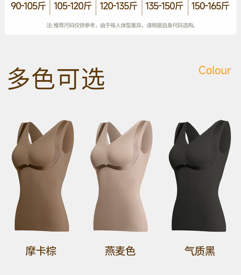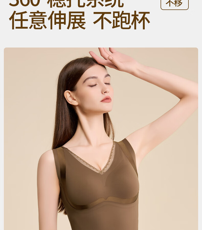 Tingmei (GRACWELL) warm shaping vest inner brushed bra-free bottoming shirt autumn and winter inner wear seamless back underwear Mocha Brown L