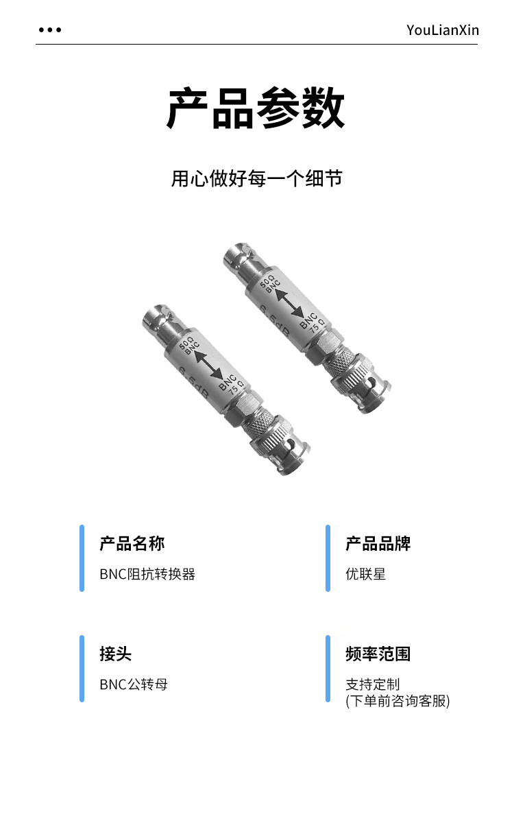 Youlianxing BNC interface impedance converter network analyzer matching device BNC female 50 ohm to BNC male 75 ohm YLX-BNCKJ5075