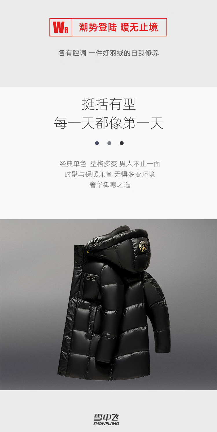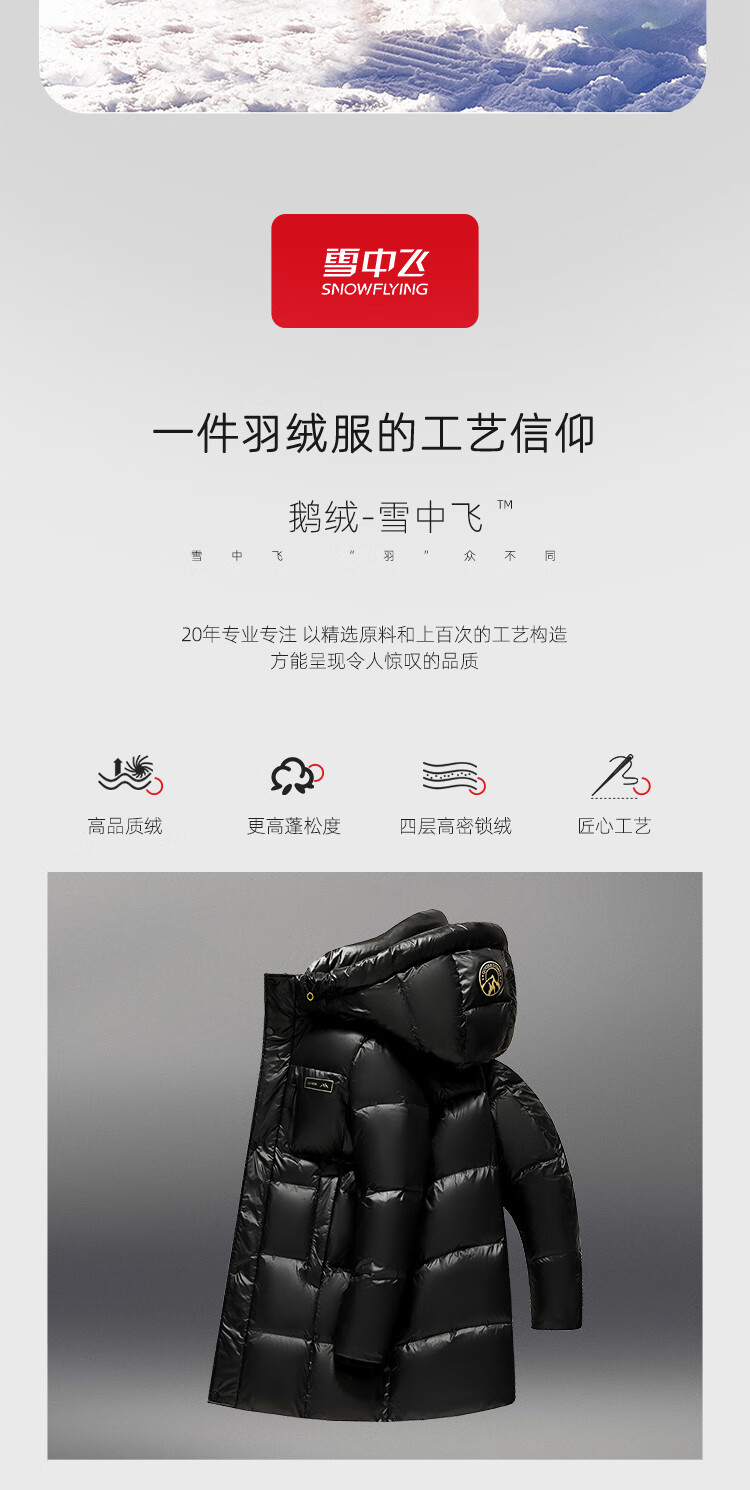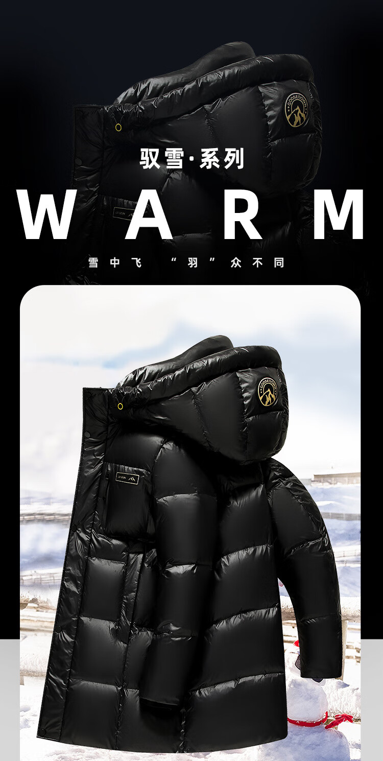 Flying in the Snow Goose Down Series Down Jacket Men's Mid-Length Hooded New Fashion Trend Shiny Warm and Cold-proof Thickened Jacket