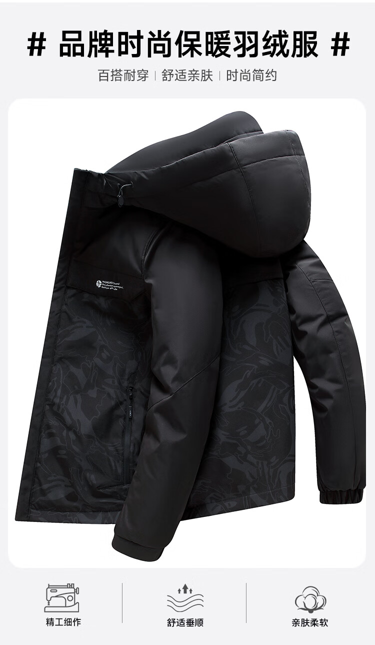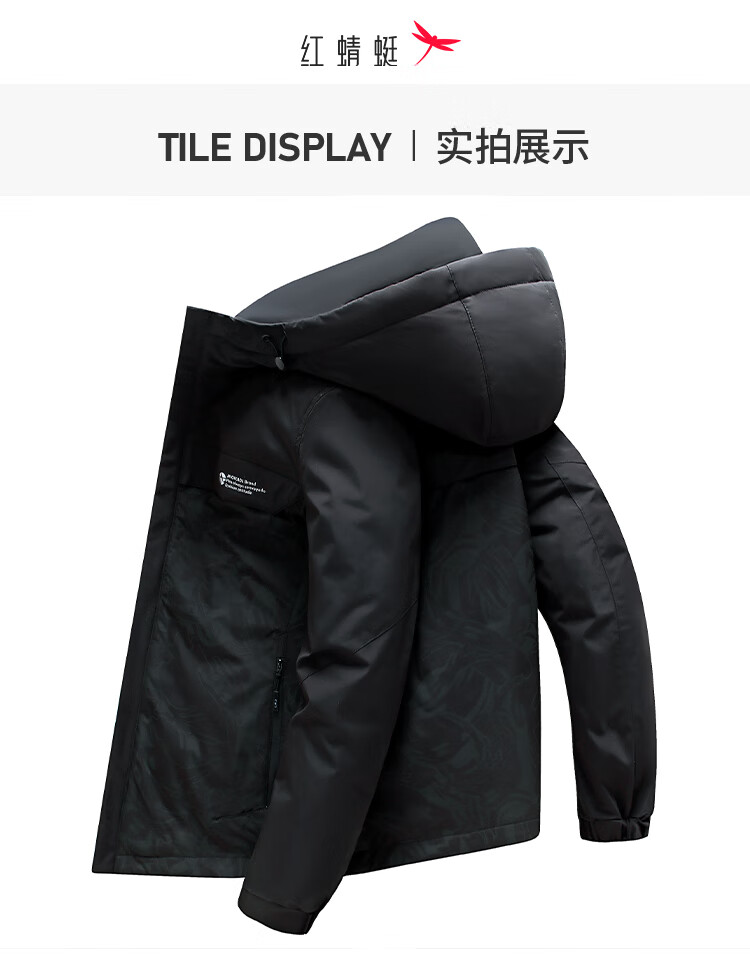 RED DRAGONFLY down jacket men's 90 down duck down winter windproof thickened cold-proof warm camouflage hooded men's jacket black XL
