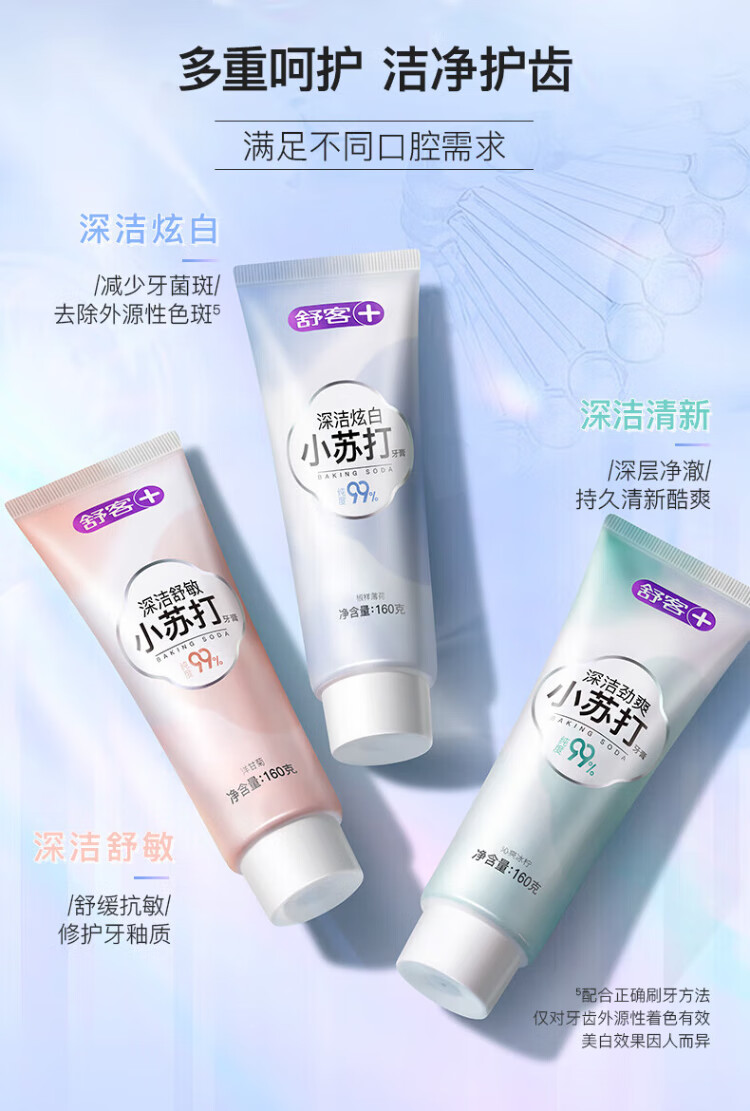 Shuke Baking Soda Toothpaste containing fluoride for stain removal and whitening, 3 tubes total 480g, lime, mint, chamomile, on clearance.