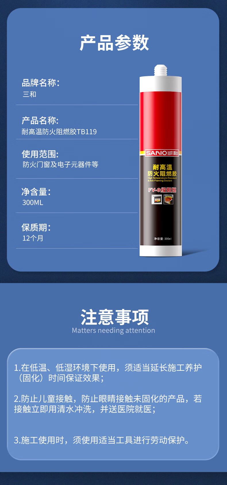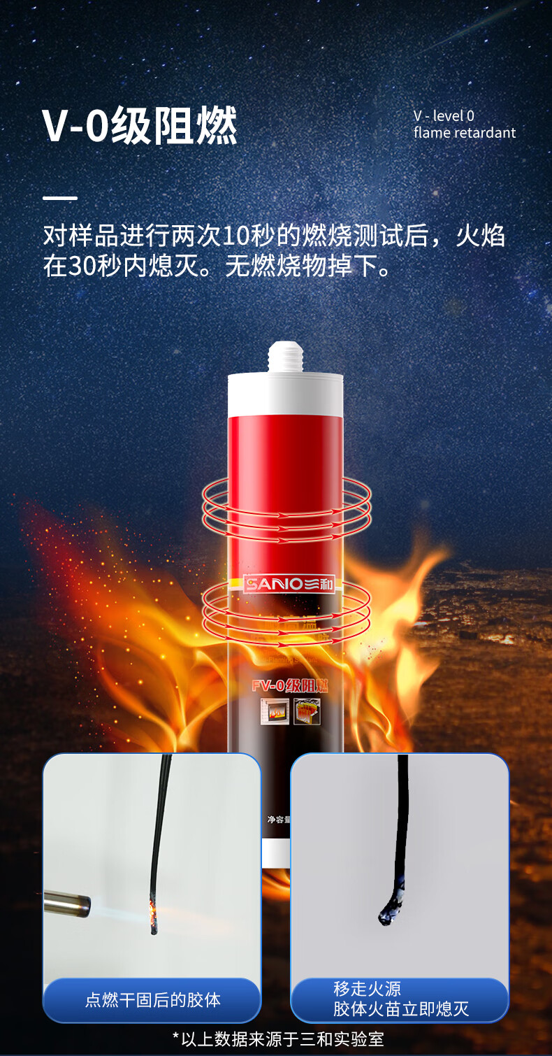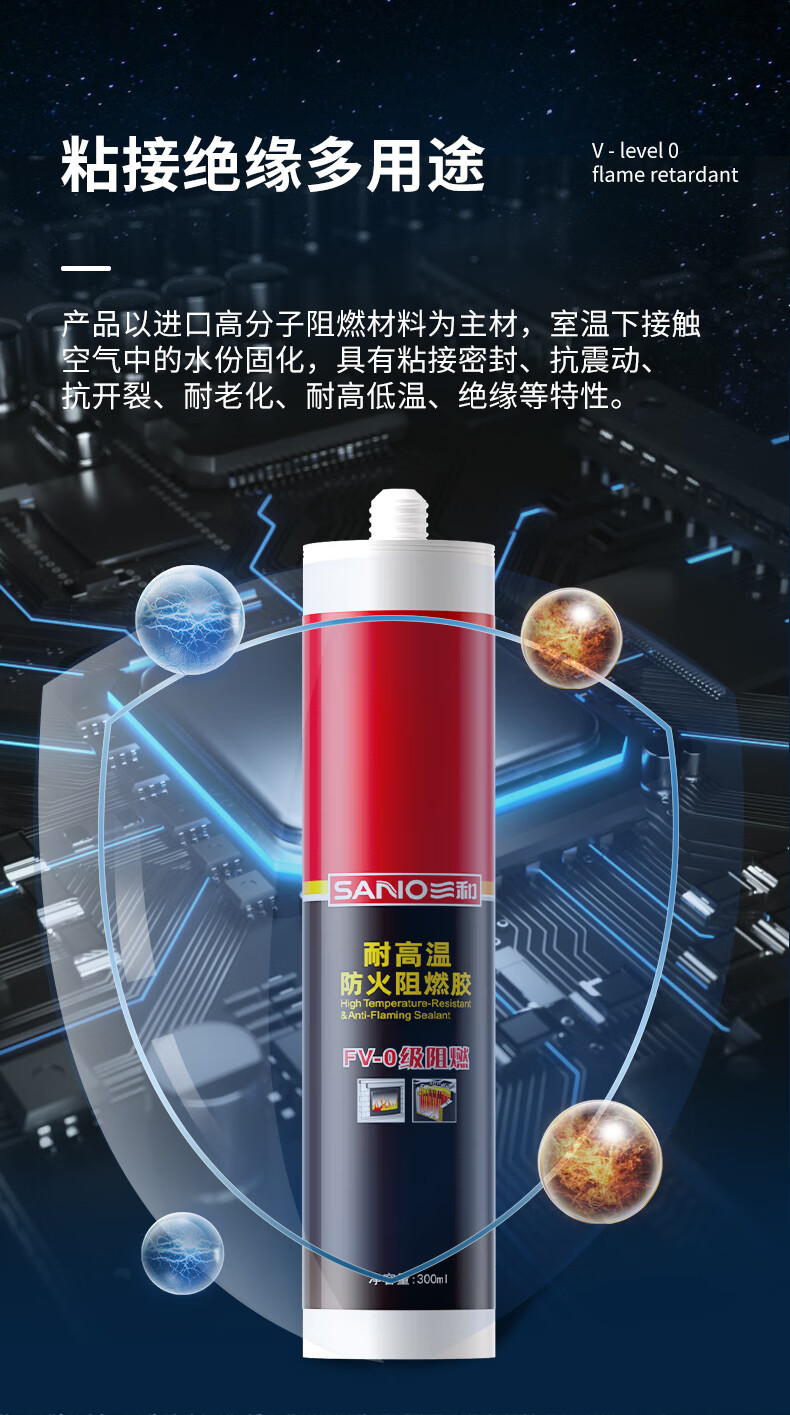 Sanhe glass glue flame retardant fireproof high temperature sealant exhaust pipe range hood check valve flue waterproof fixed glass glue TB119 300ml black
