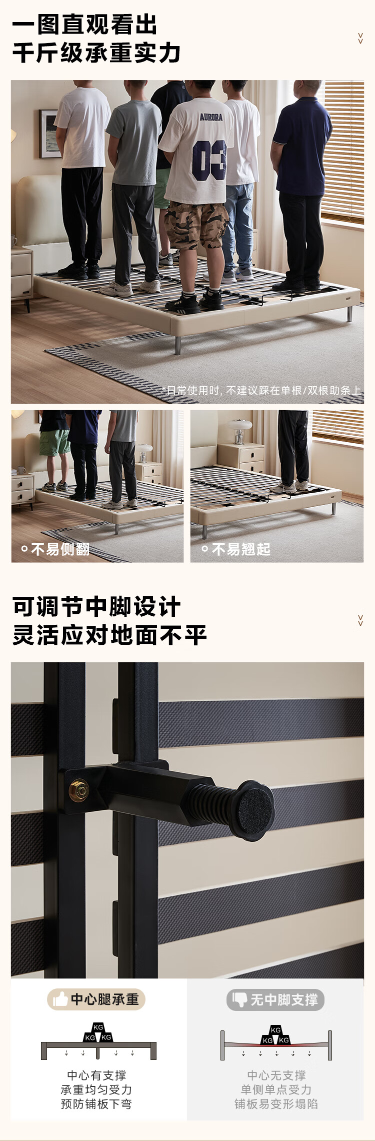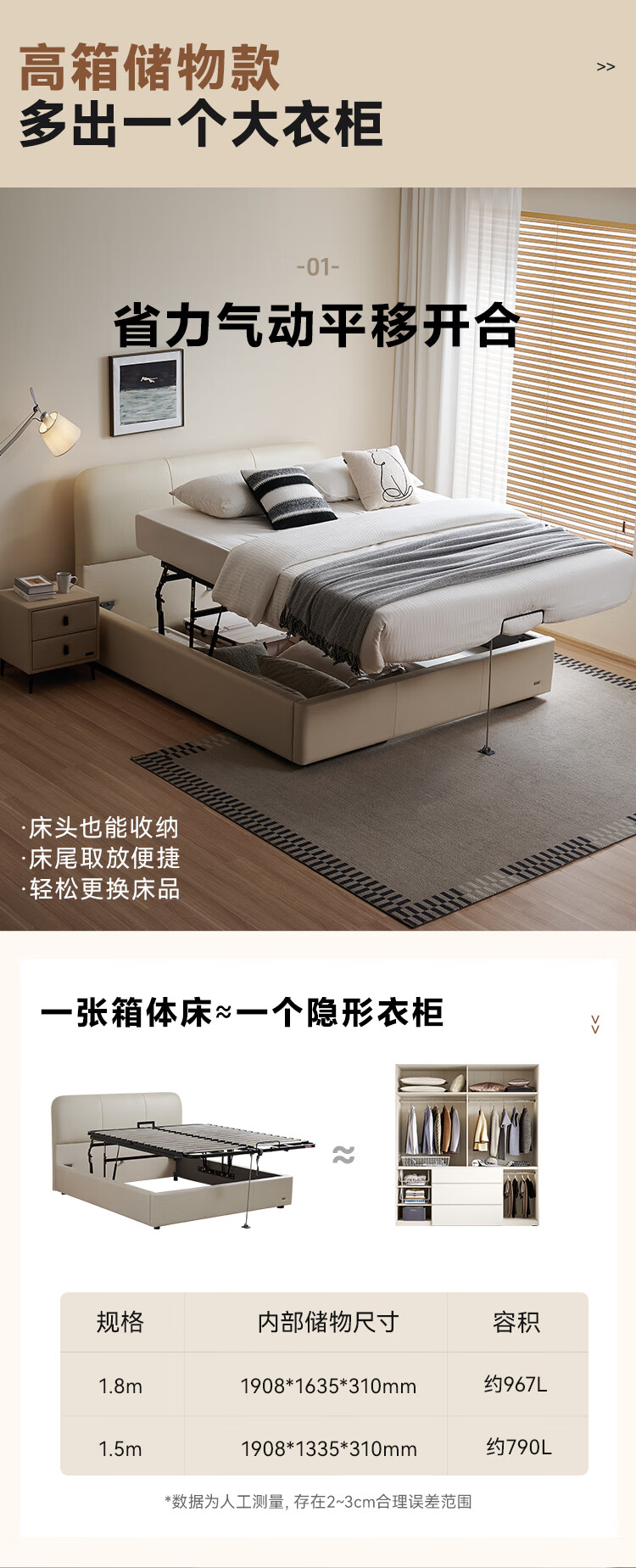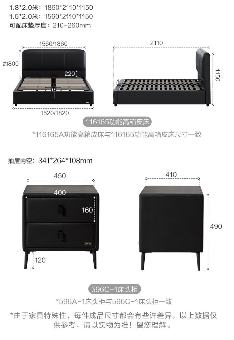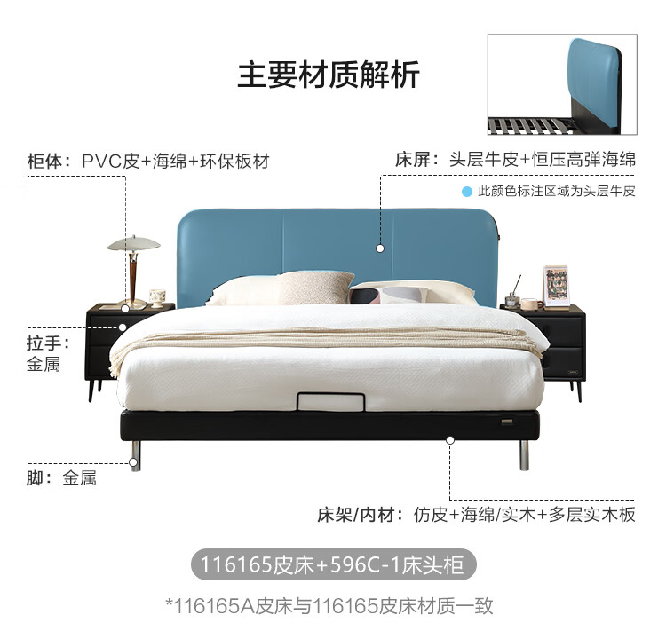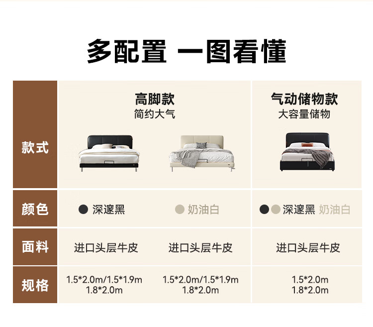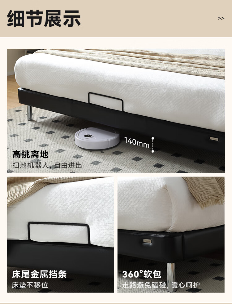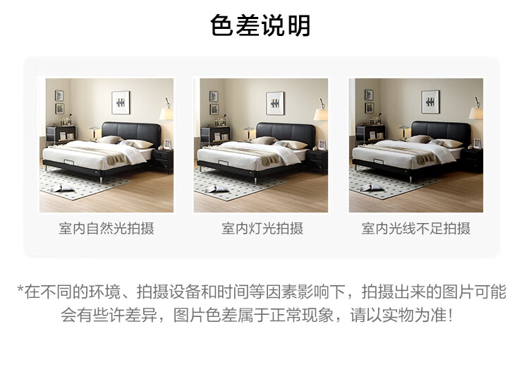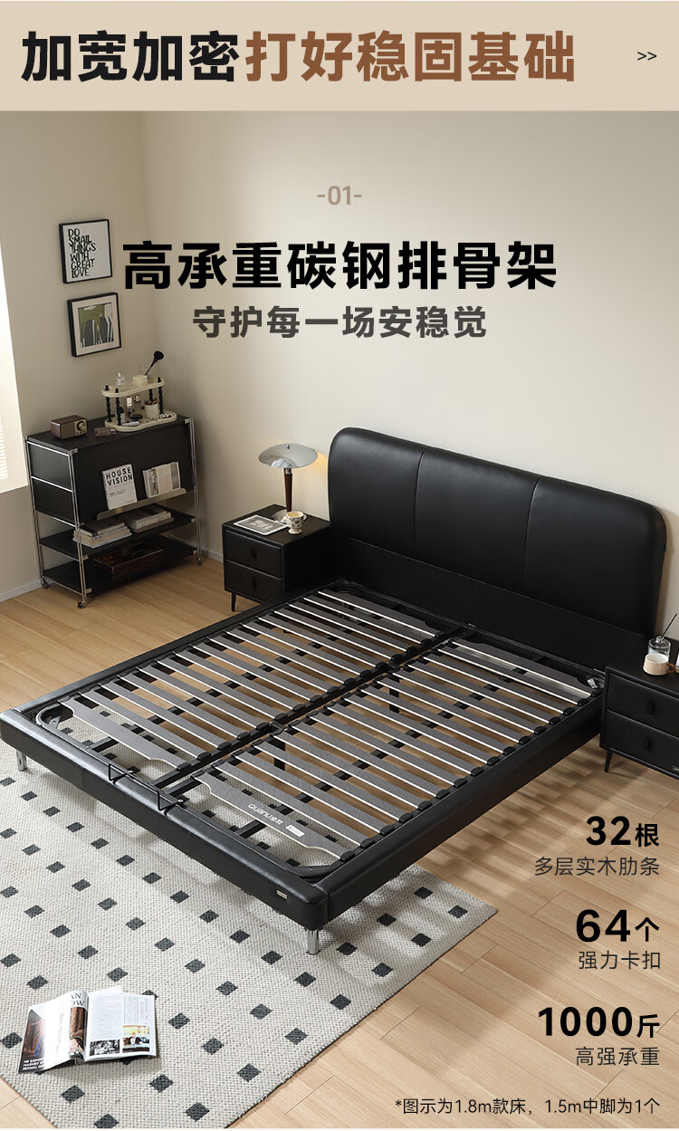 Quanyou Home Leather Bedside Cowhide Bedroom Double Soft Backrest Modern Simple Leather Art King Bed 1.5x1.9 Meters