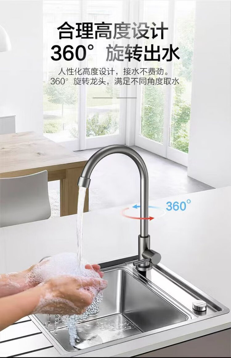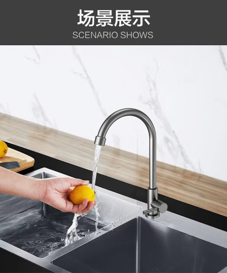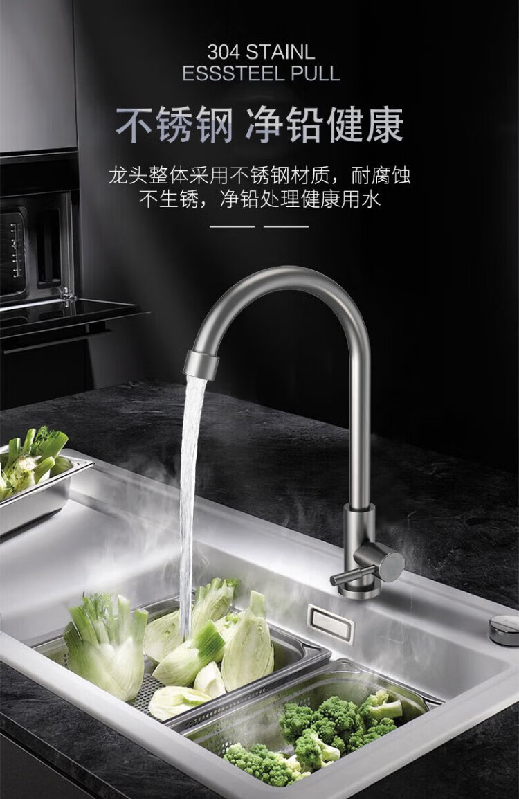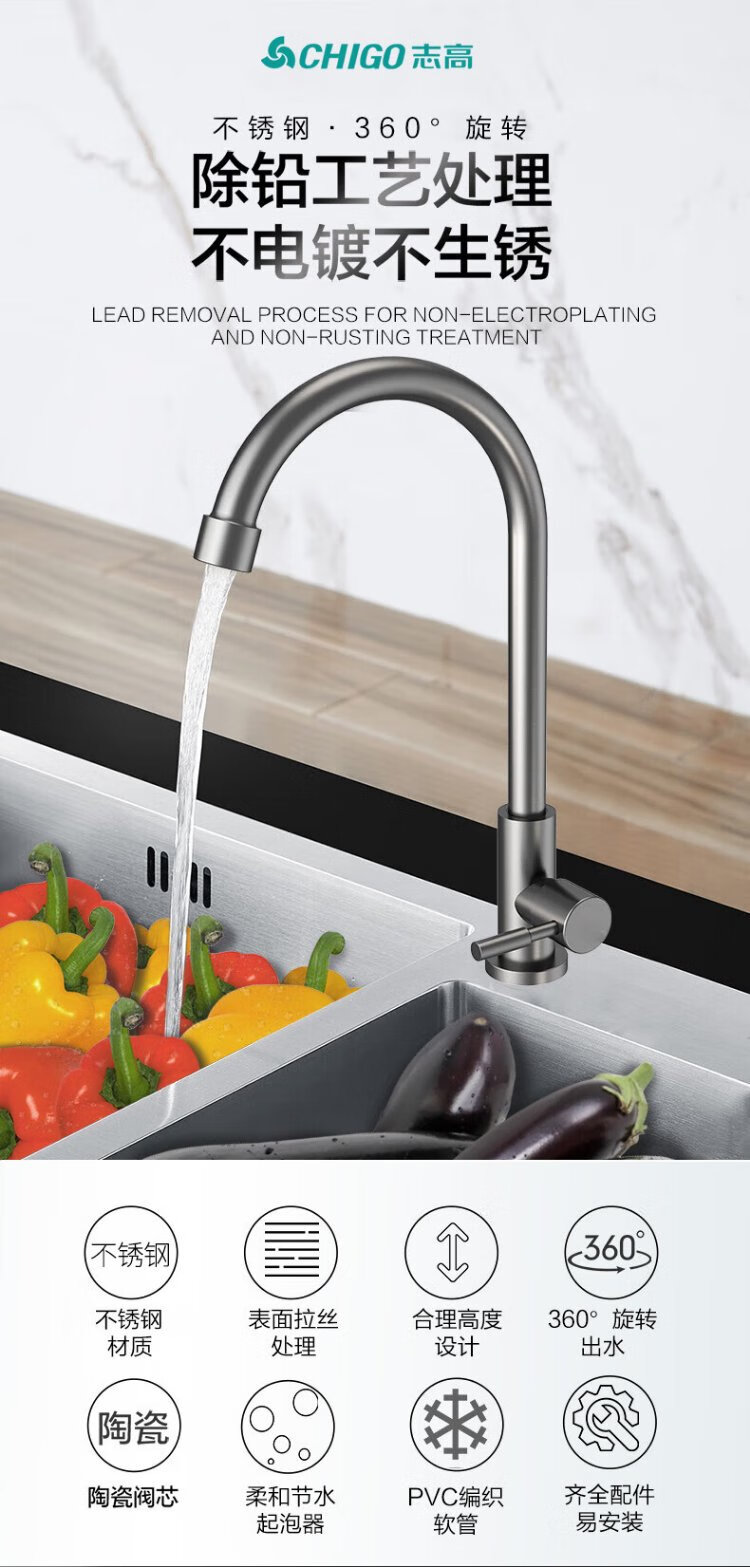 Chigo stainless steel kitchen faucet bathroom hot and cold water head anti-splash sink single cold faucet