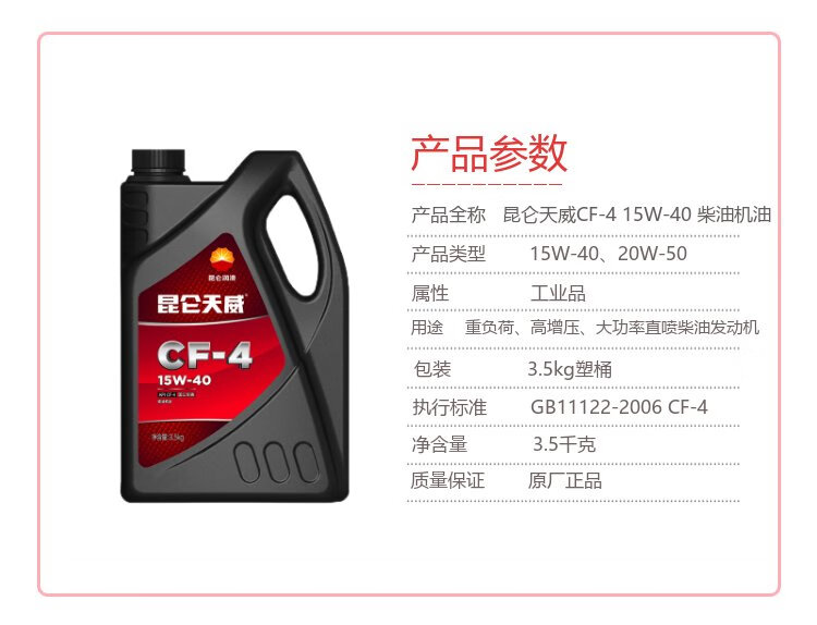 KunLun Tianwei CF-4 15W-40 Diesel Engine Oil High-end High-horsepower Heavy-Duty Diesel Engine Oil 3.5kg/4L Car Maintenance and Maintenance Automotive Supplies