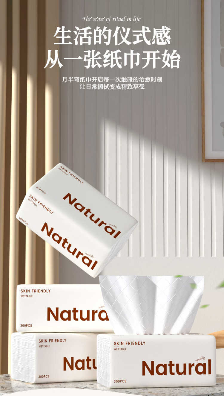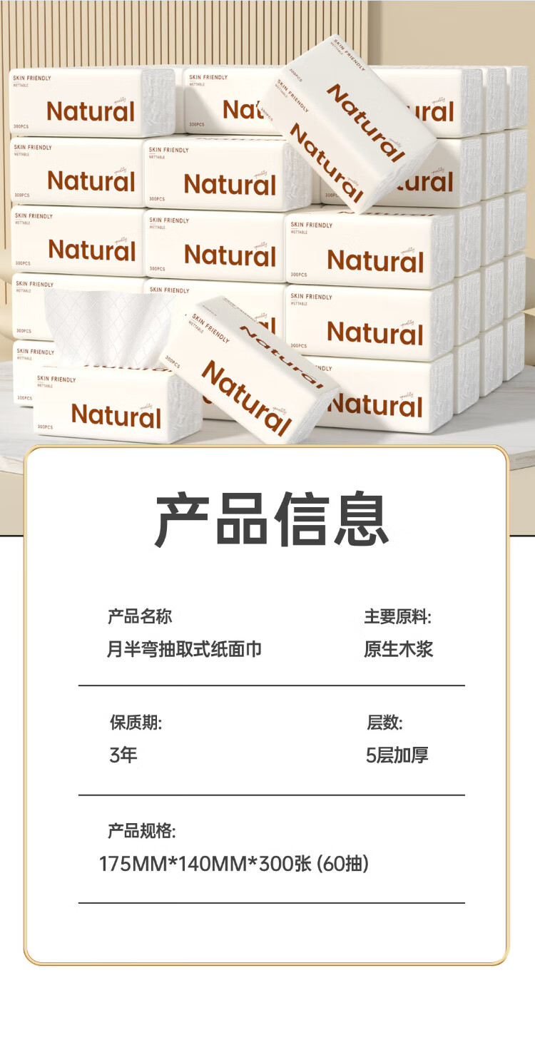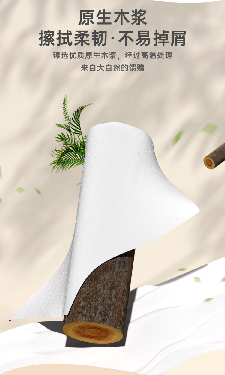 Half-curved log natural paper 5-layer thickened 30 packs of household napkins, facial tissues, toilet paper, toilet paper, whole box batch