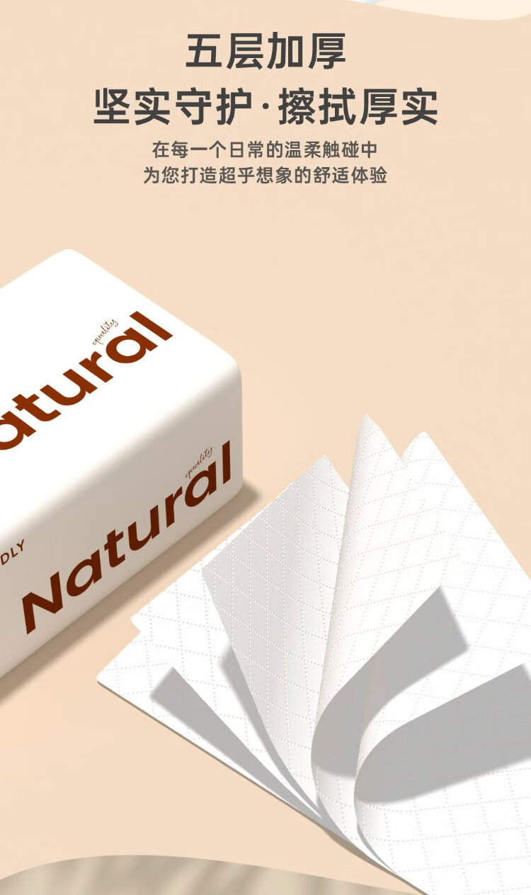Half-curved log natural paper 5-layer thickened 18 packs of household napkins, facial tissues, toilet paper, toilet paper, whole box batch