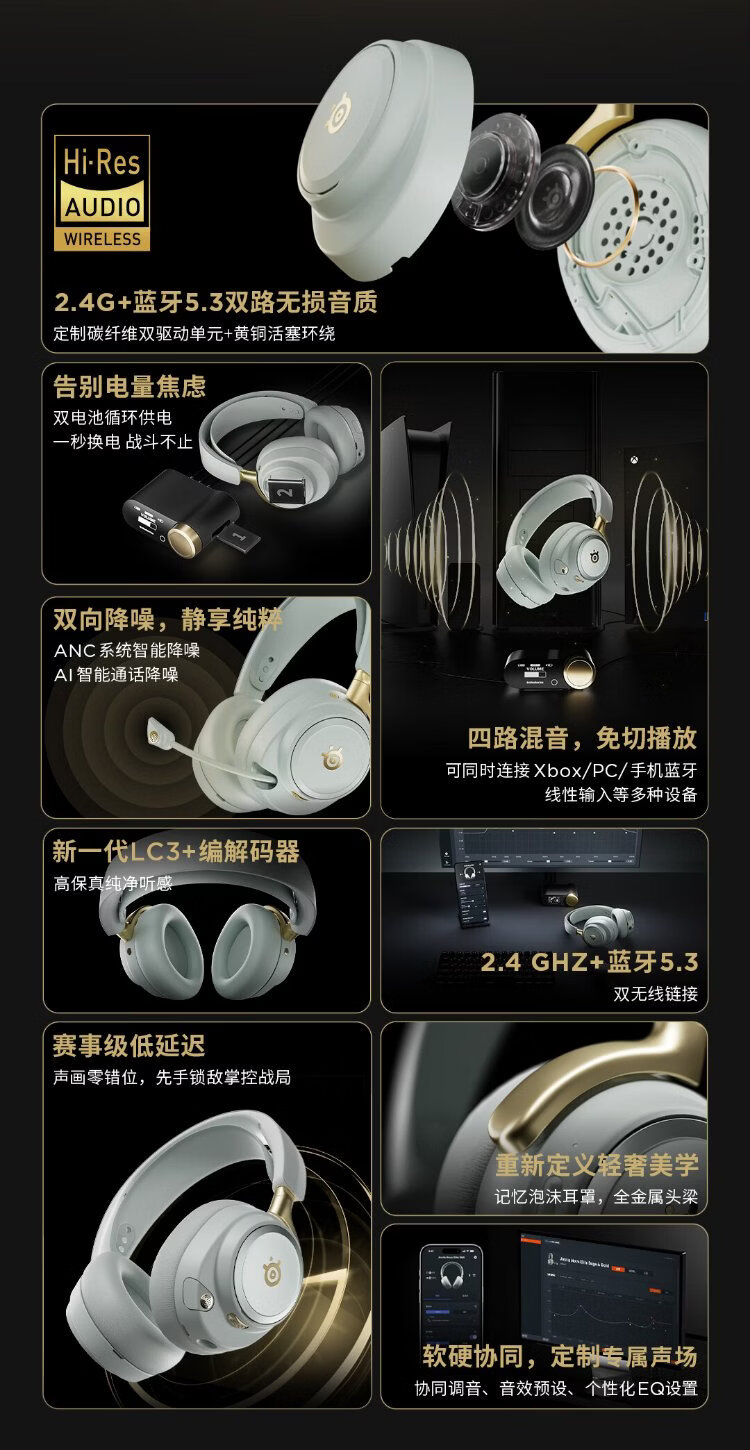 SteelSeries Faker champion same style flagship Arctis Nova Elite head-mounted Bluetooth ANC noise reduction wireless sports gaming headset Hi-Res gold
