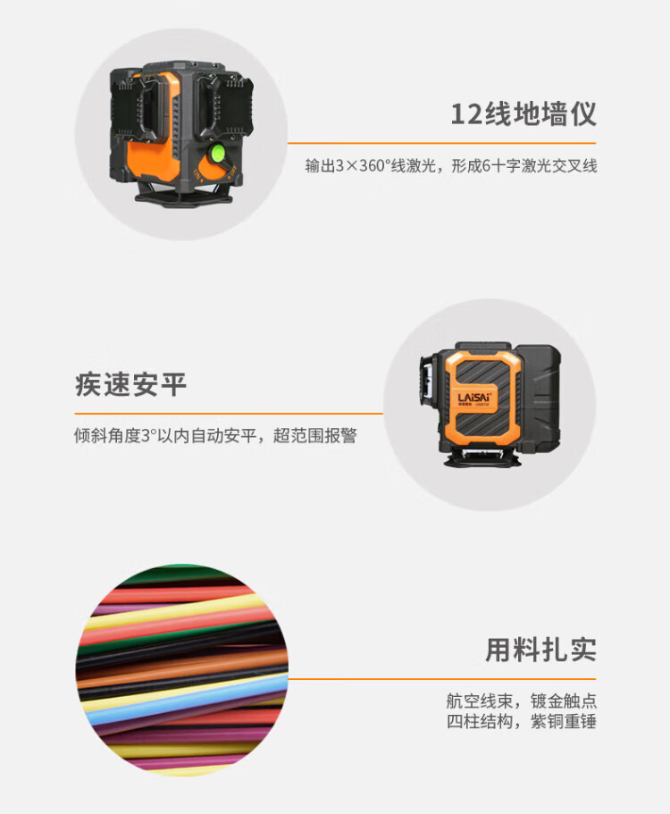LAISAI LS6710 red light 12-line horizontal line level stick to the ground high-precision high-brightness marking instrument
