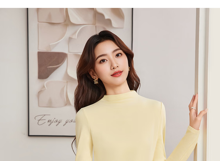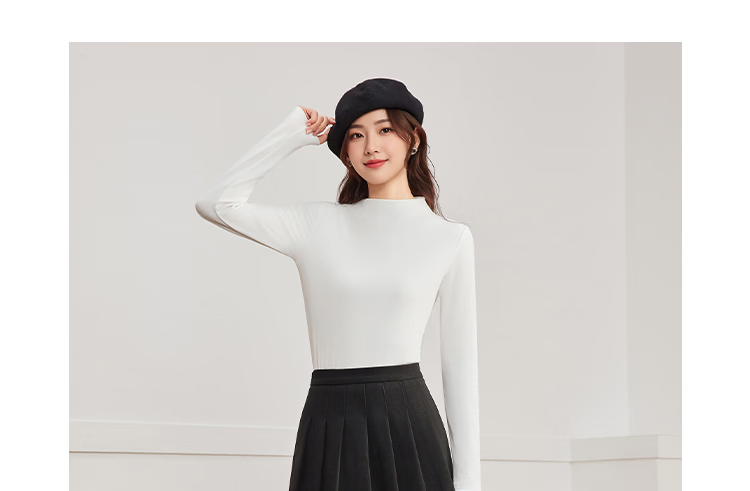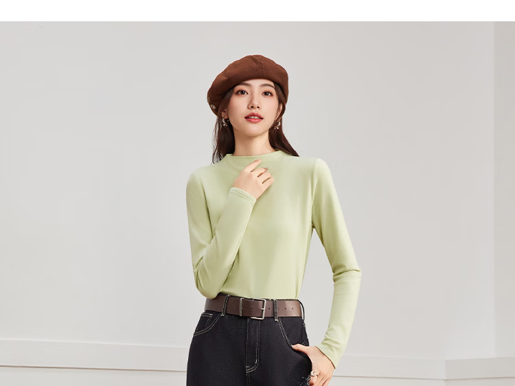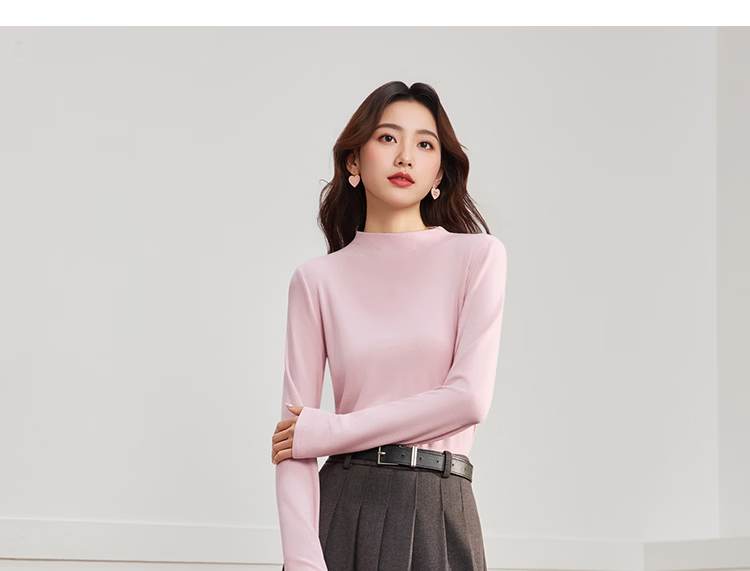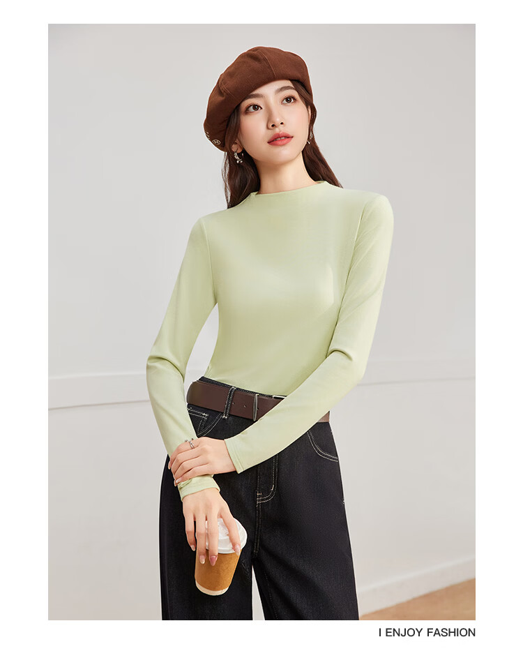 IEF/Aiyifu 2025 new autumn and winter Korean style thin velvet half turtleneck solid color knitted sweater with bottoming shirt for women