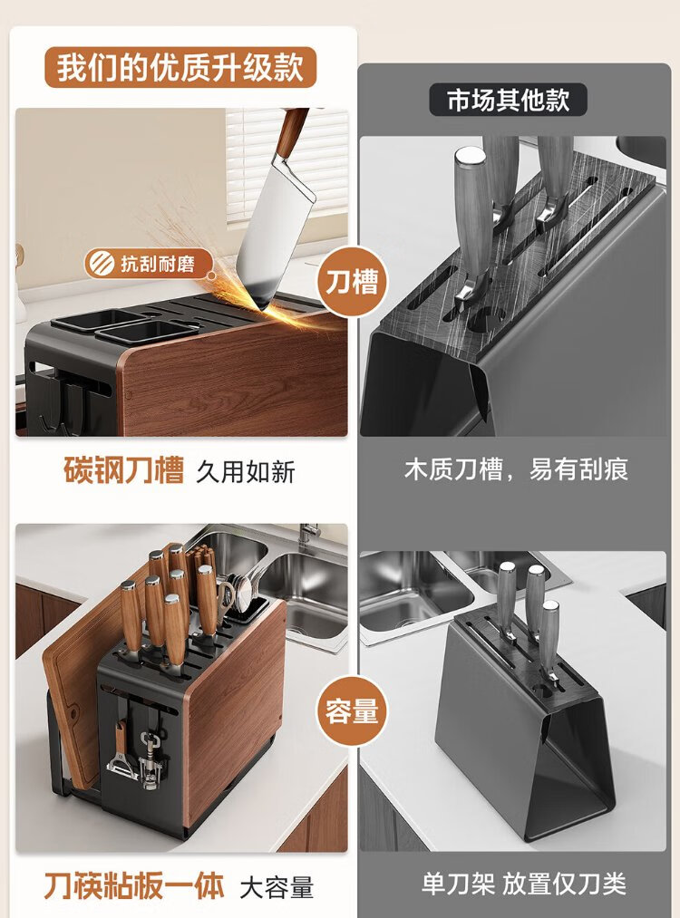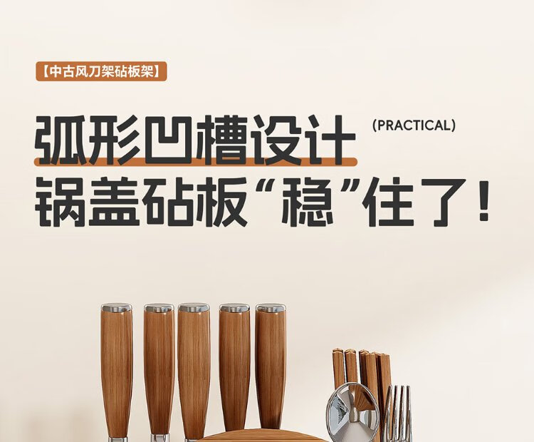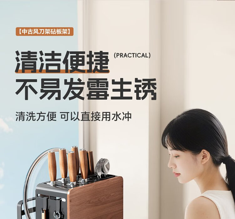 Shuaishi (shuaishi) kitchen antique style knife rack storage rack knife kitchen knife chopsticks all-in-one multi-functional storage rack chopping board placement rack