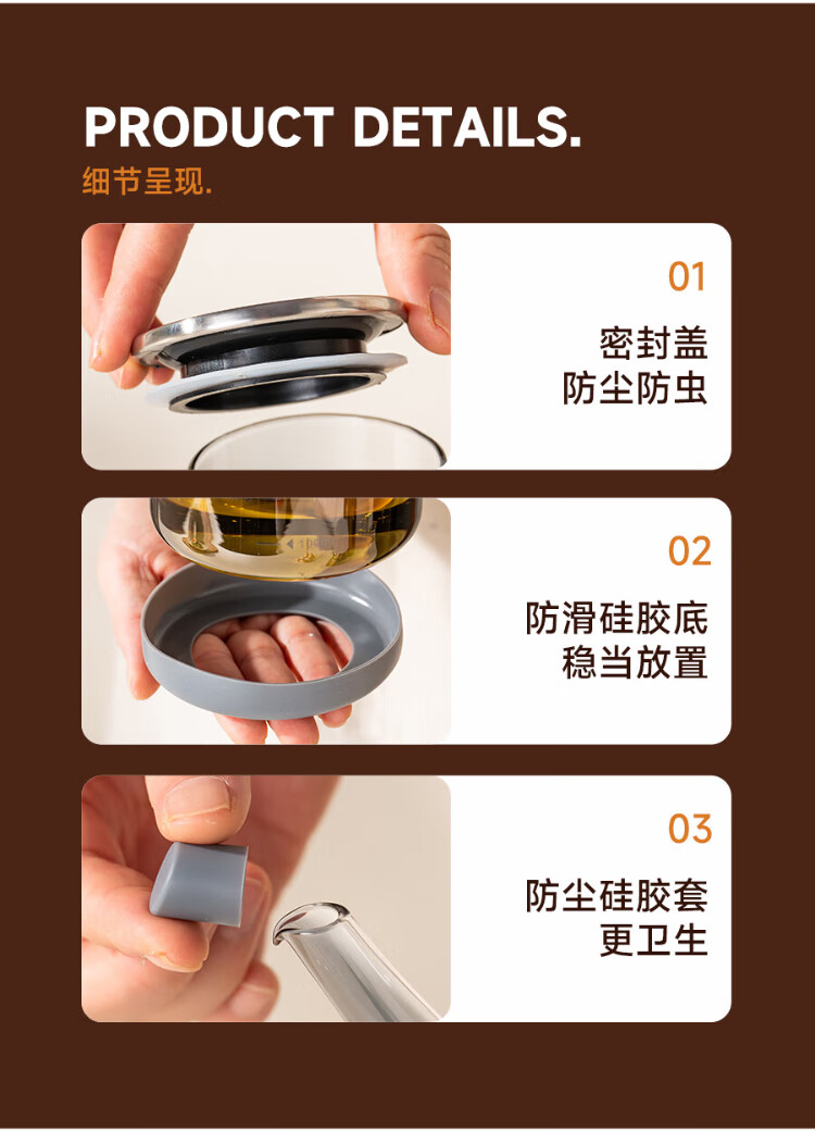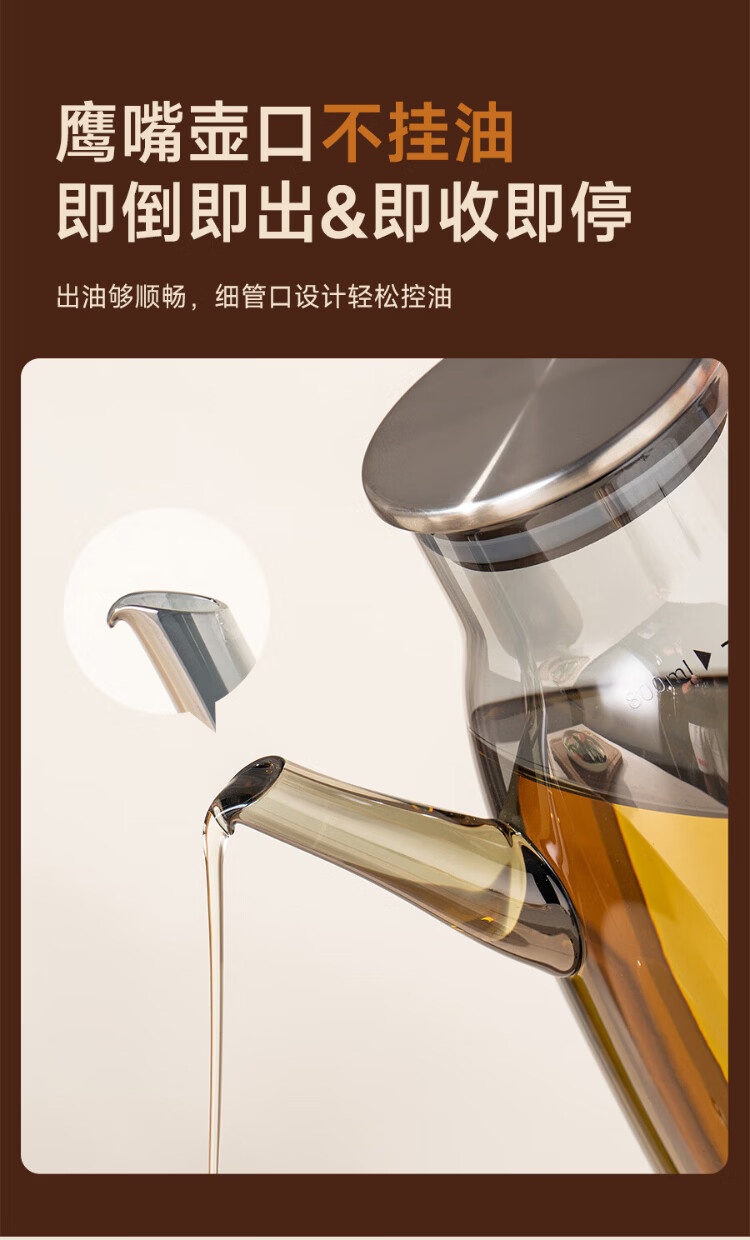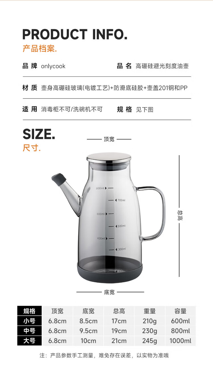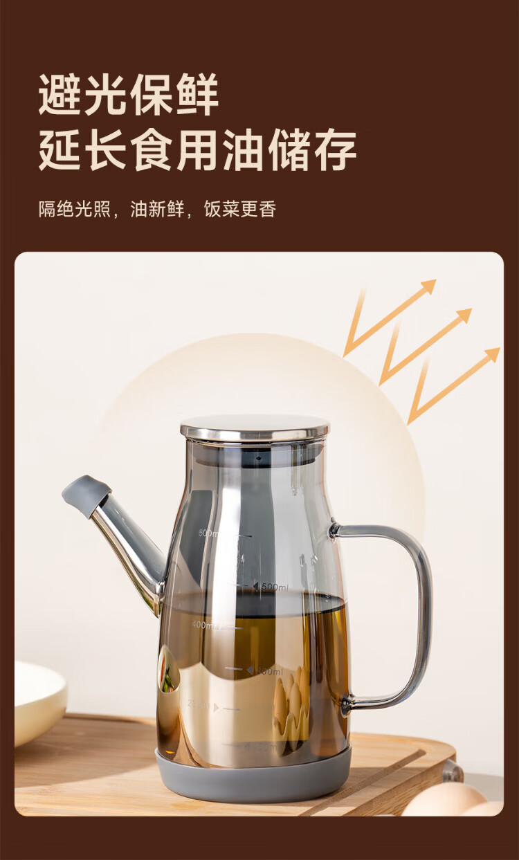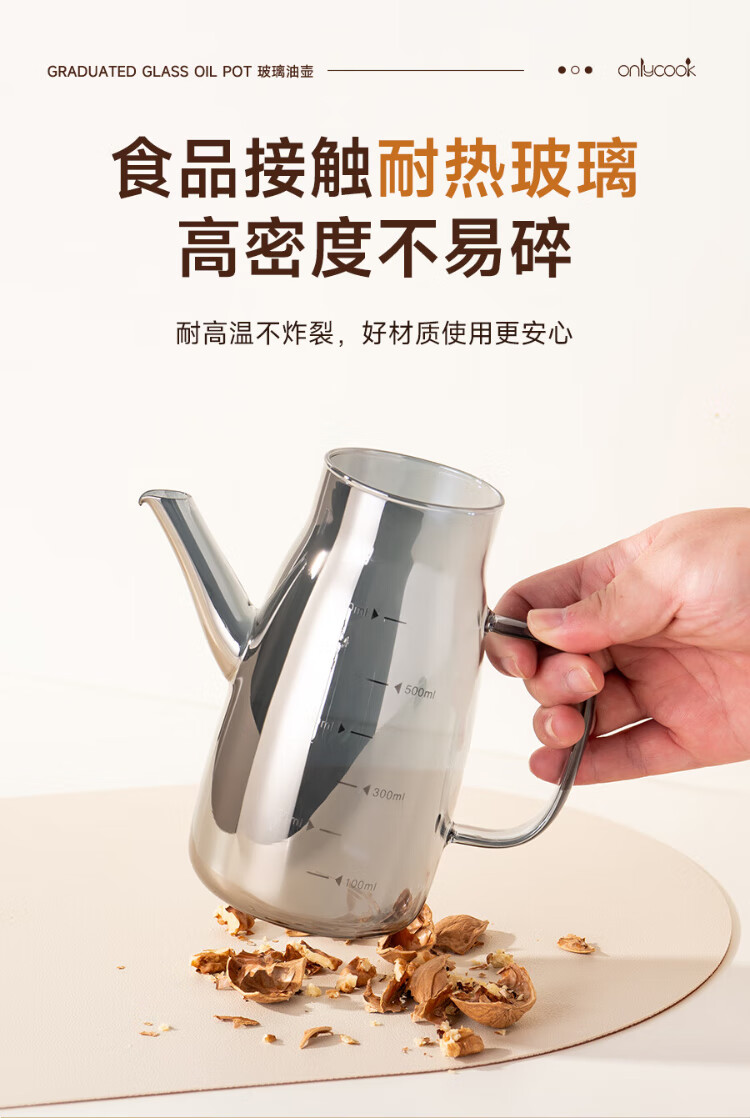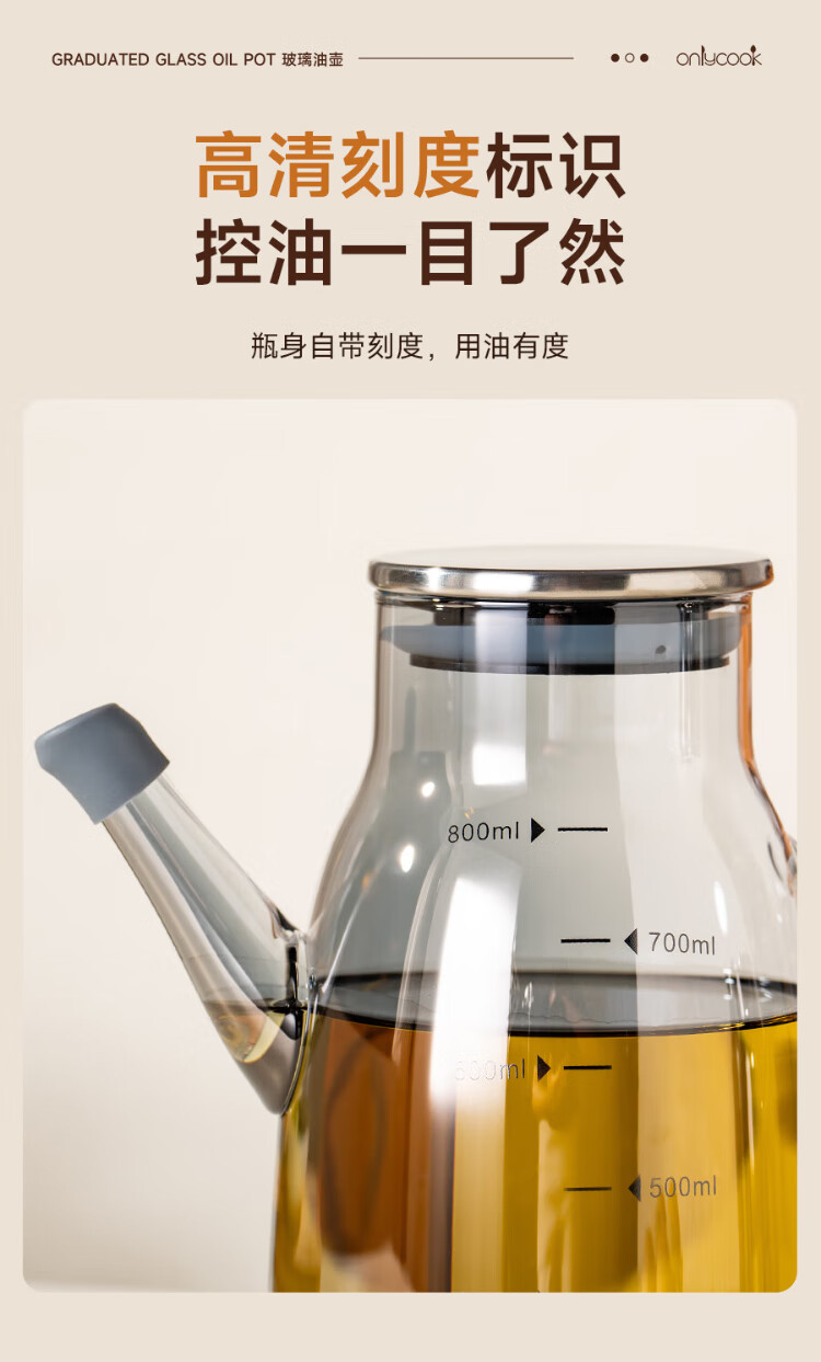 Onlycook high borosilicate glass oil bottle household graduated oil bottle kitchen special anti-leak spout non-hanging oil pouring oil bottle-600