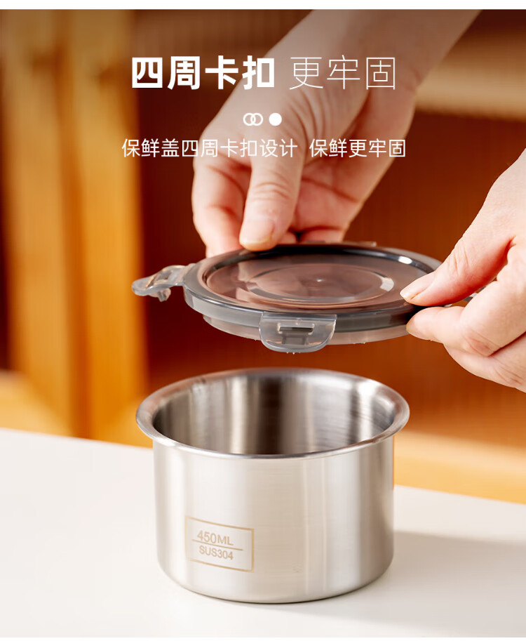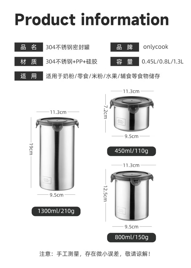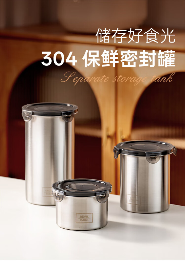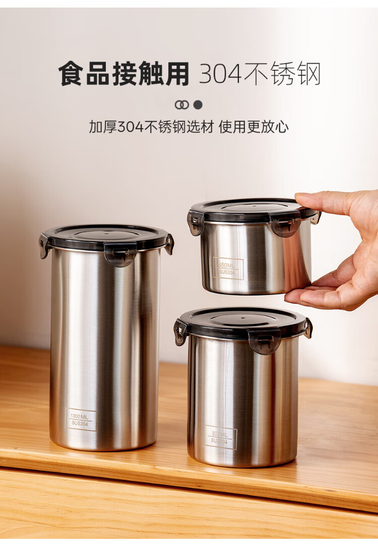 Onlycook sealed jar storage jar 304 stainless steel food grade storage bowl box coffee bean sealed box 450ml