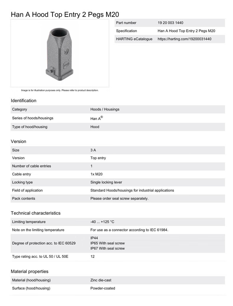 HARTING connector accessories housing-19200031440