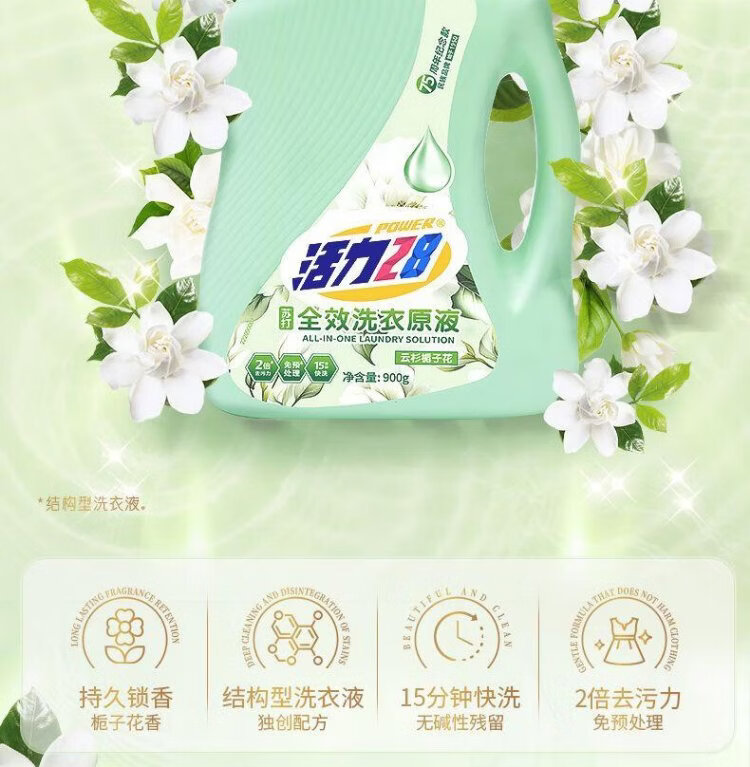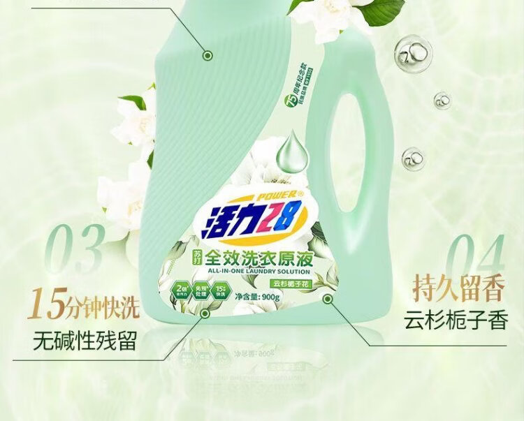 Vitality 28 full-effect laundry detergent 900g 2 bottles + 950g*3 bags Spruce Gardenia Stain Remover Fragrance Clothes Laundry Detergent