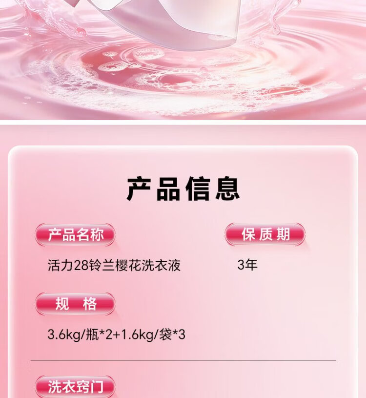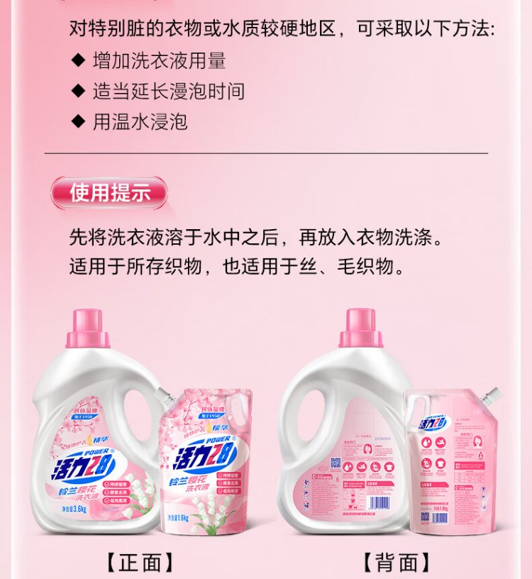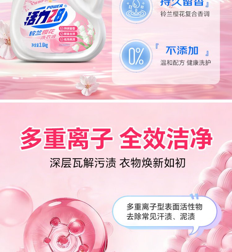 Vitality 28 Lily of the Valley and Sakura Laundry Detergent 24 catties 3.6kg*2 bottles + 1.6kg*3 bags, long-lasting fragrance, great value stocking package