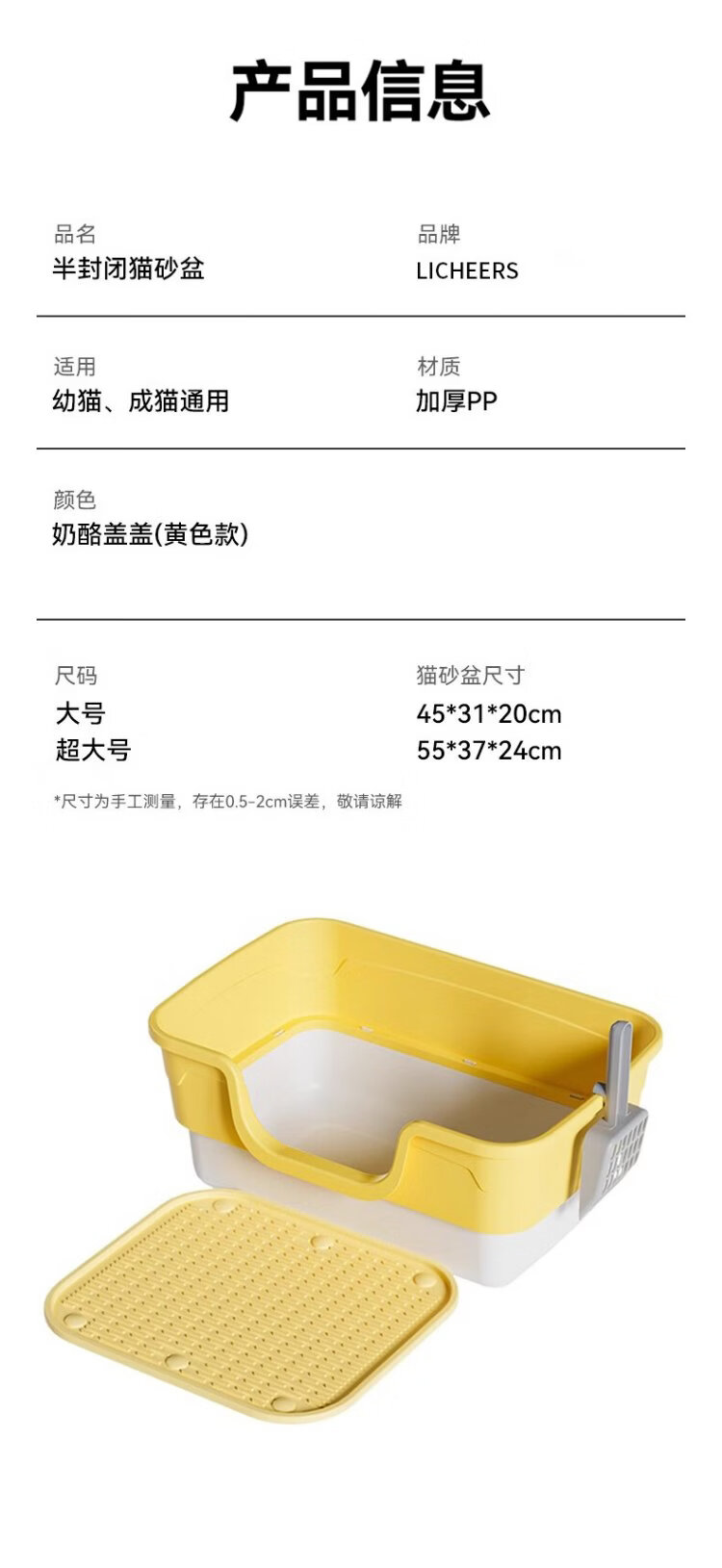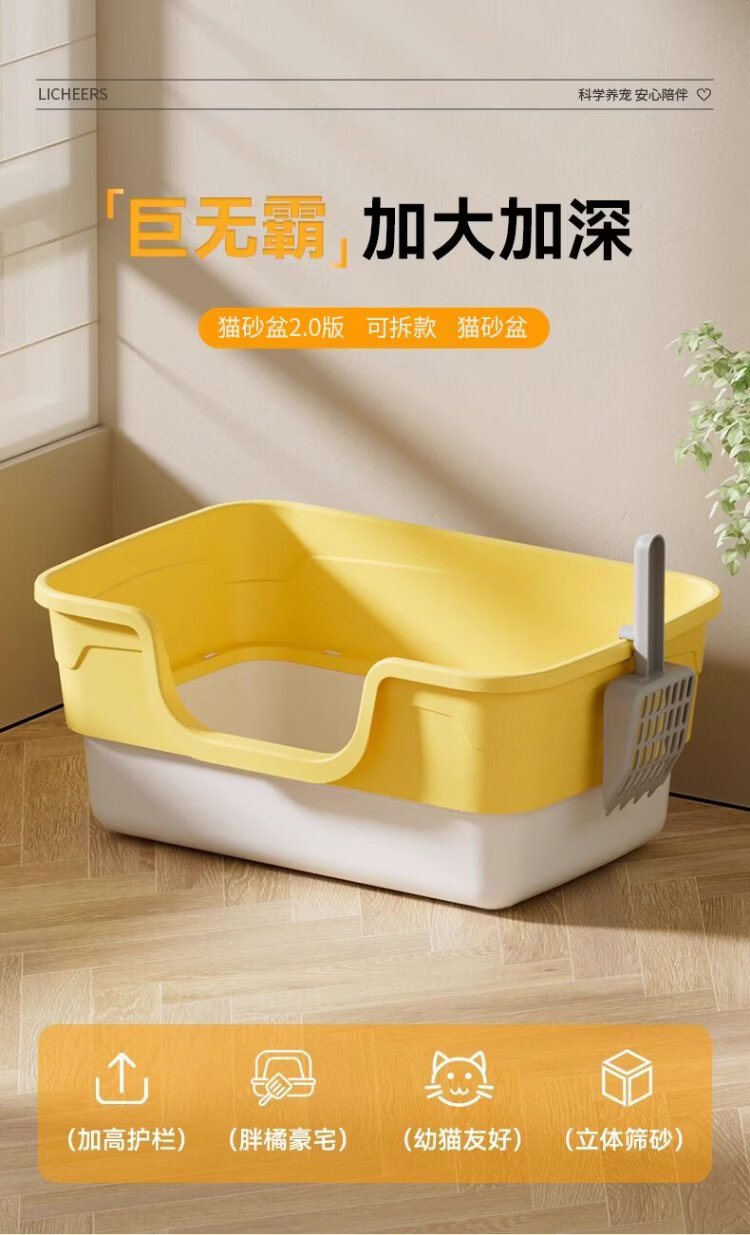 Licheers cat litter box extra large heightened fence anti-splash cat toilet extra large semi-enclosed removable cat litter box with shovel