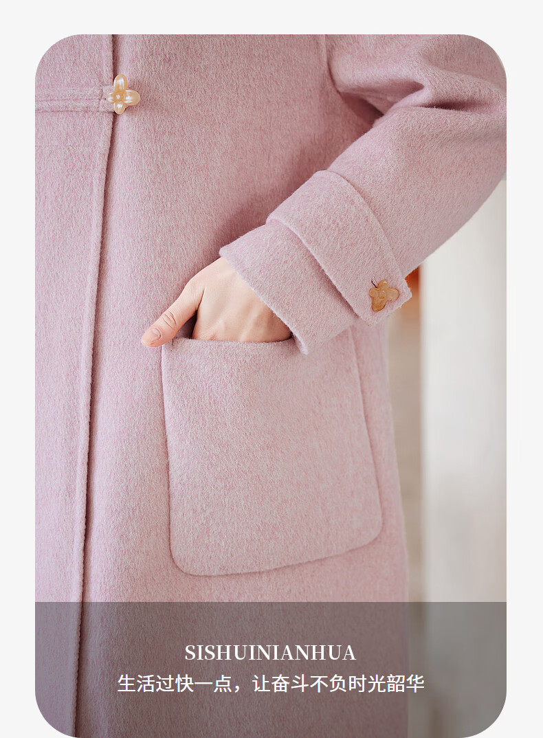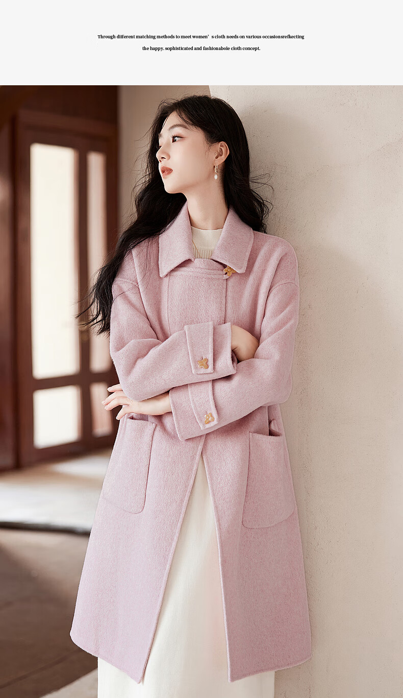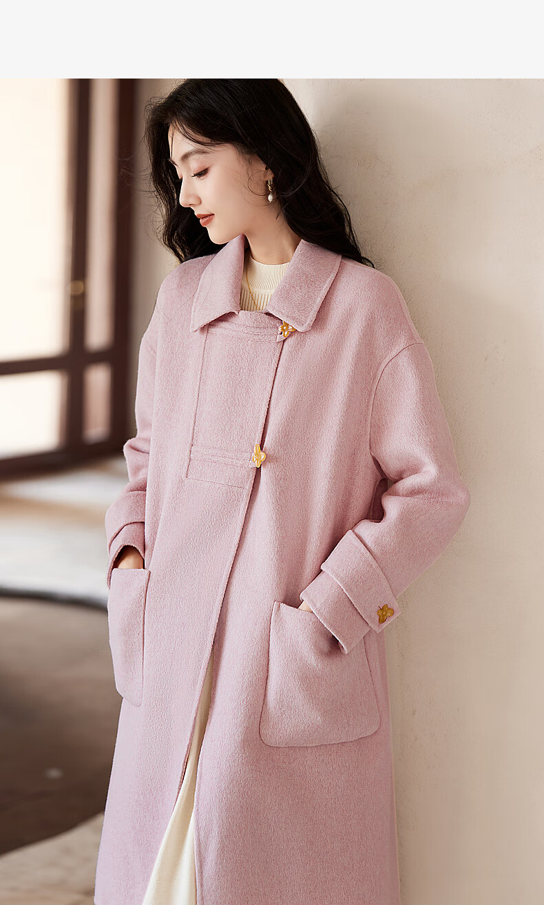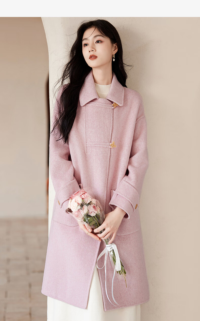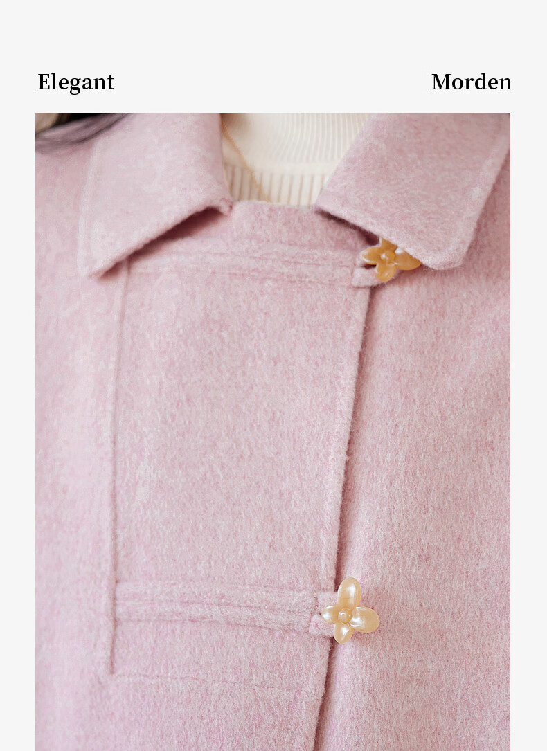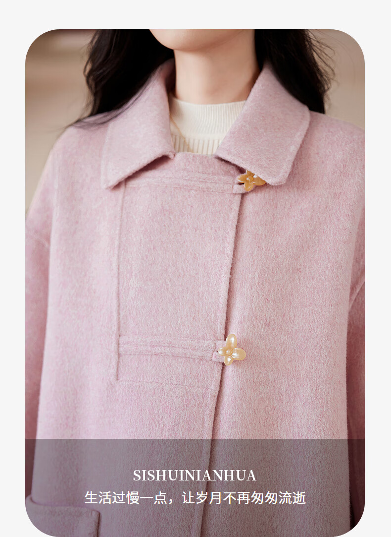 Homecoming Winter Small Flower Button Design Wool Coat High-end Niche Fashion Wool Coat Women 01 Pink S