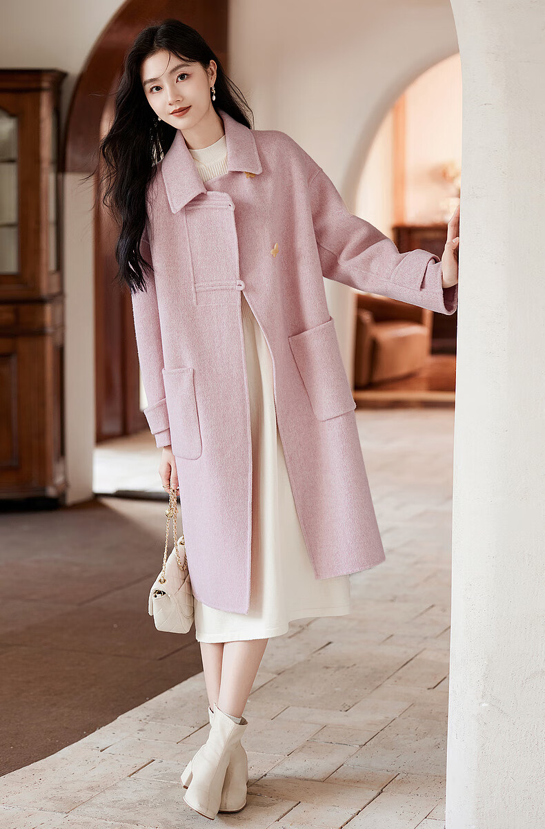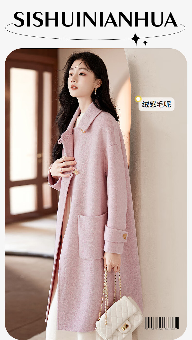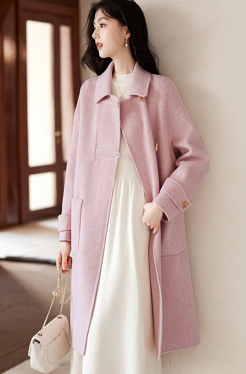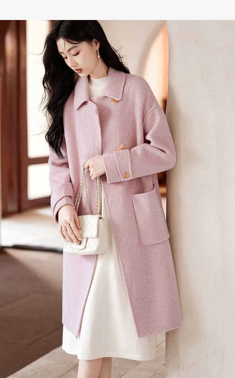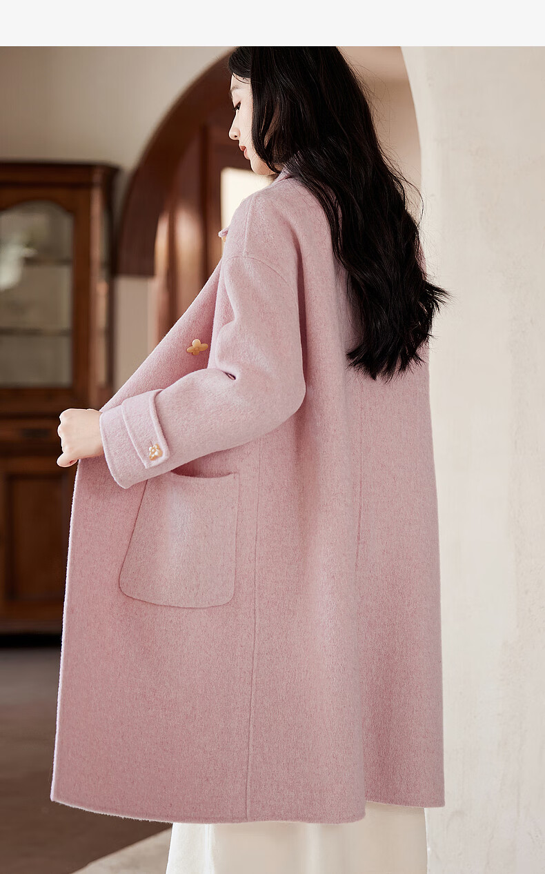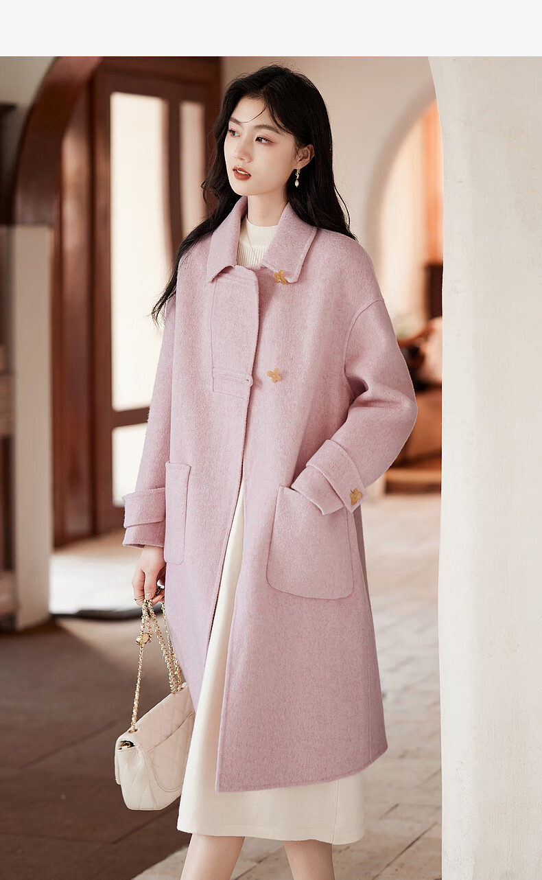 Homecoming Winter Small Flower Button Design Wool Coat High-end Niche Fashion Wool Coat Women 01 Pink S