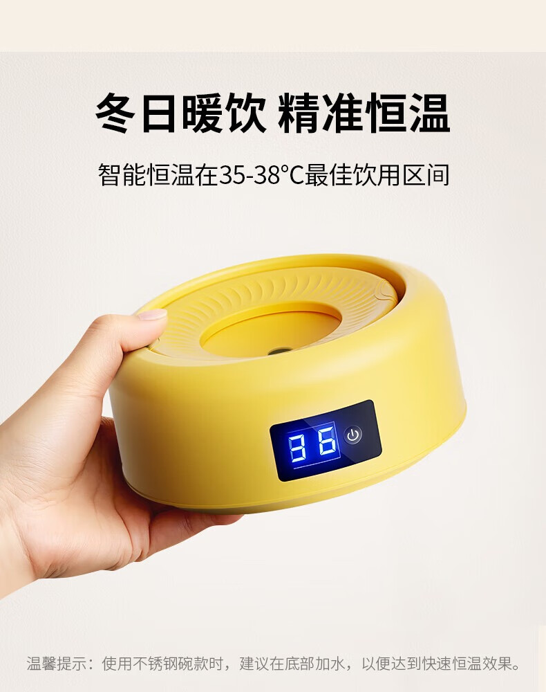 JKULNING pet constant temperature drinking bowl yogurt machine cat water dispenser constant temperature heating basin dog drinking bowl does not wet the mouth yellow