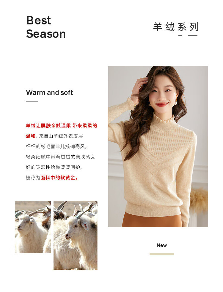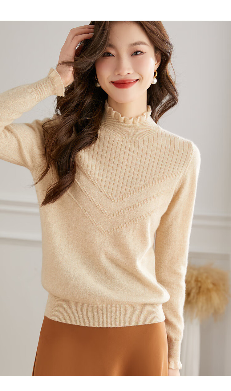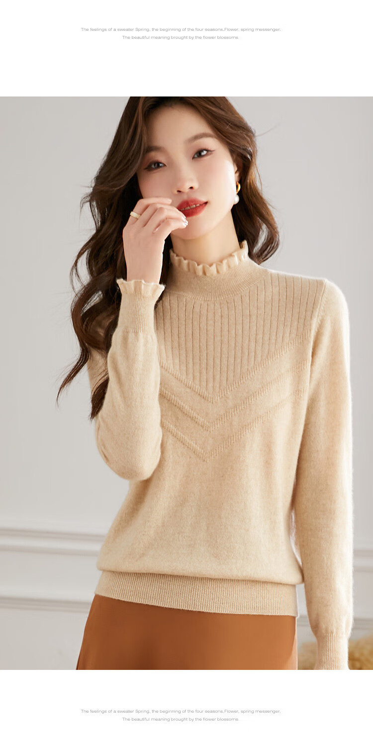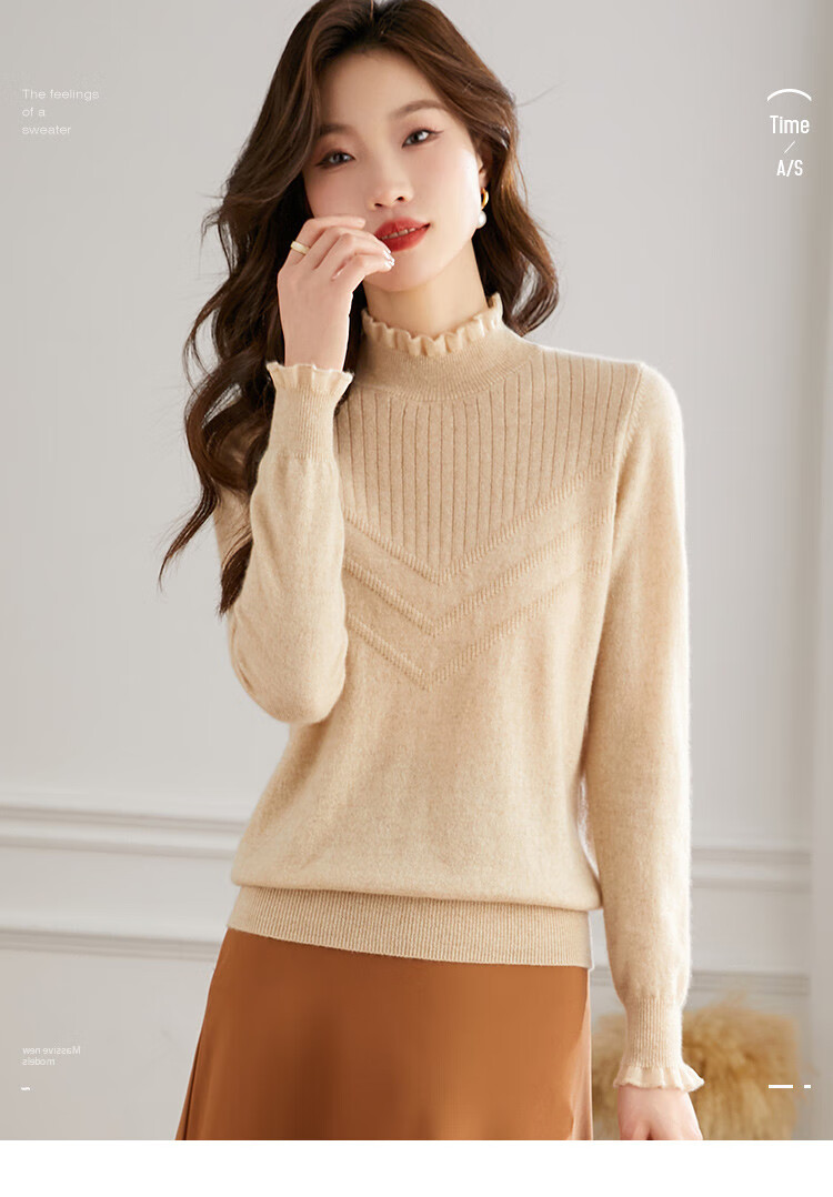 Shexi (Srcr) pure cashmere sweater for women 100 cashmere base layer autumn and winter short half turtleneck soft and comfortable knitted sweater