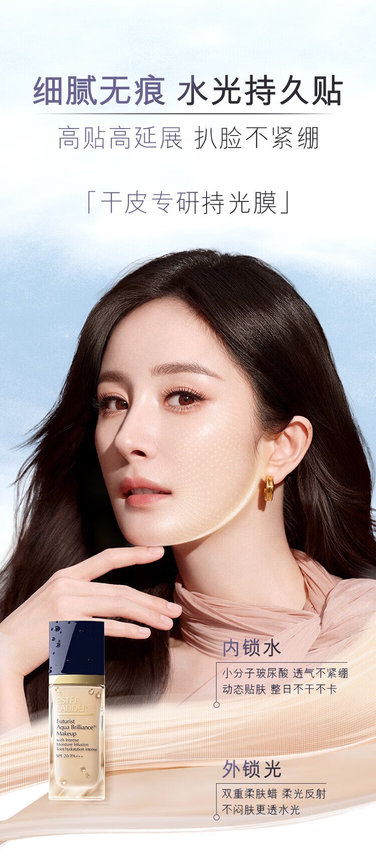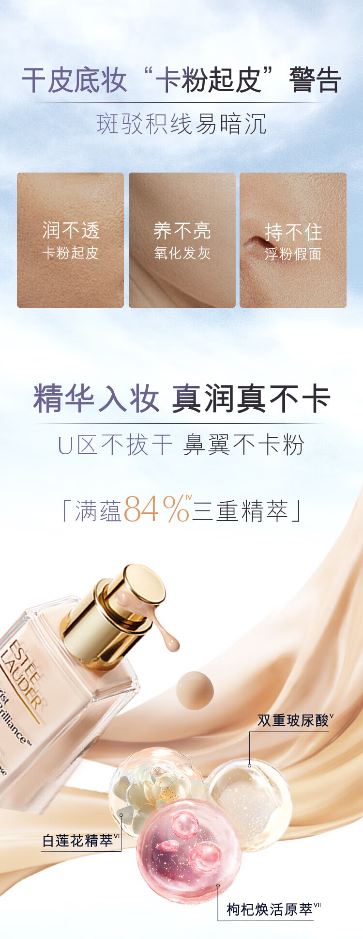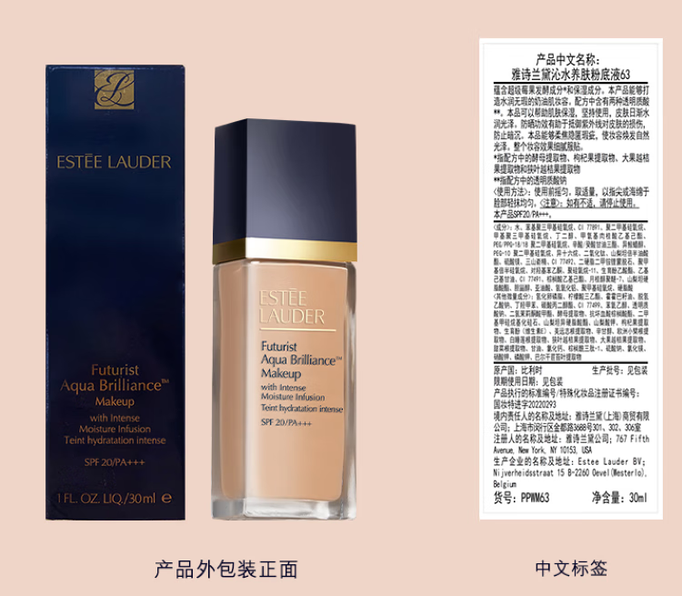 Estee Lauder Qin Water Foundation 63# Natural White (2C0) 30ml Long-lasting Concealer Cosmetics for Dry Skin