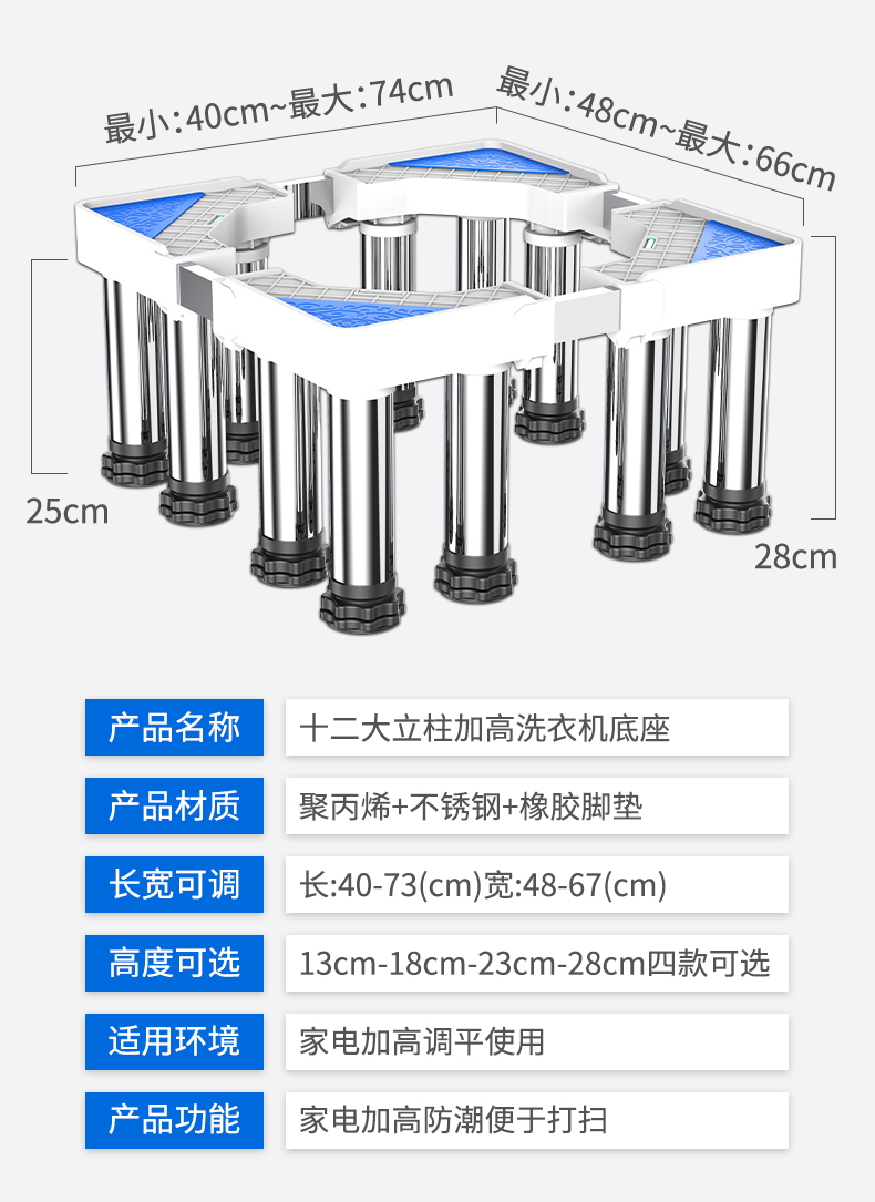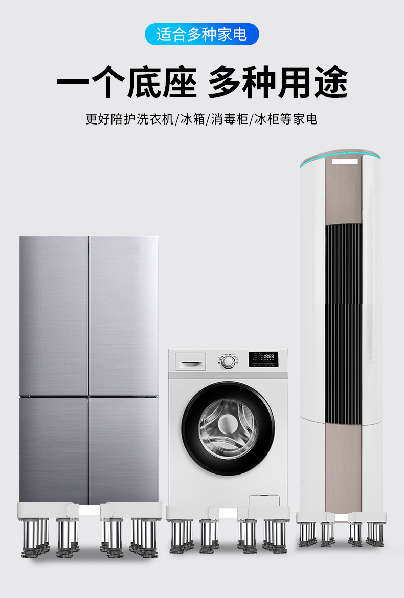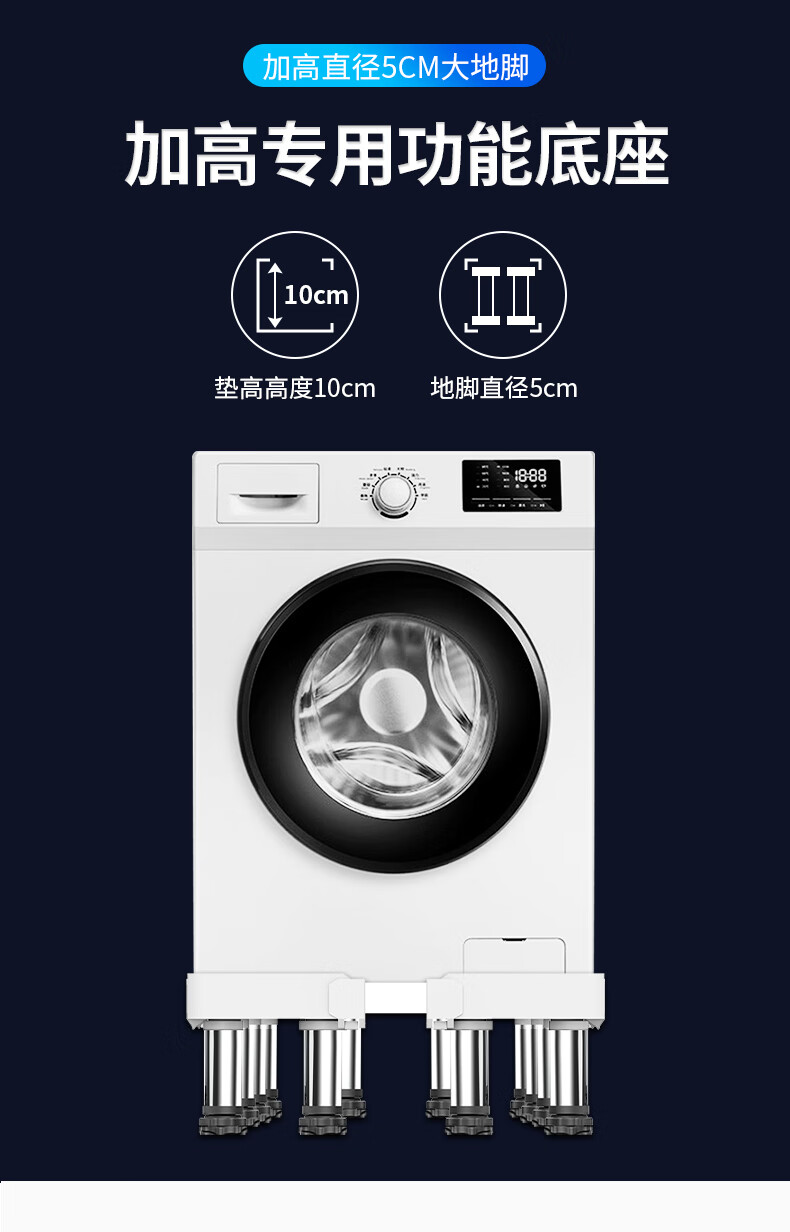 Beishi is suitable for Haiermei's Little Swan and other washing machine base mobile racks with a height of 20cm and 30cm. Refrigerator base drum pulsator fully automatic washing machine base bracket. Luxurious 8-foot 4-wheel mobile model. Height adjustable 34-37cm.