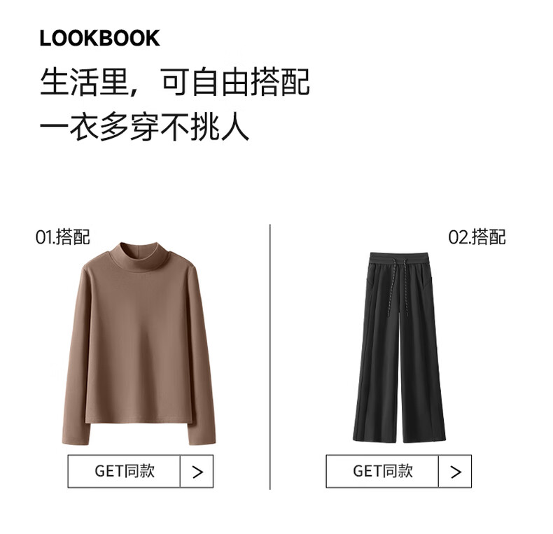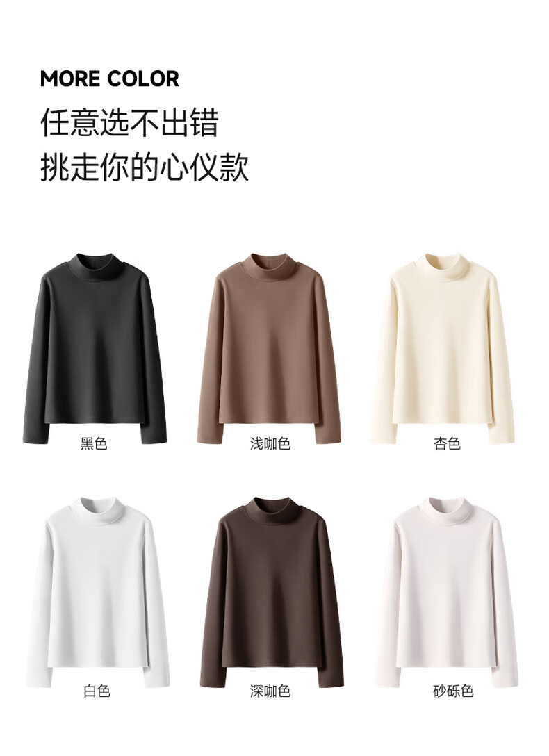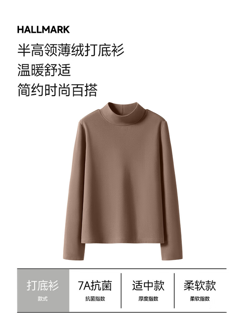 Baleno (Baleno) S&K double-sided brushed bottoming shirt for women 2025 winter warm and locking soft and waxy skin-friendly thin velvet long-sleeved inner top