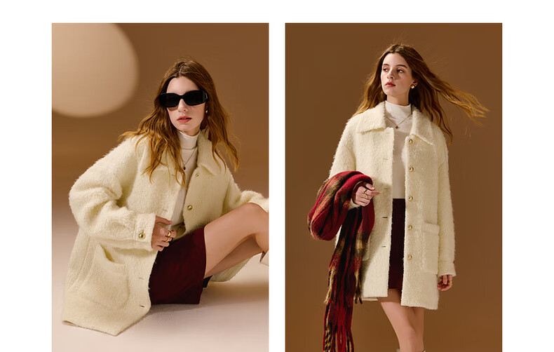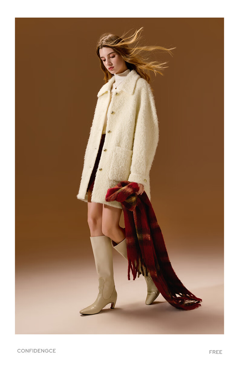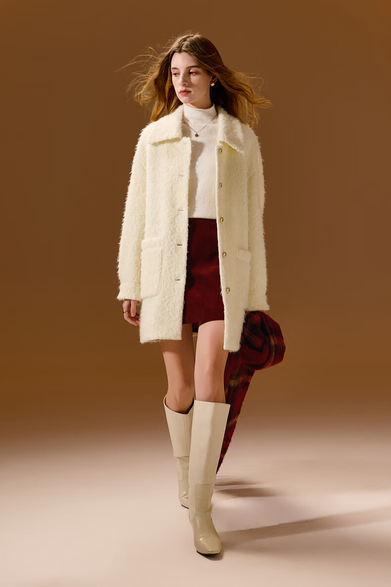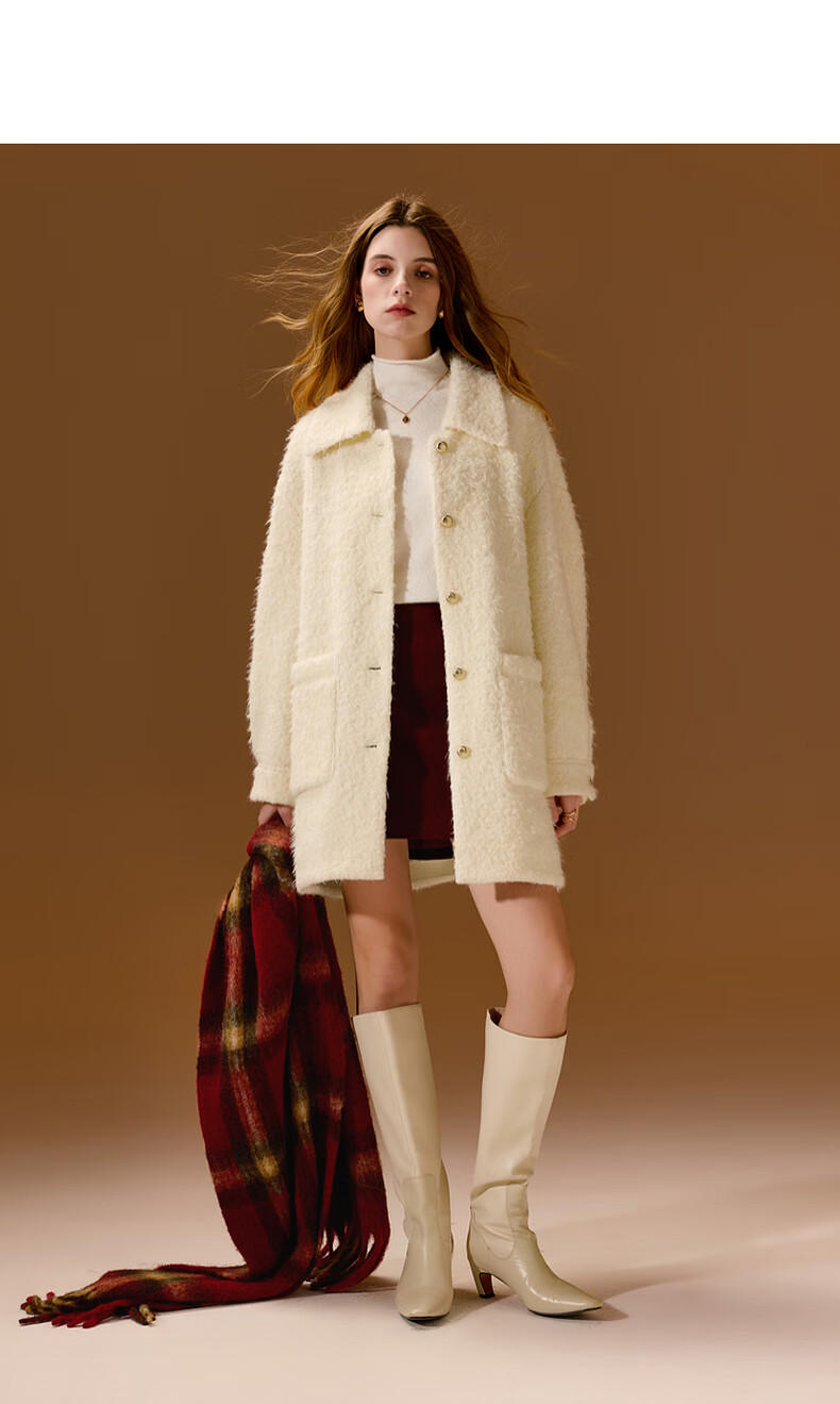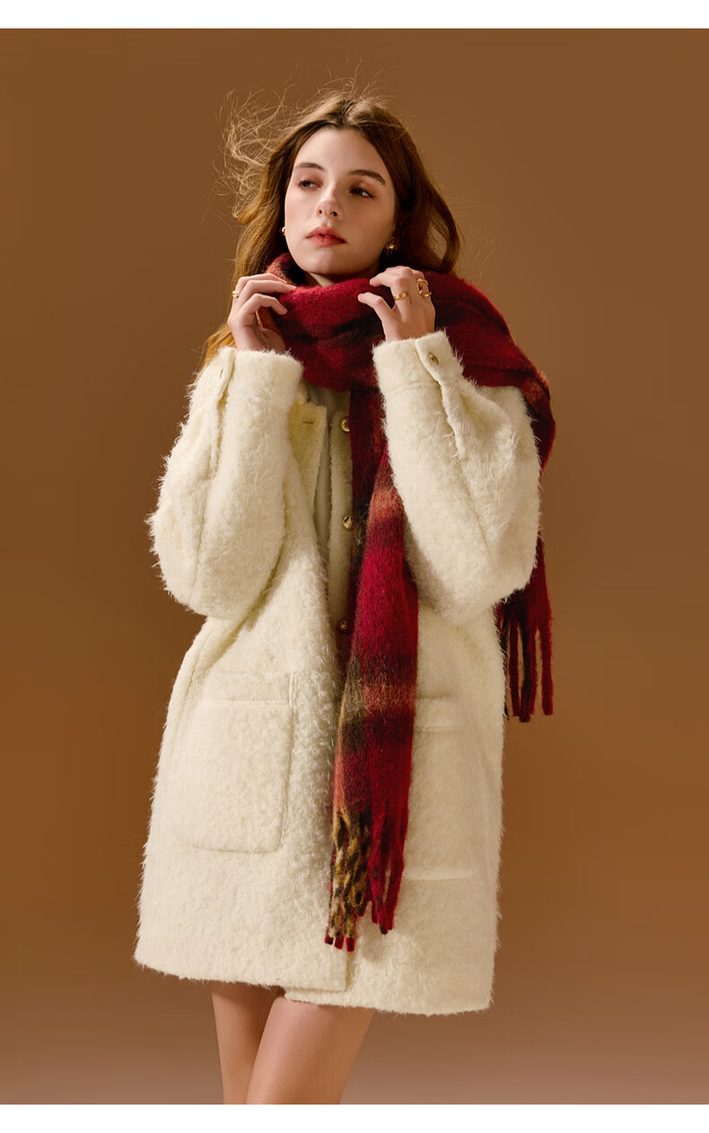 Sancai 2025 new winter woolen coat, quilted mid-length coat, loose coat for women