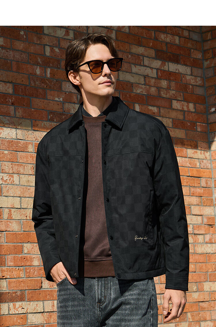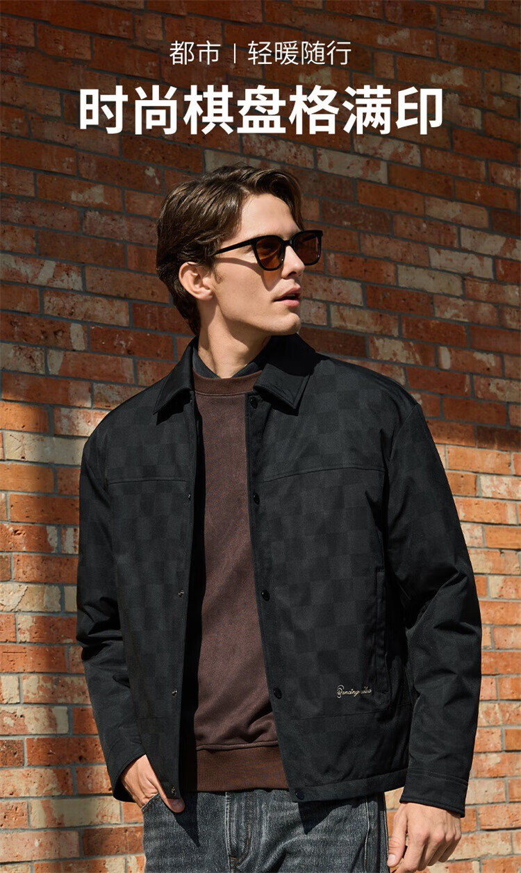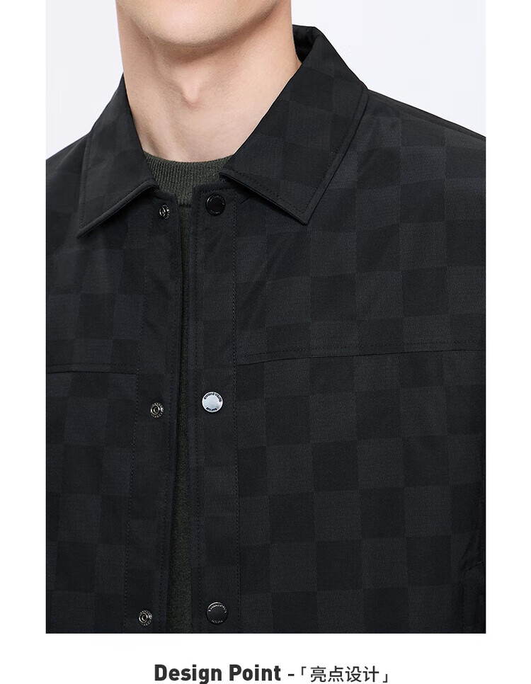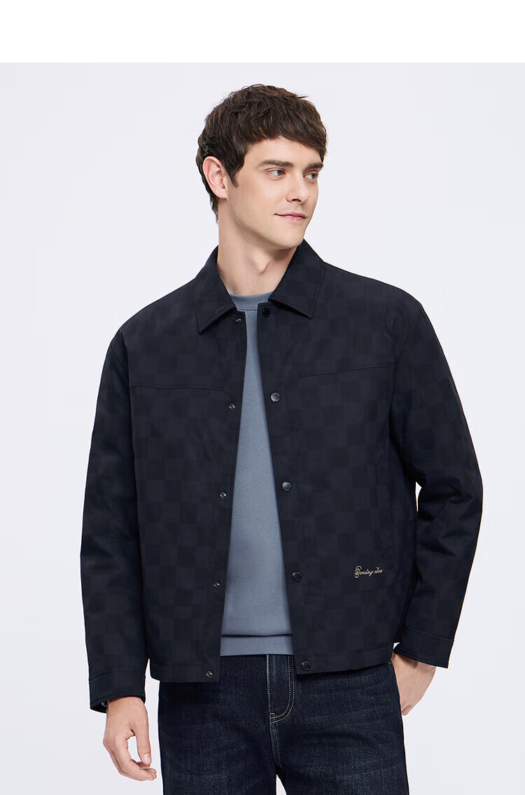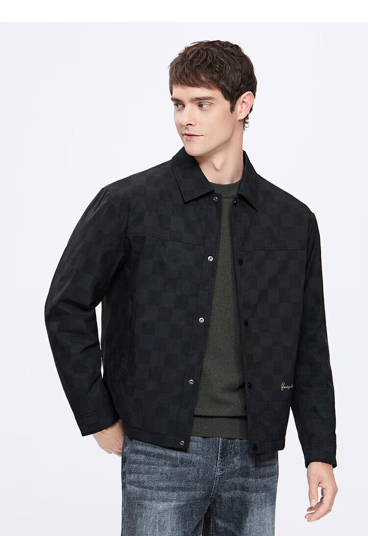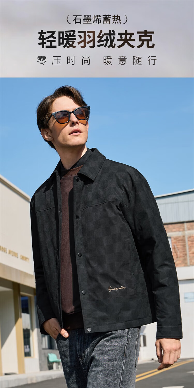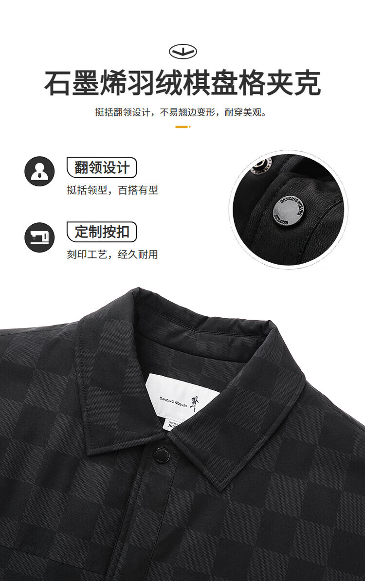 Dances with Wolves 90% Duck Down Checkerboard Jacquard Graphene Warm Men's Lapel Down Jacket 001 Black L