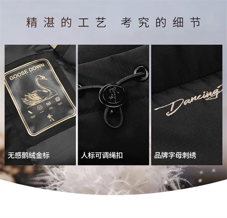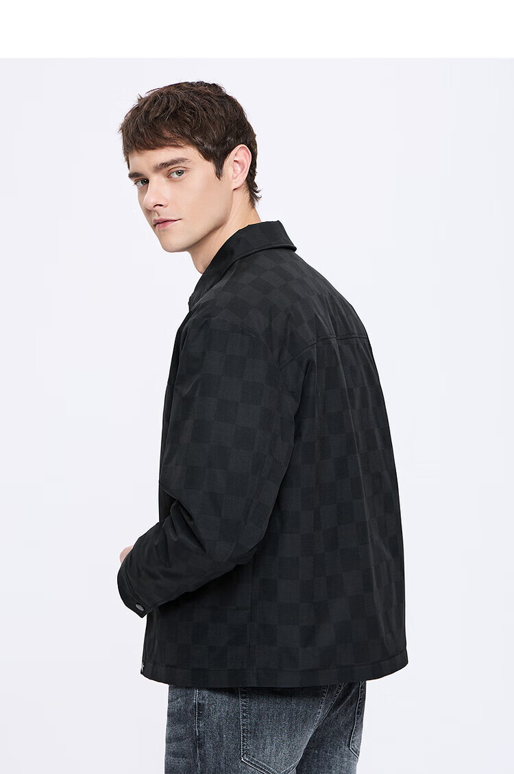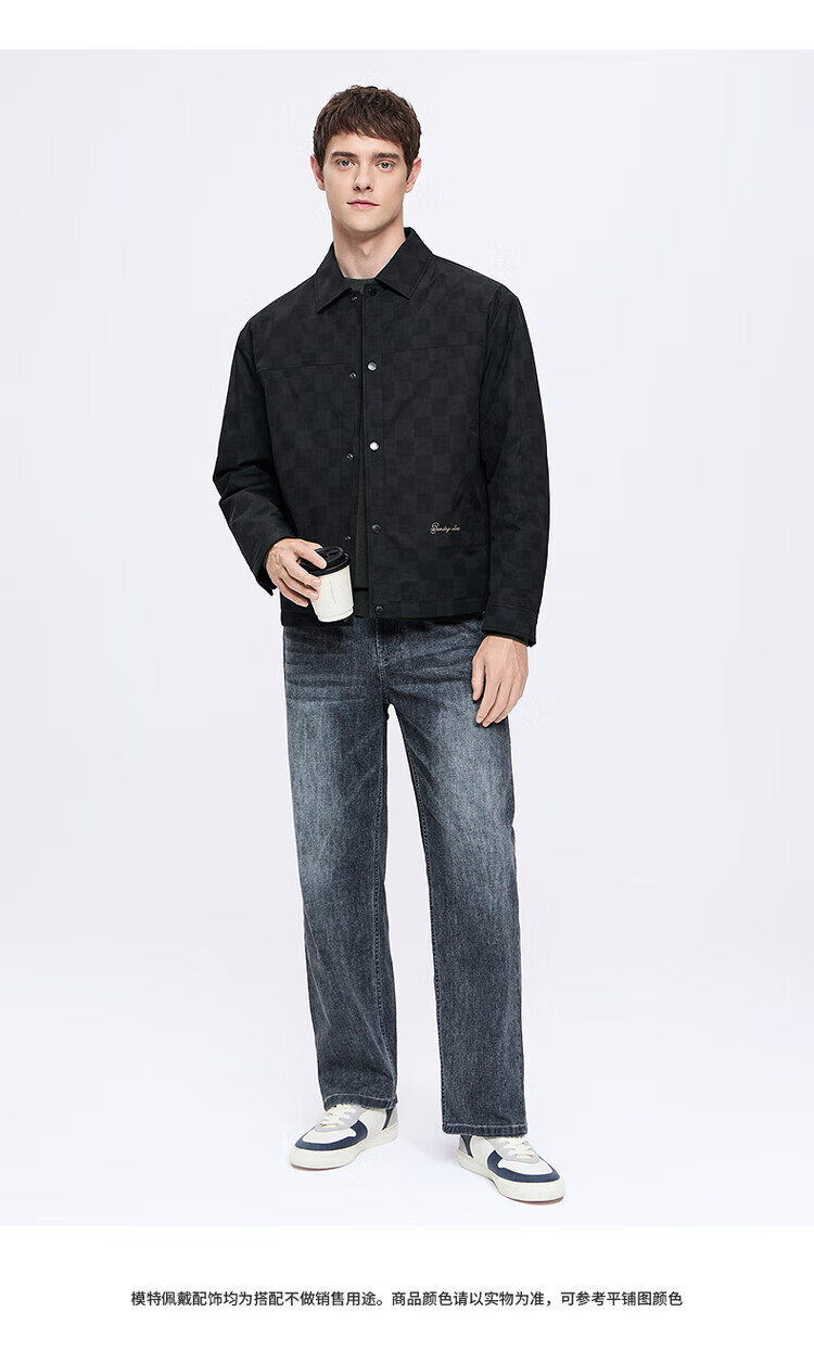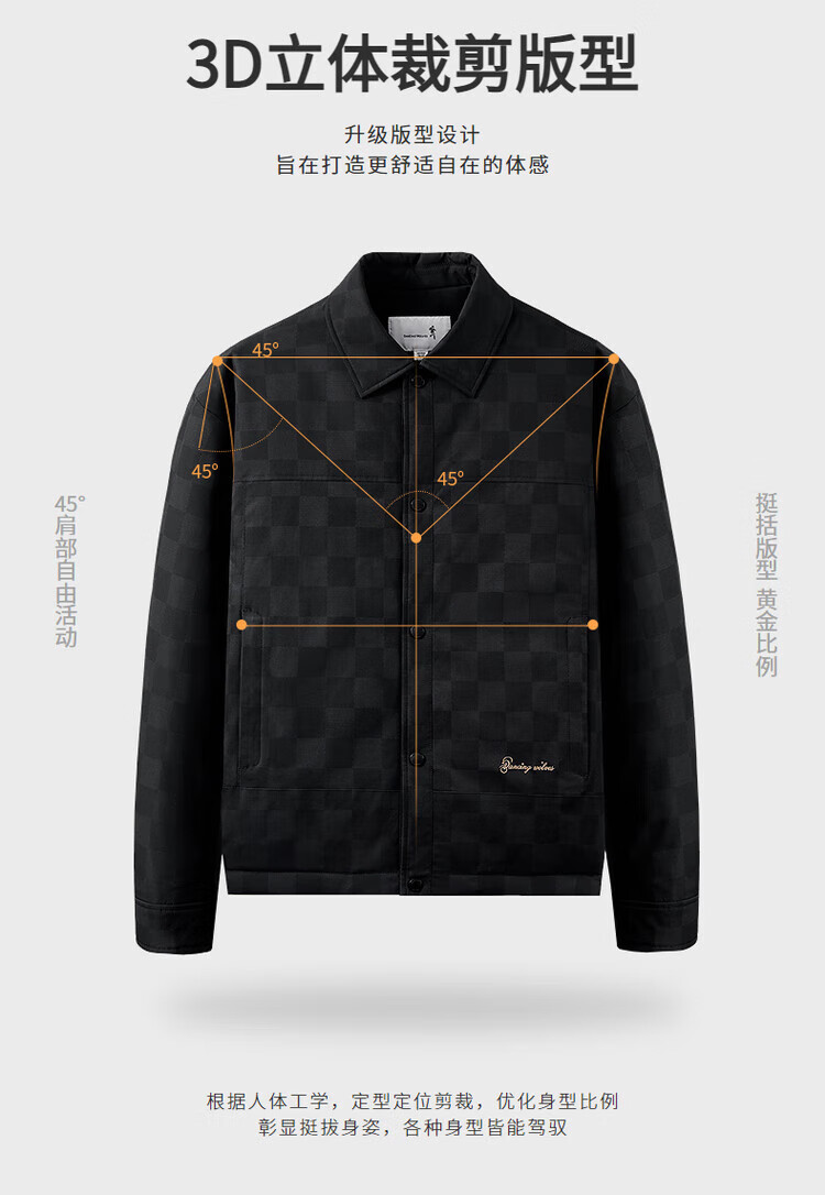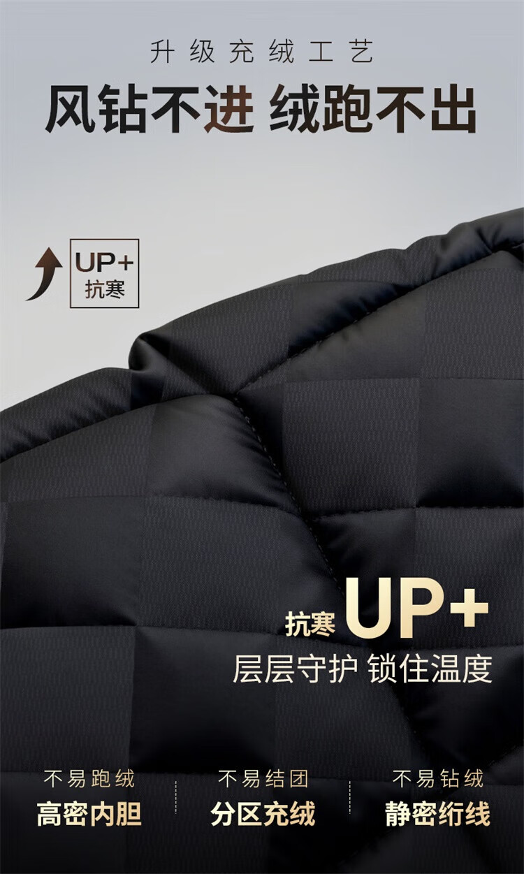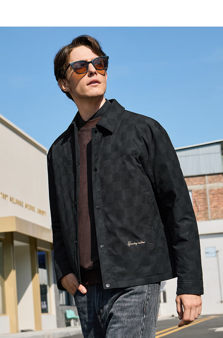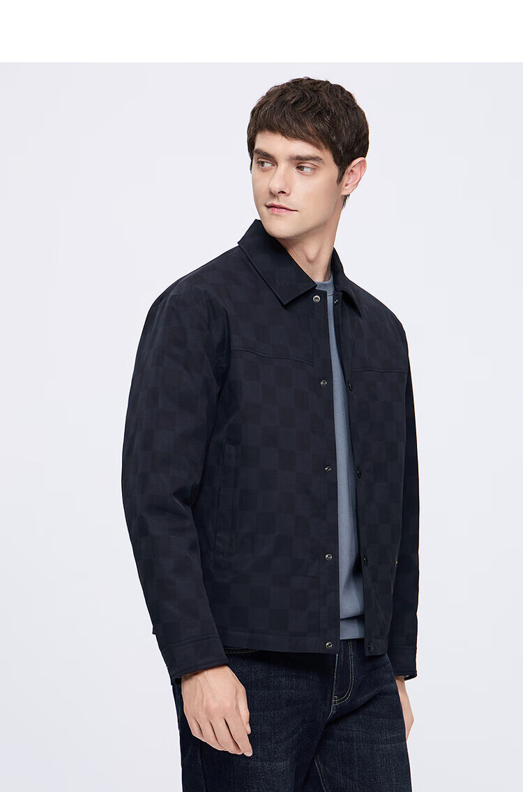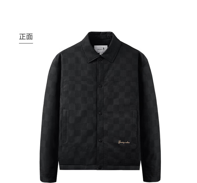Dances with Wolves 90% Duck Down Checkerboard Jacquard Graphene Warm Men's Lapel Down Jacket 001 Black L