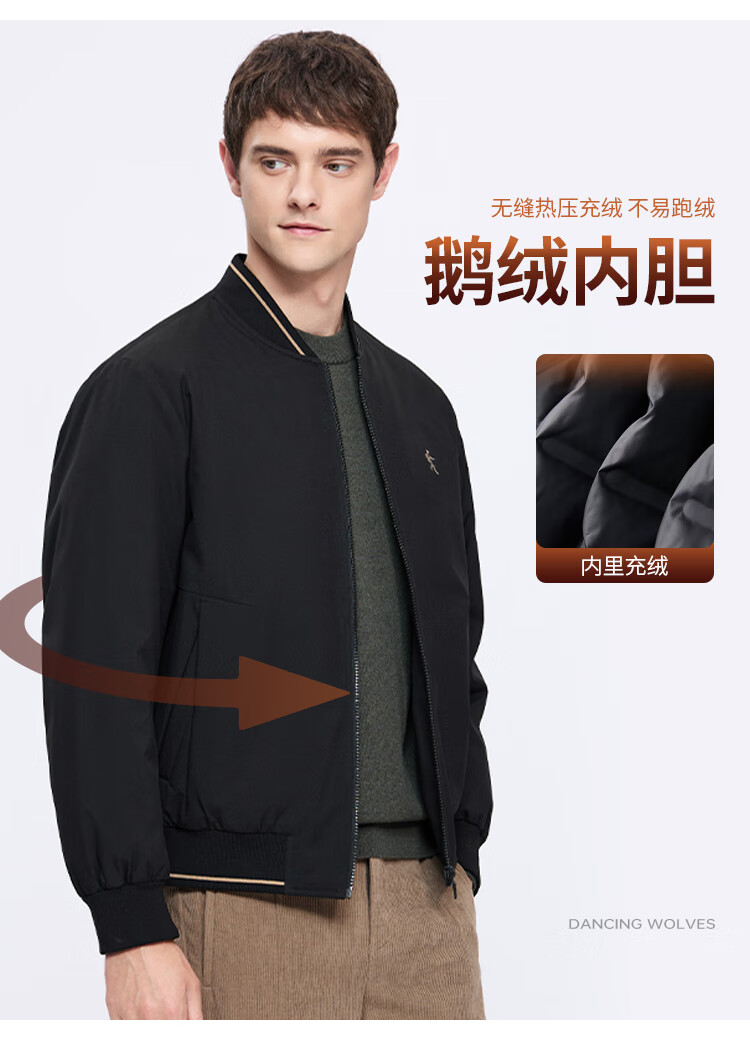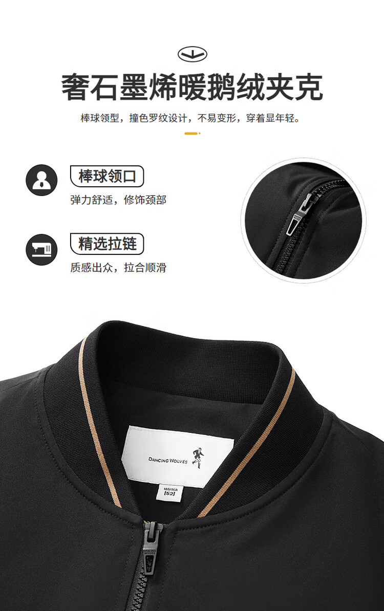 Dances with Wolves Gold Label Goose Down & Graphene Baseball Collar Warm Waterproof Down Jacket Men 001 Black L