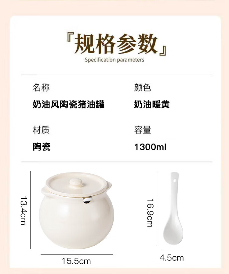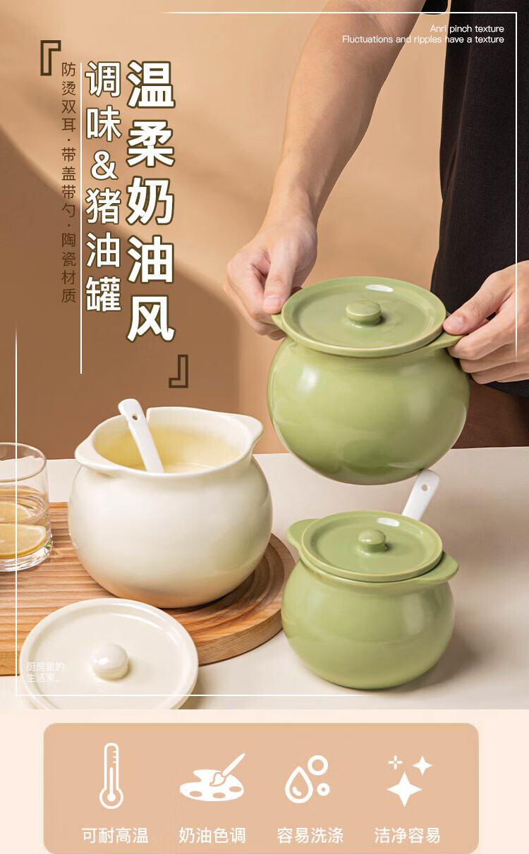 Youlaifu lard jar ceramic salt jar seasoning jar high temperature resistant oil spicy jar chili oil jar with lid large capacity 1300ml