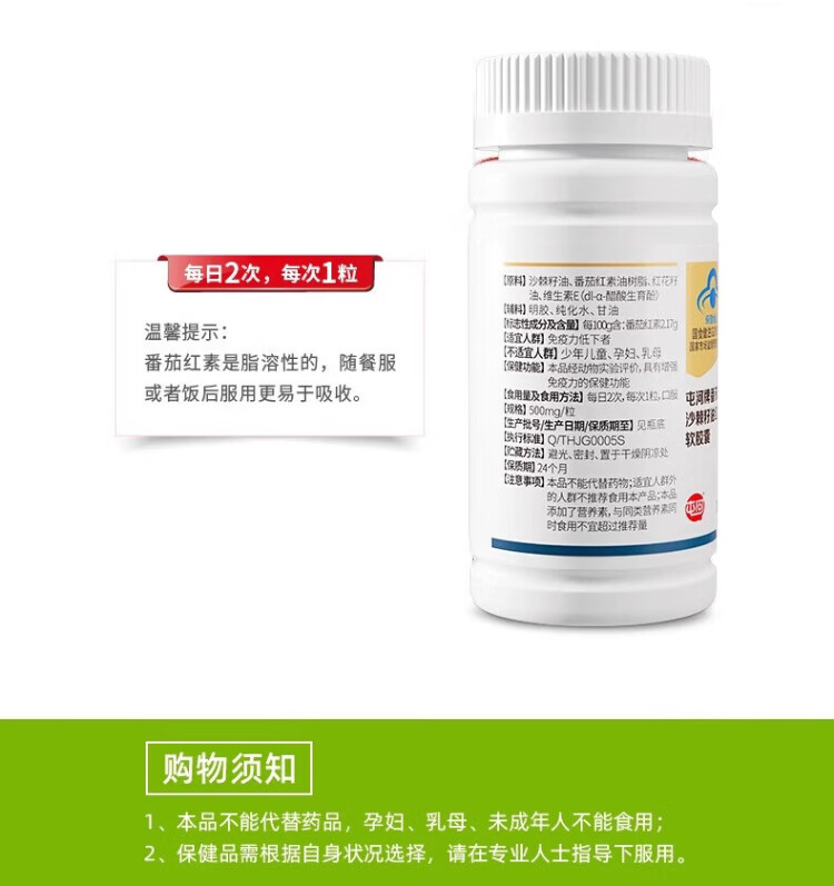 Tunhe COFCO Lycopene Sea Buckthorn Seed Oil Safflower Seed Oil Soft Capsules 60 + 30 Capsules Set