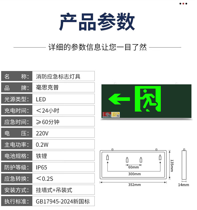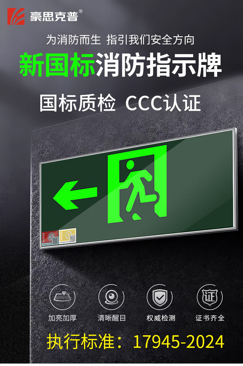 Hauskop fire exit indicator light New national standard safety exit indicator light emergency escape emergency evacuation light two-way